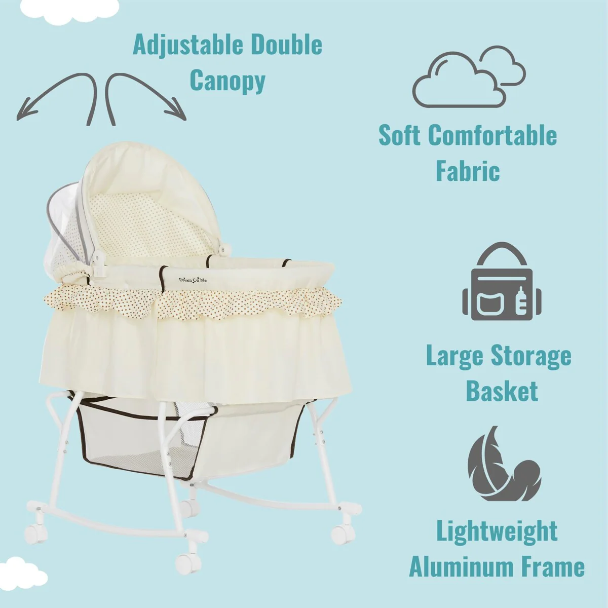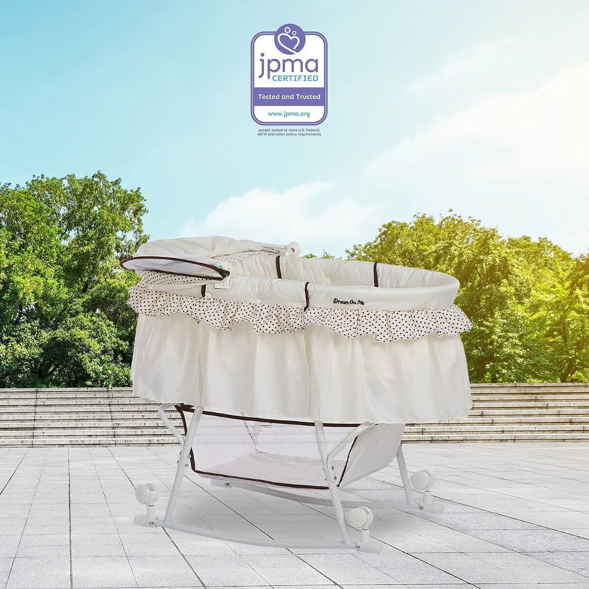 FUNCTIONAL FEATURES: The handy storage basket below the bassinet allows you to keep baby essentials at hand. The Lacy features a multipurpose full canopy that is part mesh part fabric and also helps keeps bugs and insects at bay