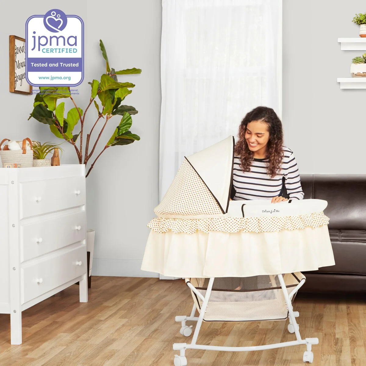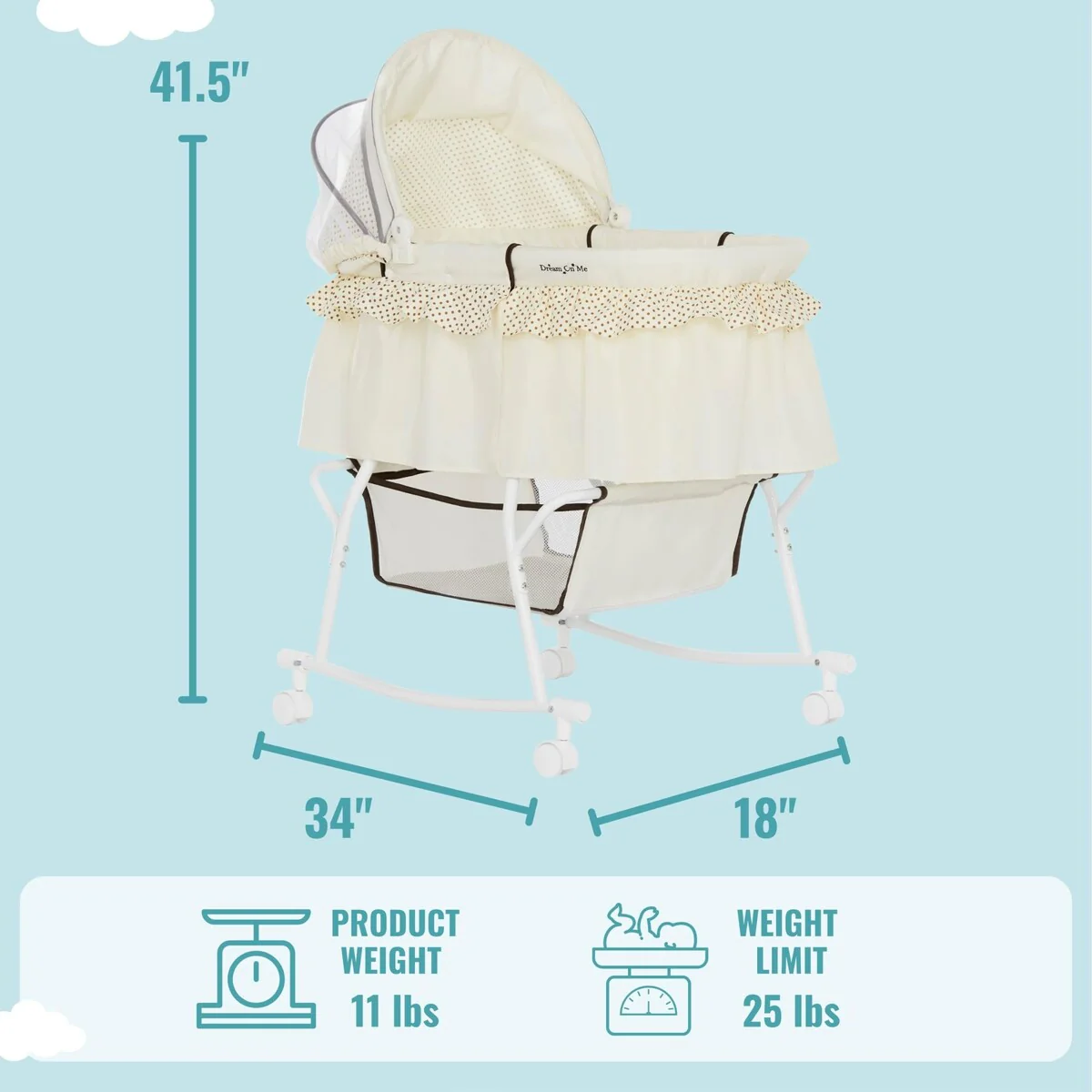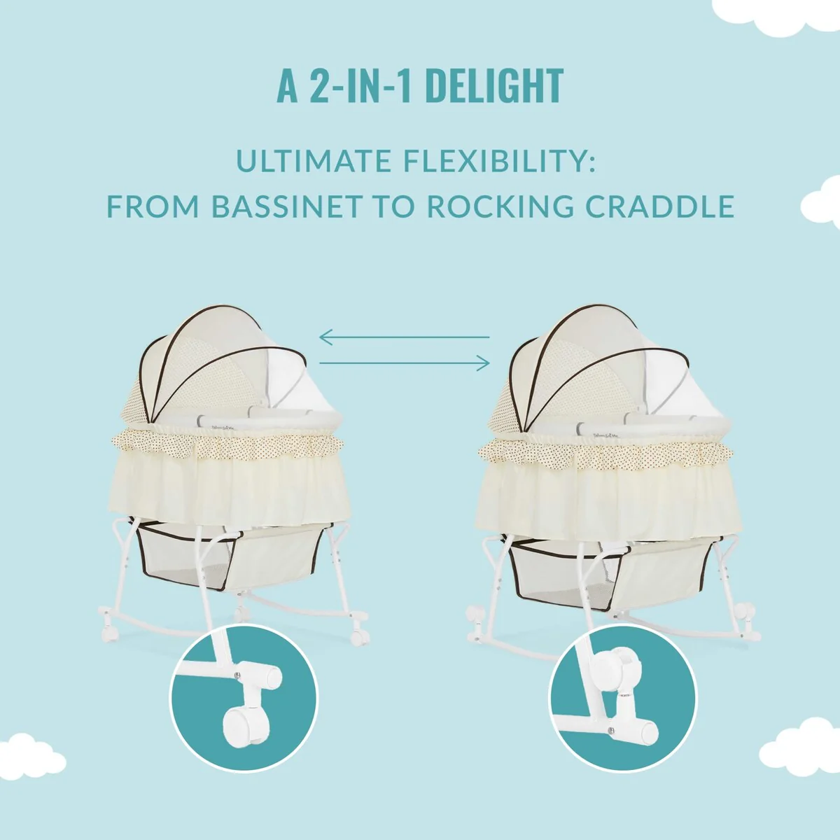 DUAL USE: Spacious and roomy, the Lacy is the ideal bassinet for your new born. And when LO needs soothing, rotate its wheels upwards to convert the Lacy into a rocking cradle. Use from birth till 25 lbs/until baby can push-up/roll over unassisted
