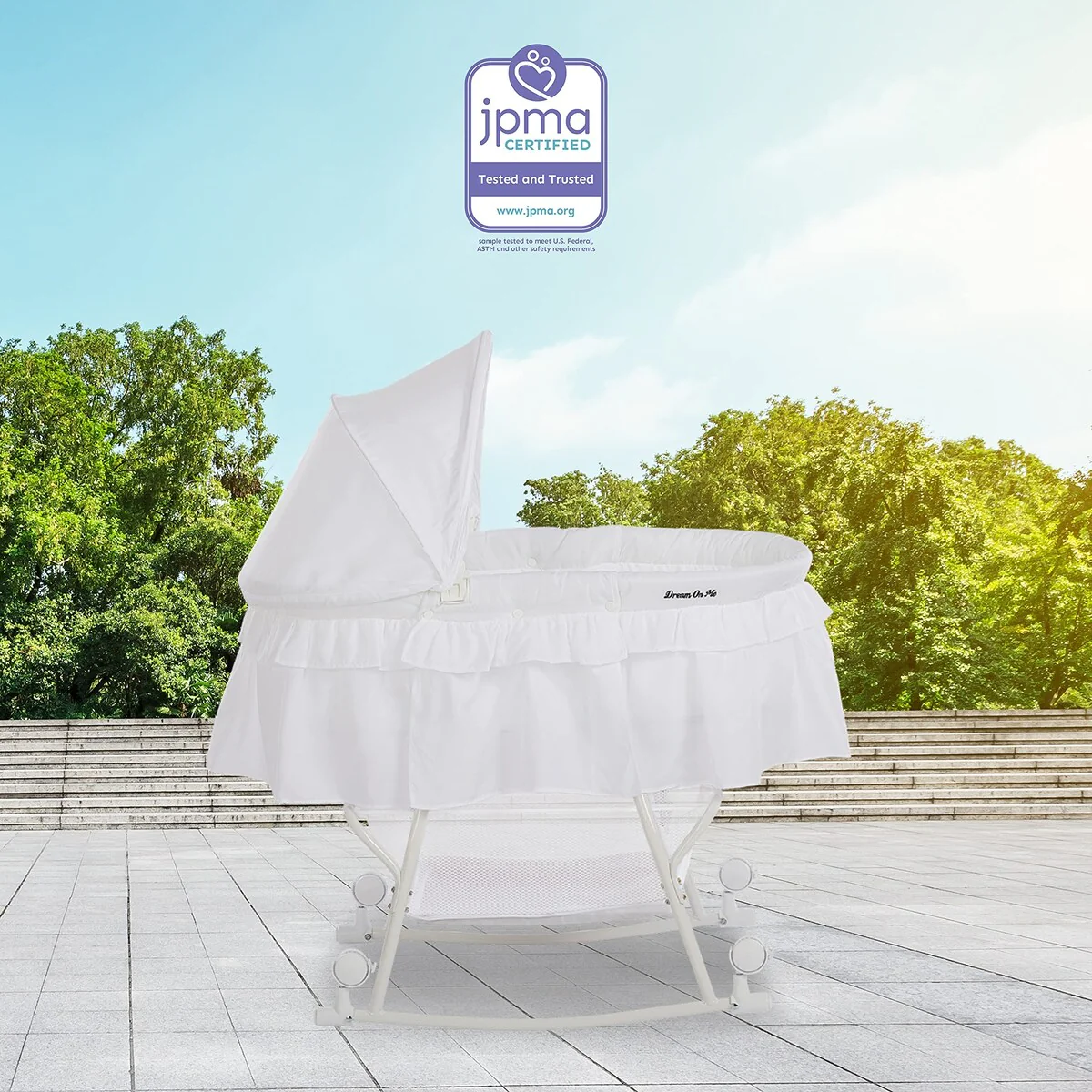 SAFETY MATTERS: The Lacy Bassinet is JPMA certified to meet/exceed ASTM standards. Product specs are: 34Lx18Wx41.5H inches; it weighs 11 lbs. It includes the regulatory 1' thick inch mattress pad; dimensions are: 30Lx15Wx1H inches See more product details