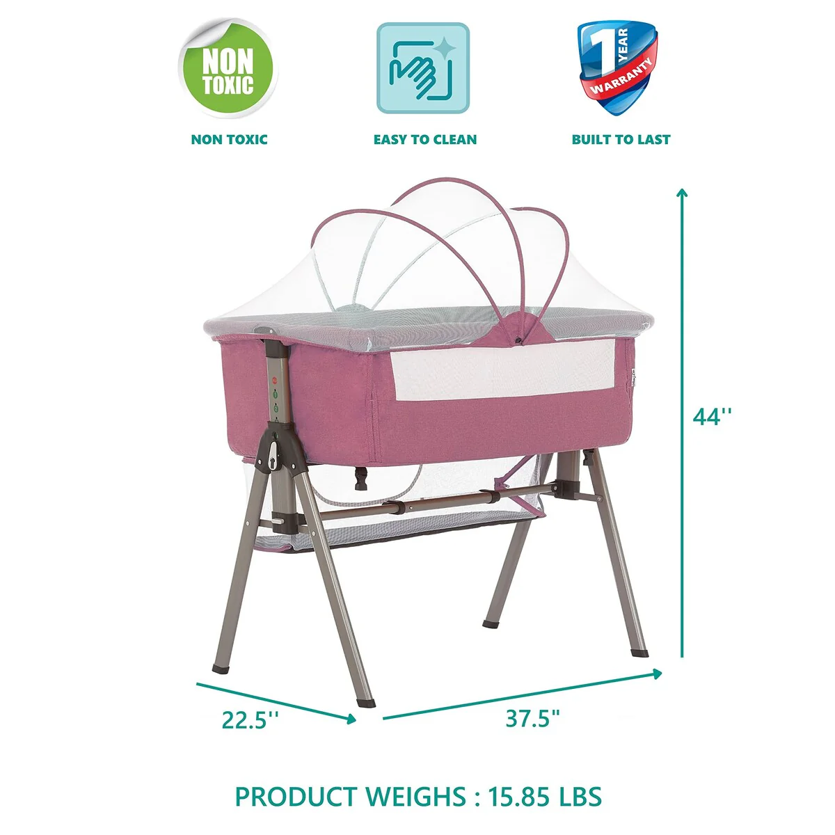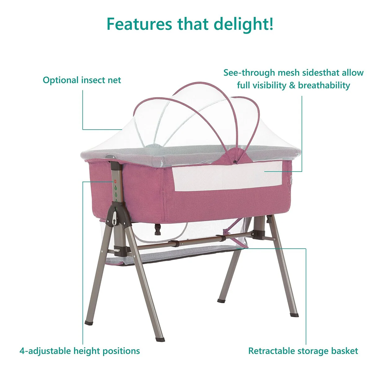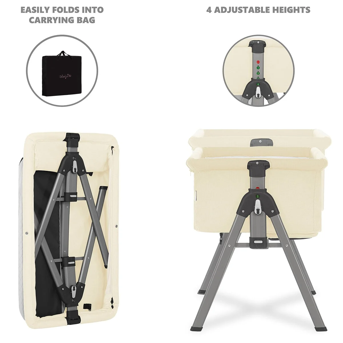 ADJUSTABLE HEIGHT - The Lotus comes with 4 adjustable height positions that allow you to move it up or down in line with the height of your bed. Plus, it makes picking up and laying your baby down for a nap easy on your back