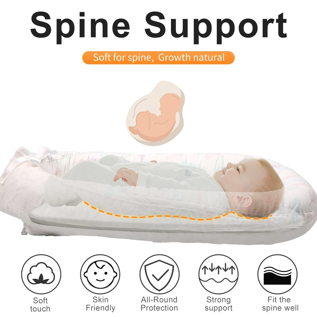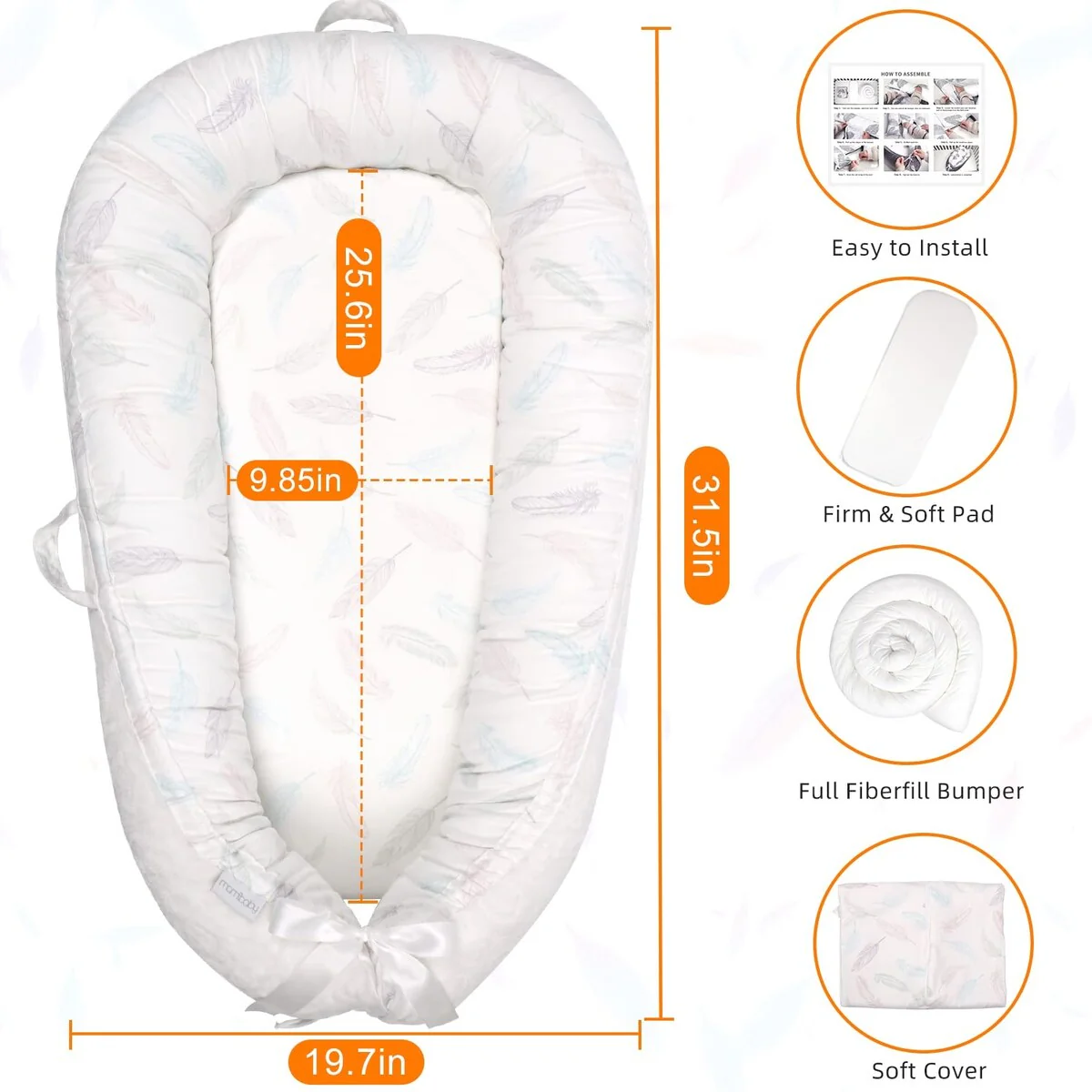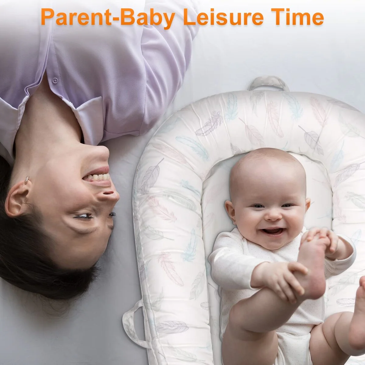 🍃【Bionic and Breathable Design】Mamibaby baby lounger Adopted the American bionic concept to mimic the mother's warm womb giving the baby a full sense of security. The all-around edge is filled with pearl fabric stuffing and it is sturdy enough to provide safety for infants.