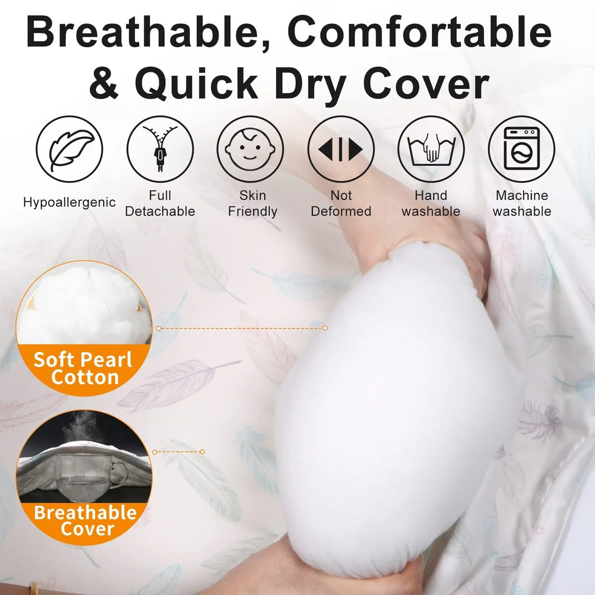🍂【Double-Sided and Adjustable】The cushion cover has two patterns on both sides: a lovely feather print in the front and a solid white at the back. Easy swithable to suit your needs, giving you and your baby a good mood every day. Being adjustable - simply tighten or loosen the cord at the end of the edges to adjust space. Edges could be fully opened.