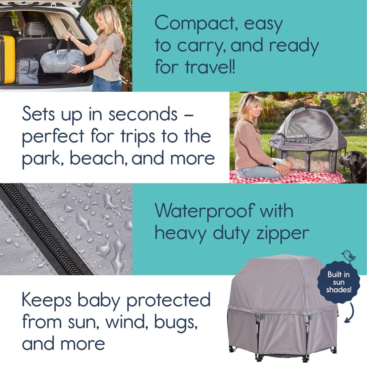 PROTECTION FROM SUN, WIND, BUGS, & PETS | A MUST for beach-goers. Perfect for both indoor and outdoor use, our on-the-go baby dome is equipped with an UPF50 sun canopy and built-in sun shades to create a safe, cool, and pest-free environment.