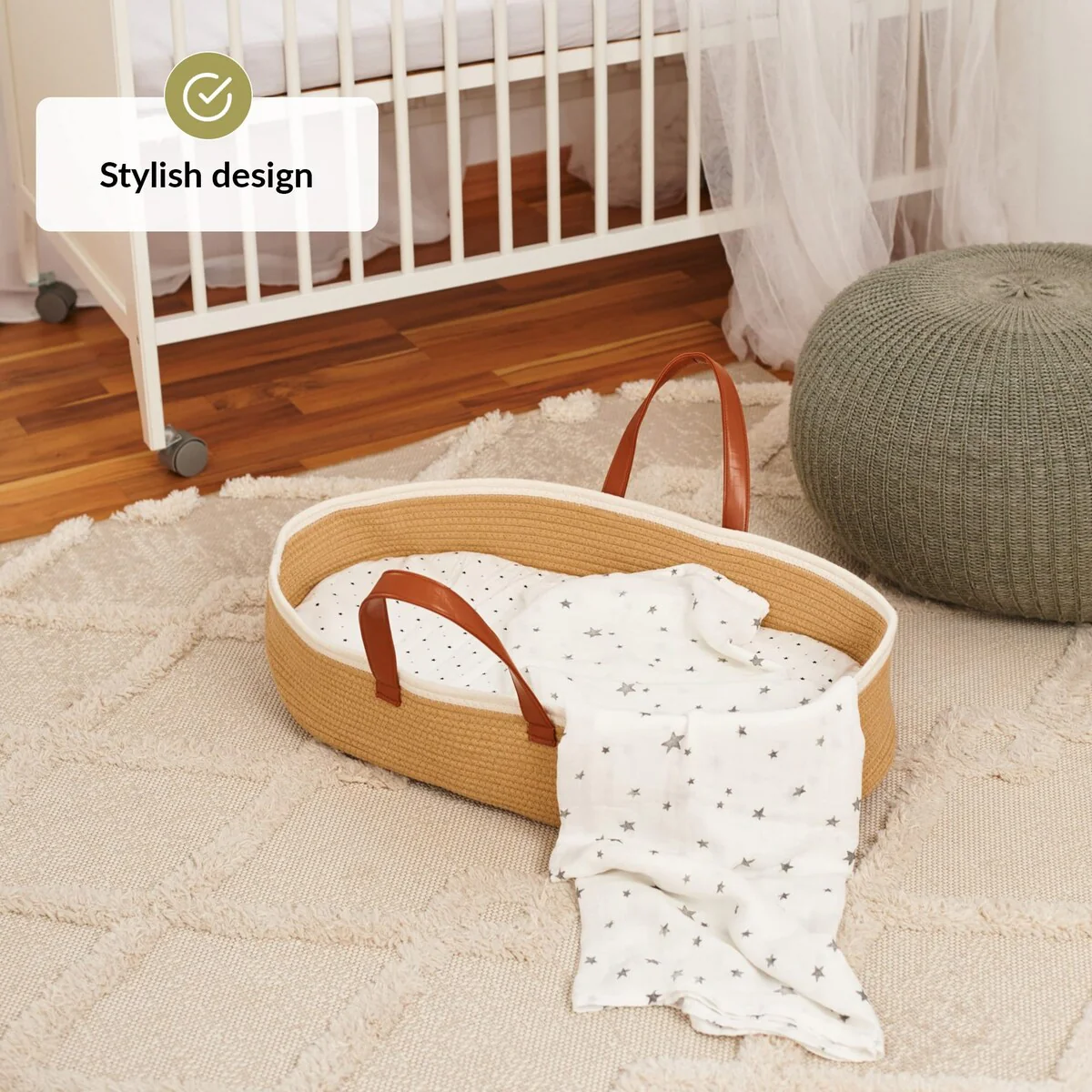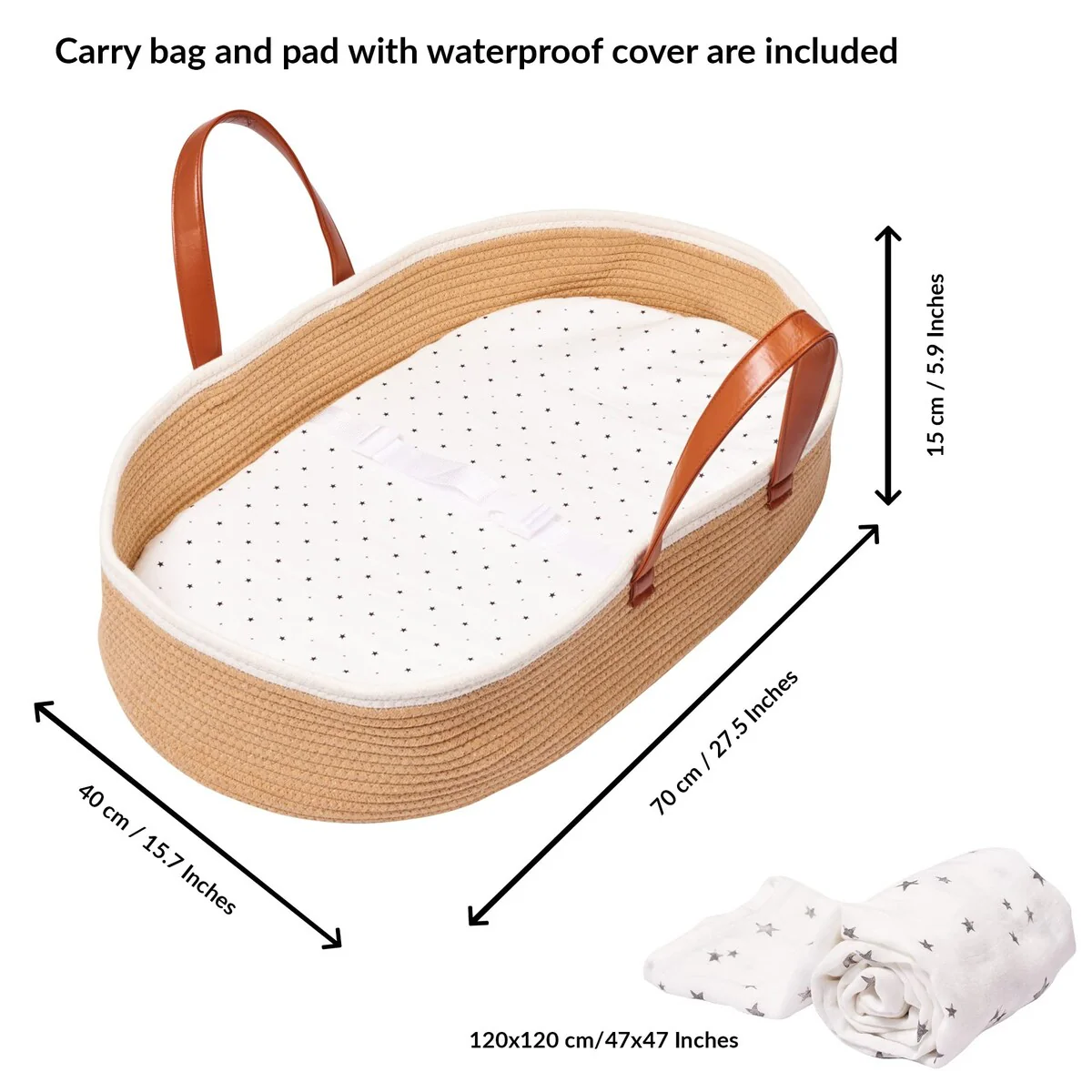 【A STYLISH SOLUTION】 Enjoy this stylish and comfortable moses basket for changing nappies. This woven changing basket is a great alternative to the traditional changing pads. Even better, it will seamlessly blend with any nursery and home interior!