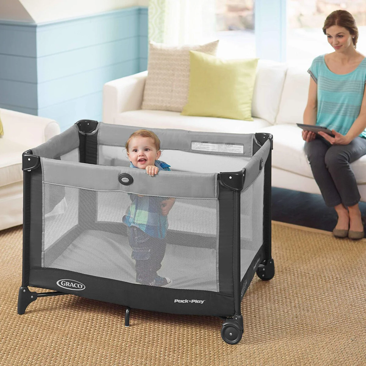 Folding feet and wheels allow for a 20% more compact fold than the average playard, making it easy to and to carry.