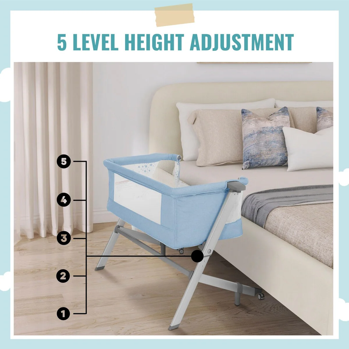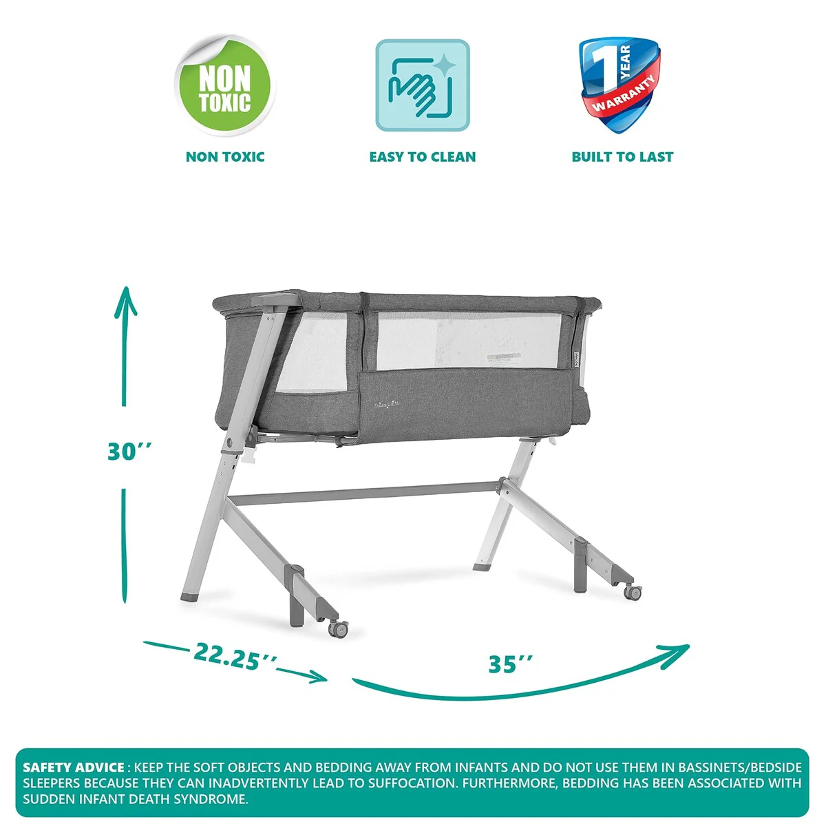 DUAL USE: Unzip and roll down the mesh sides to convert the bassinet into a bedside sleeper. Lean in for breastfeeding or comforting your child! Five adjustable heights (Adjusts from 26.5 > 27.5 > 28.5 > 29.5 > 30.5') Able to be used with a queen mattress leaving no gaps and is also easy on your back