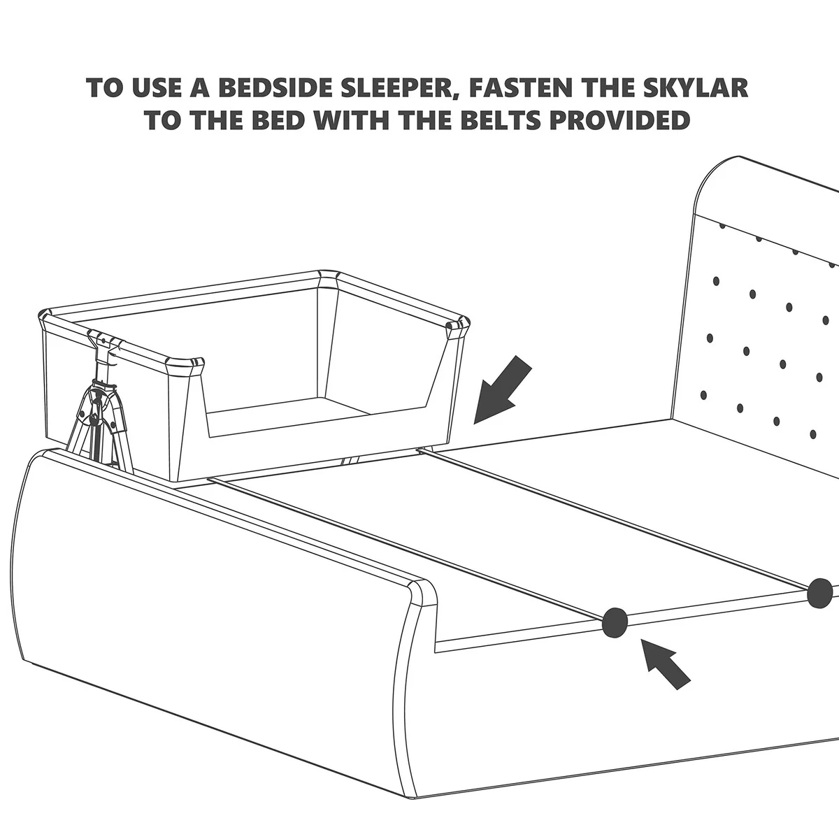 KEEP BABY CLOSE BY: As a bedside sleeper, the Skylar's legs fold inward and outwards getting it close to the mattress. Wheels on the front legs allow easy adjustability. The mesh sides allow easy viewing of your baby and ensure full breathability