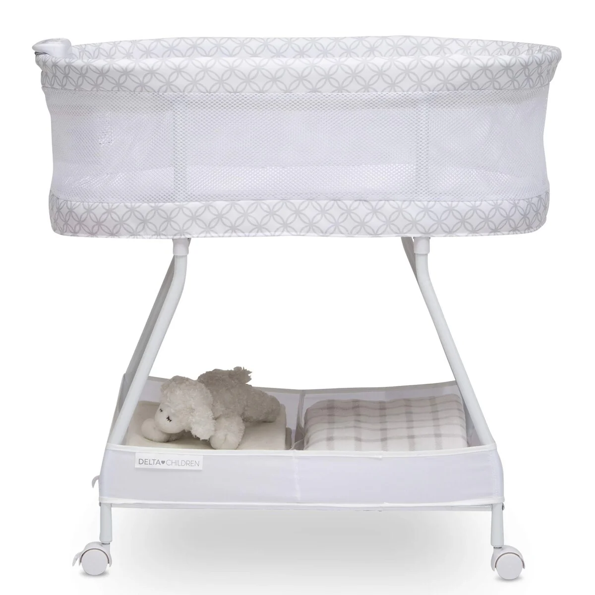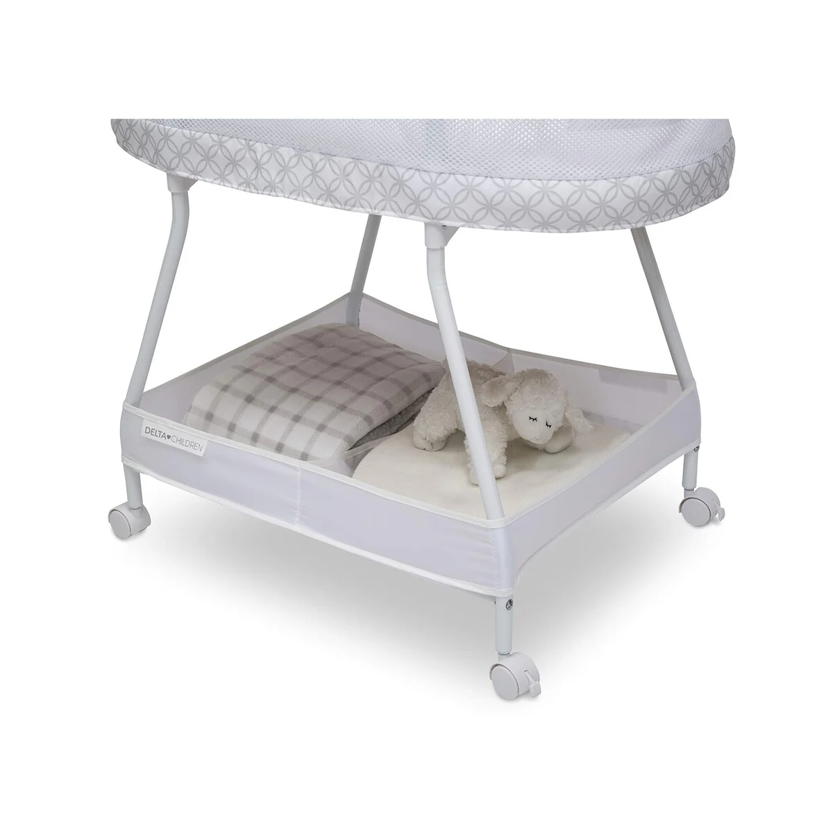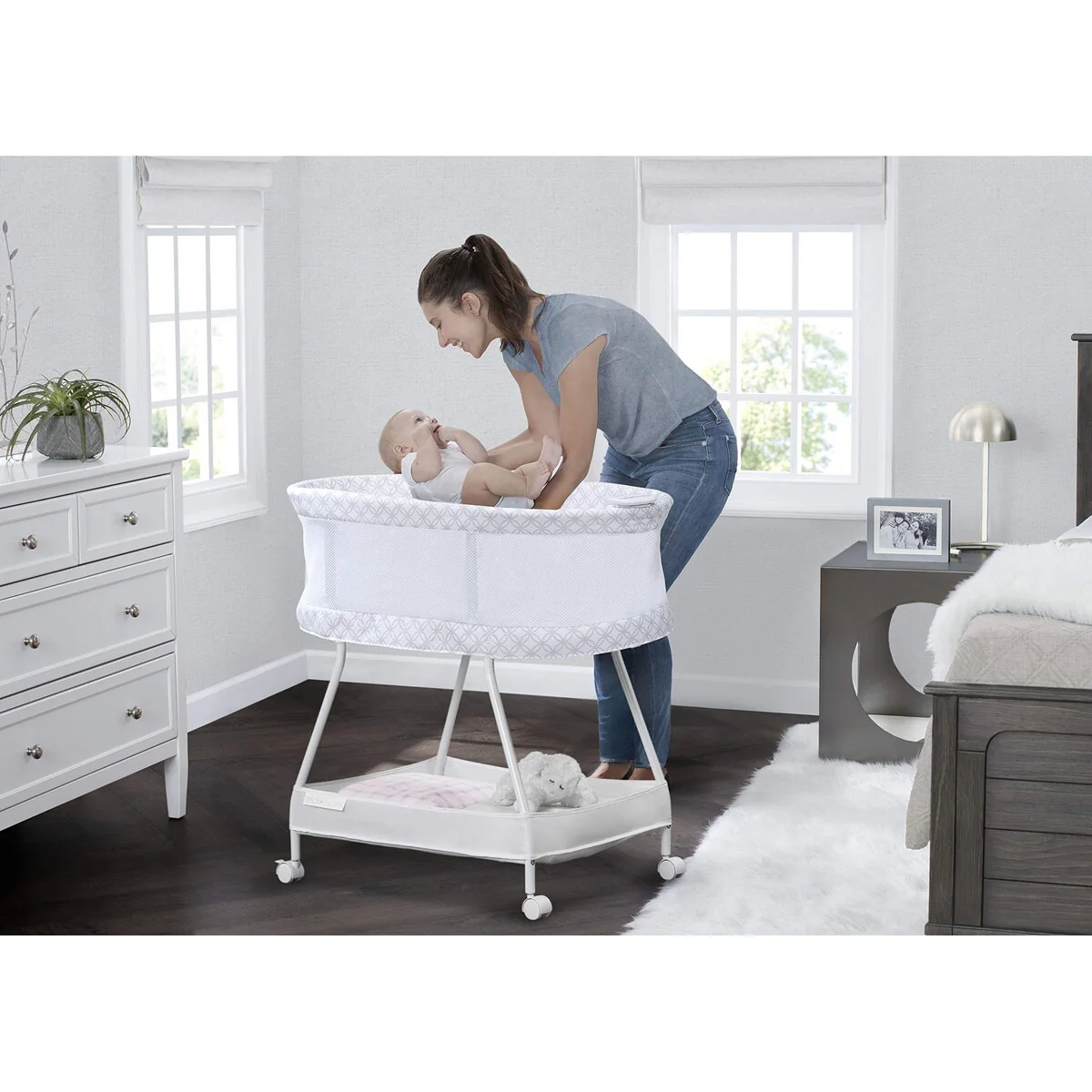 AIRFLOW MESH: Breathable mesh on sides promote airflow and provide visibility | Bassinet includes 1-inch waterproof mattress pad and fitted sheet; sheet is machine washable