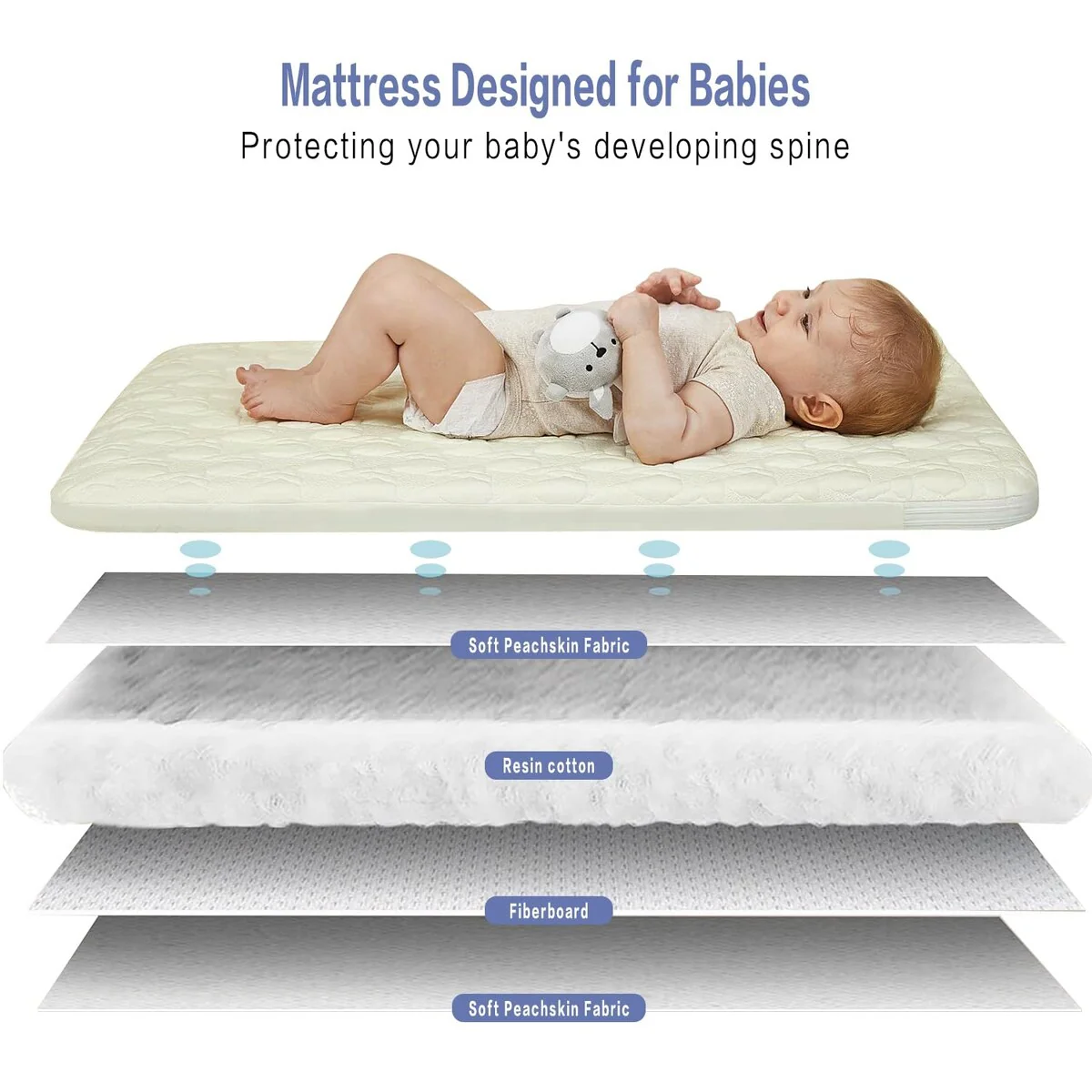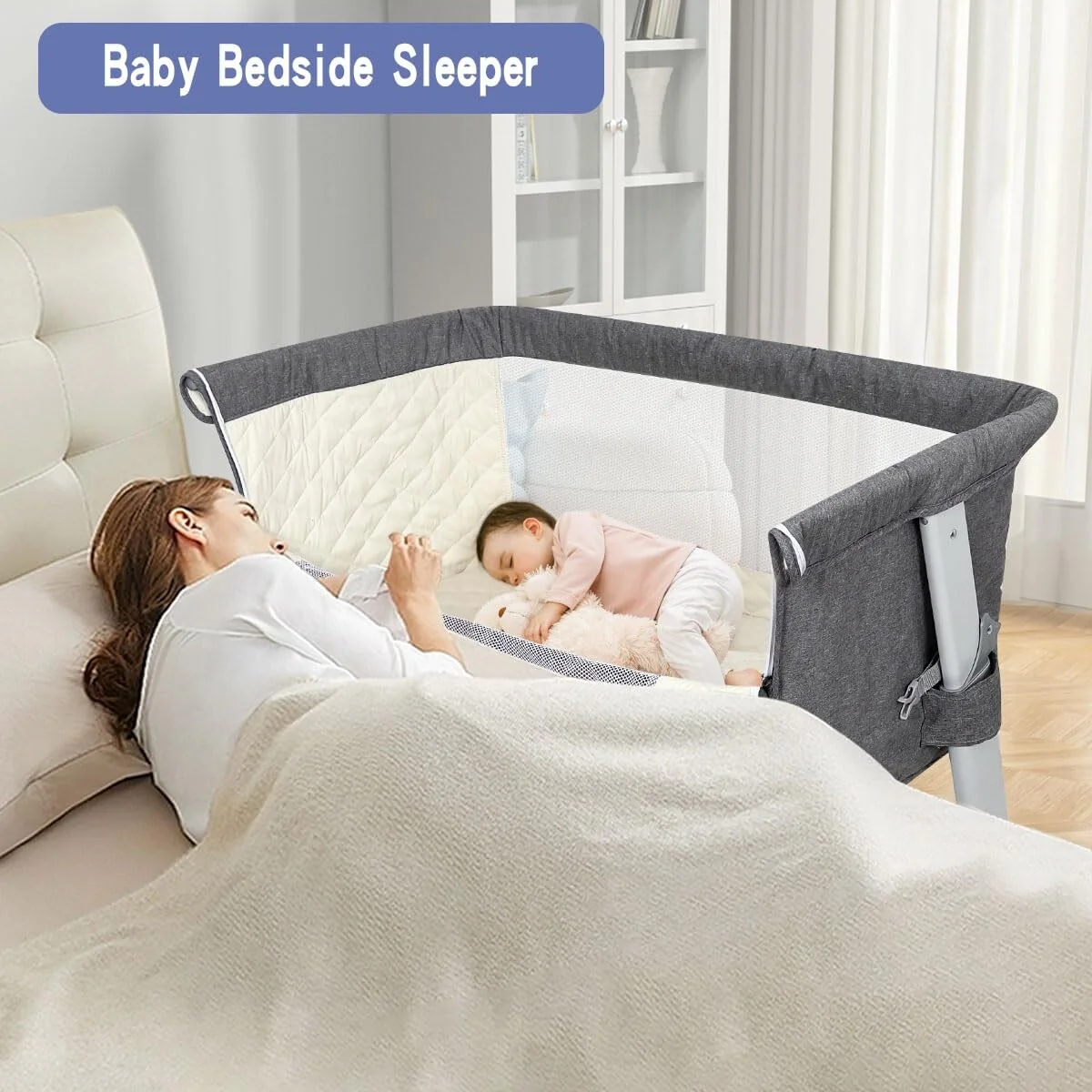 🍼 Large Bedside Crib: Bedside bassinet for baby with upgraded two mesh sides design for optimal airflow, skin-friendly fabric and soft mattress leaving no gaps ensuring your baby sleeps soundly. Besides, the mattress cover is easily removable and machine washable, providing your little one a clean and comfortable space to rest.
