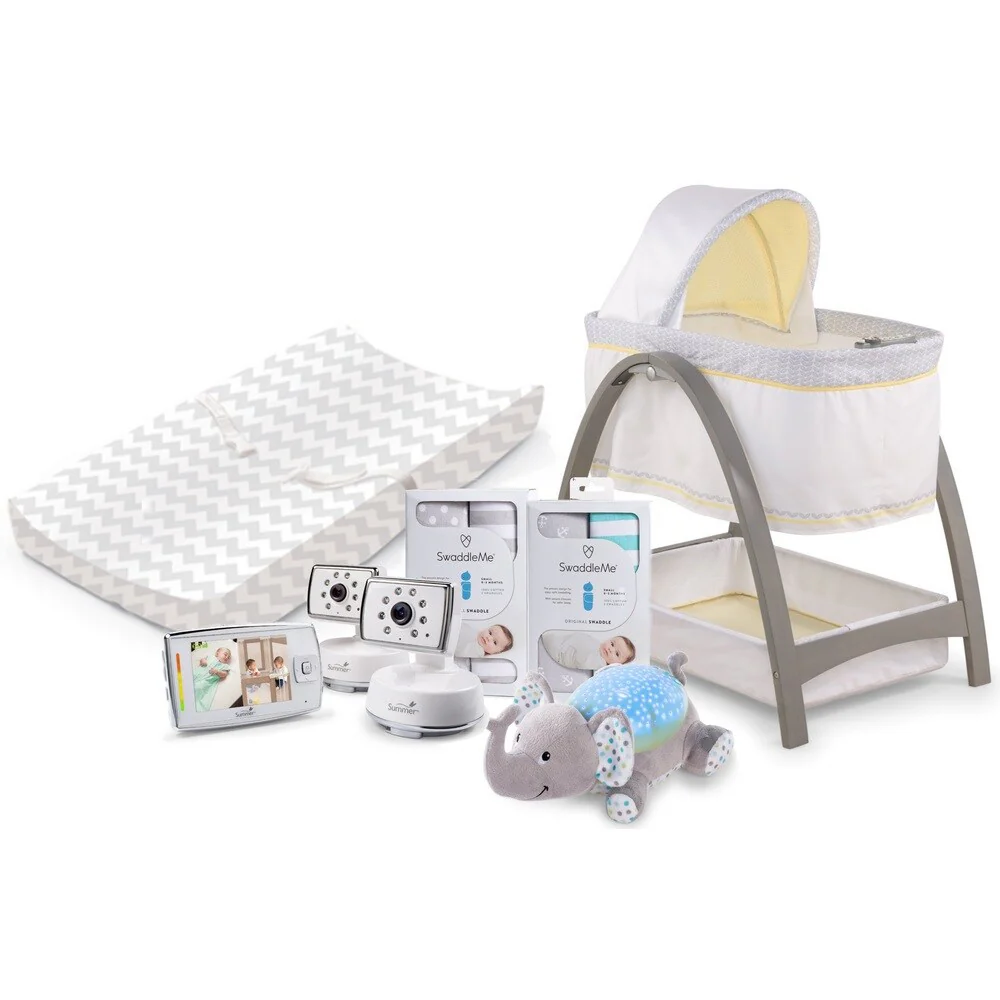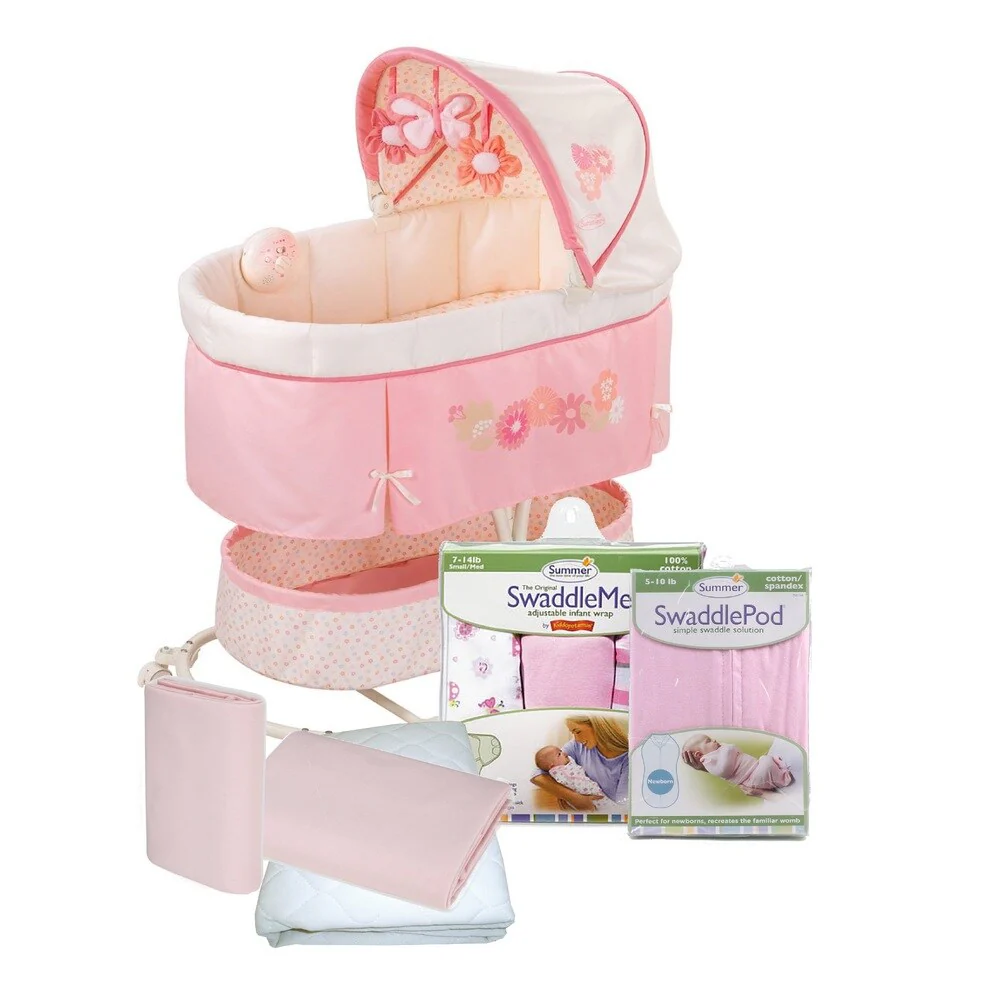 Summer Infant Soothe, Sleep and SwaddleMe Newborn Bassinet with Sleep Solutions in Flowers and Bugs