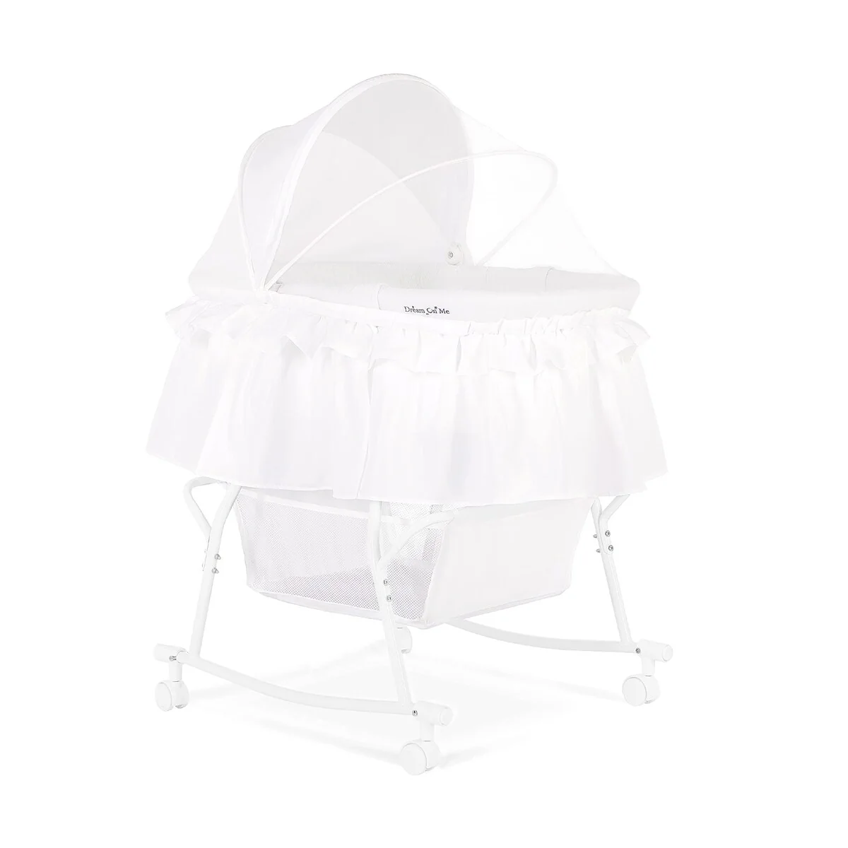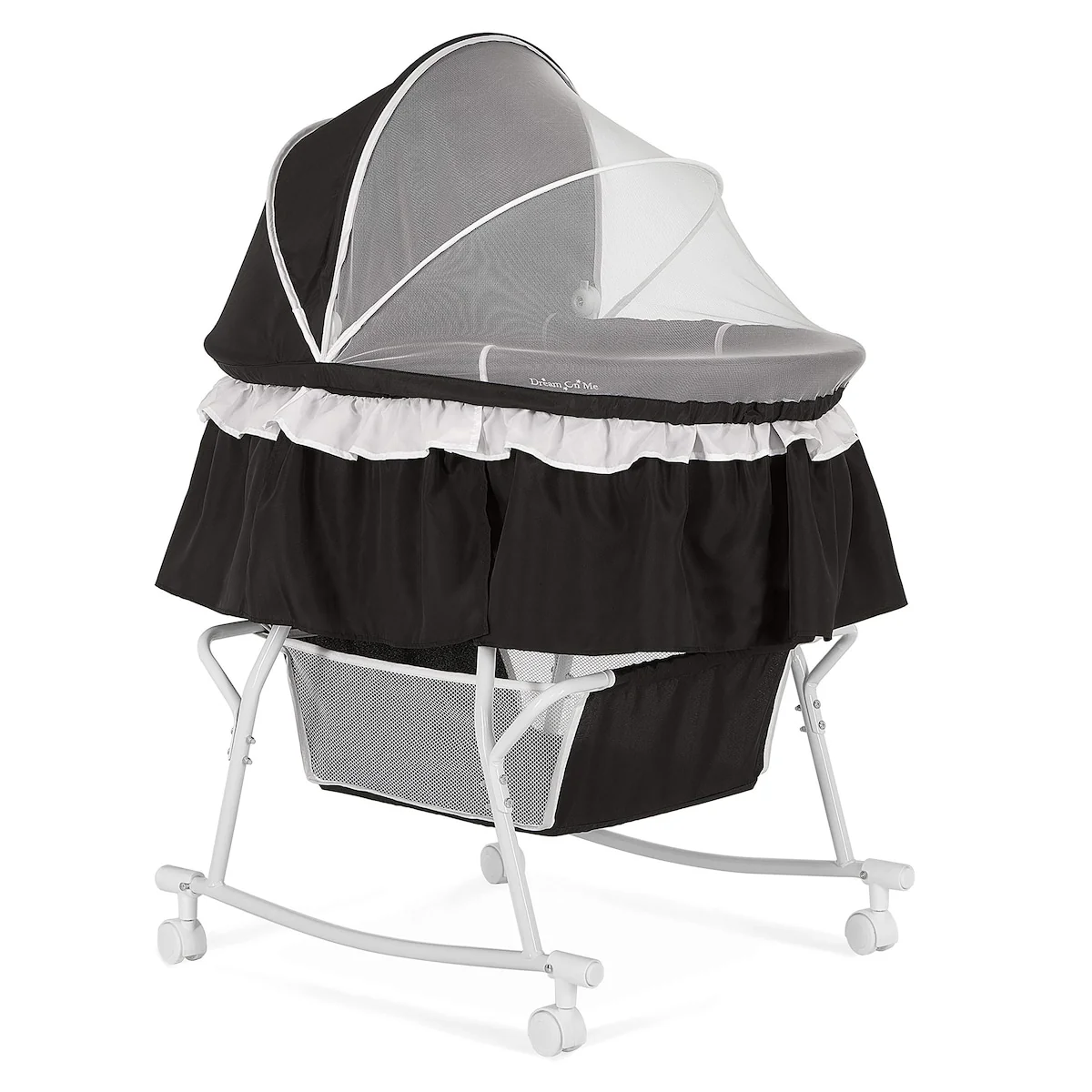 Lacy Portable 2-in-1 Bassinet & Cradle in Black, Lightweight Baby Bassinet with Storage Basket, Adjustable and Removable Canopy