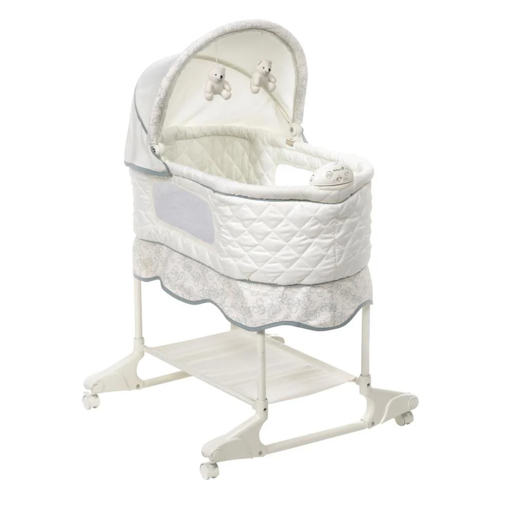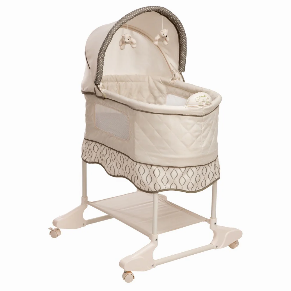 Deluxe Sweet Beginnings Bedside Bassinet - Portable Crib with Lights and Sounds, Falling Leaves