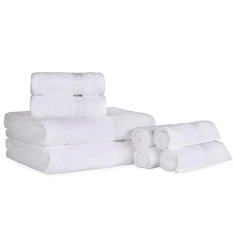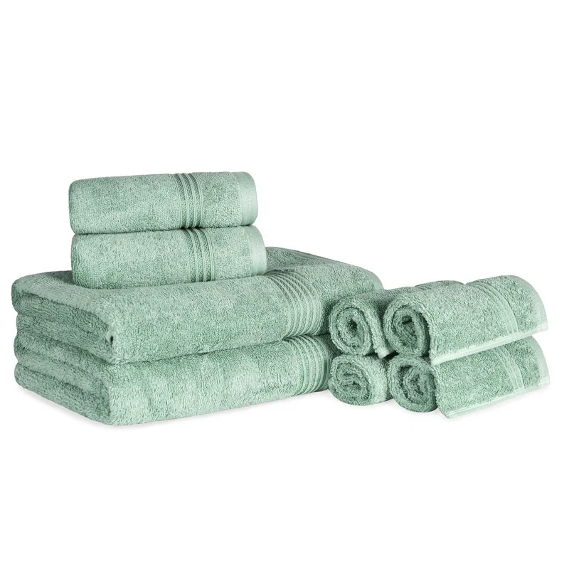 - Set includes: Four (4) Face Towels/ Washcloths, Two (2) Hand Towels, Two (2) Bath Towels