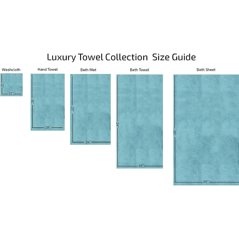 - 8 Piece Set includes: 2 washcloths, 2 hand towels, 2 bath towels, 2 bath sheets