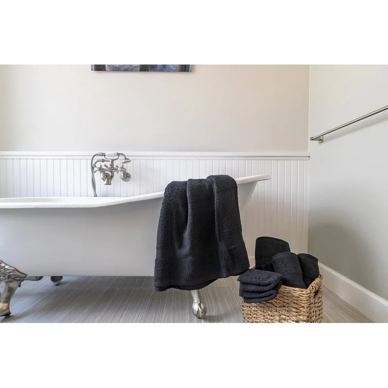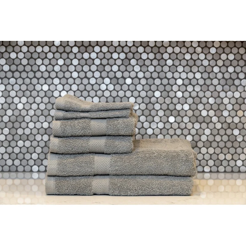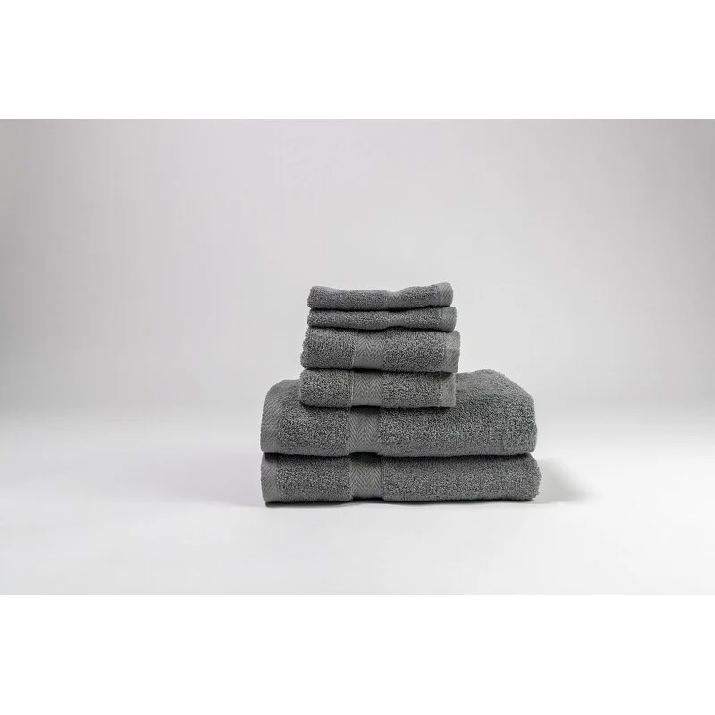 - 6-piece set includes 2 washrags, 2 finger towels, and 2 bath towels