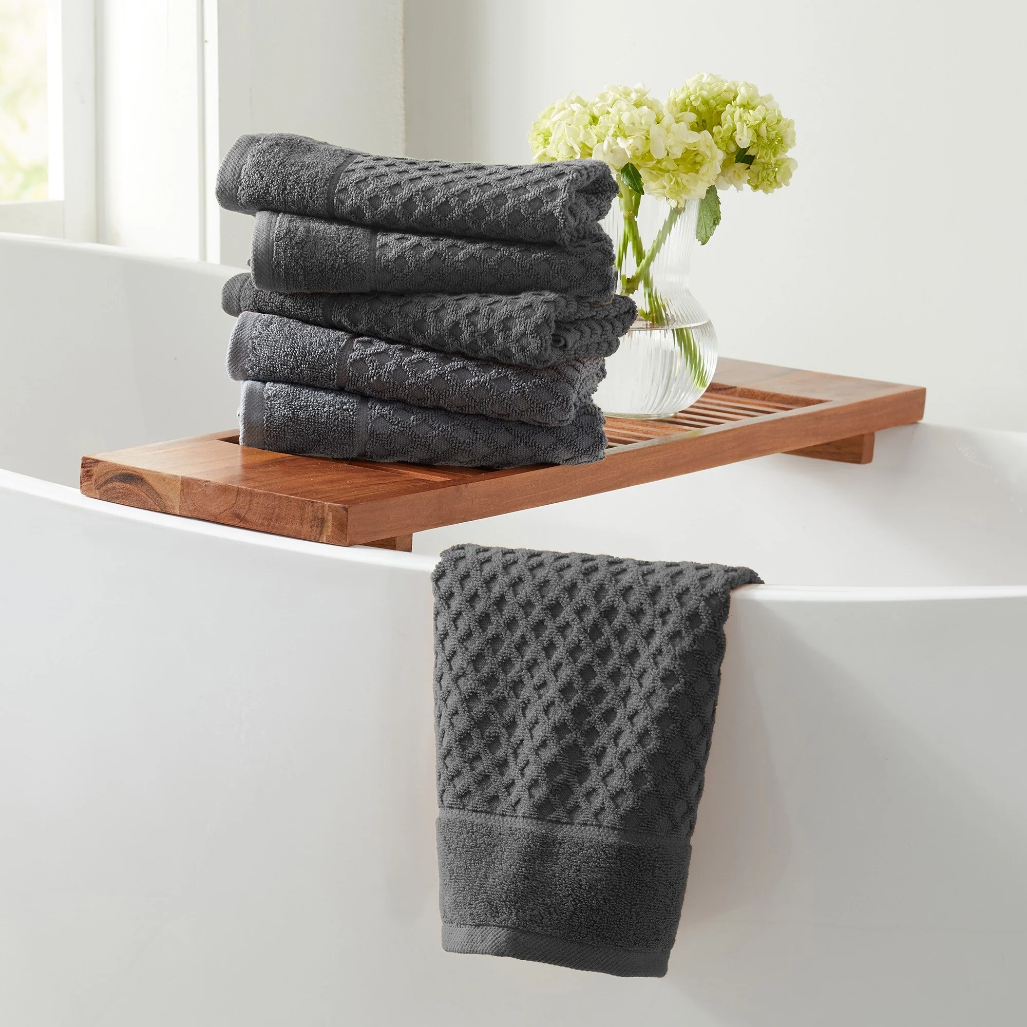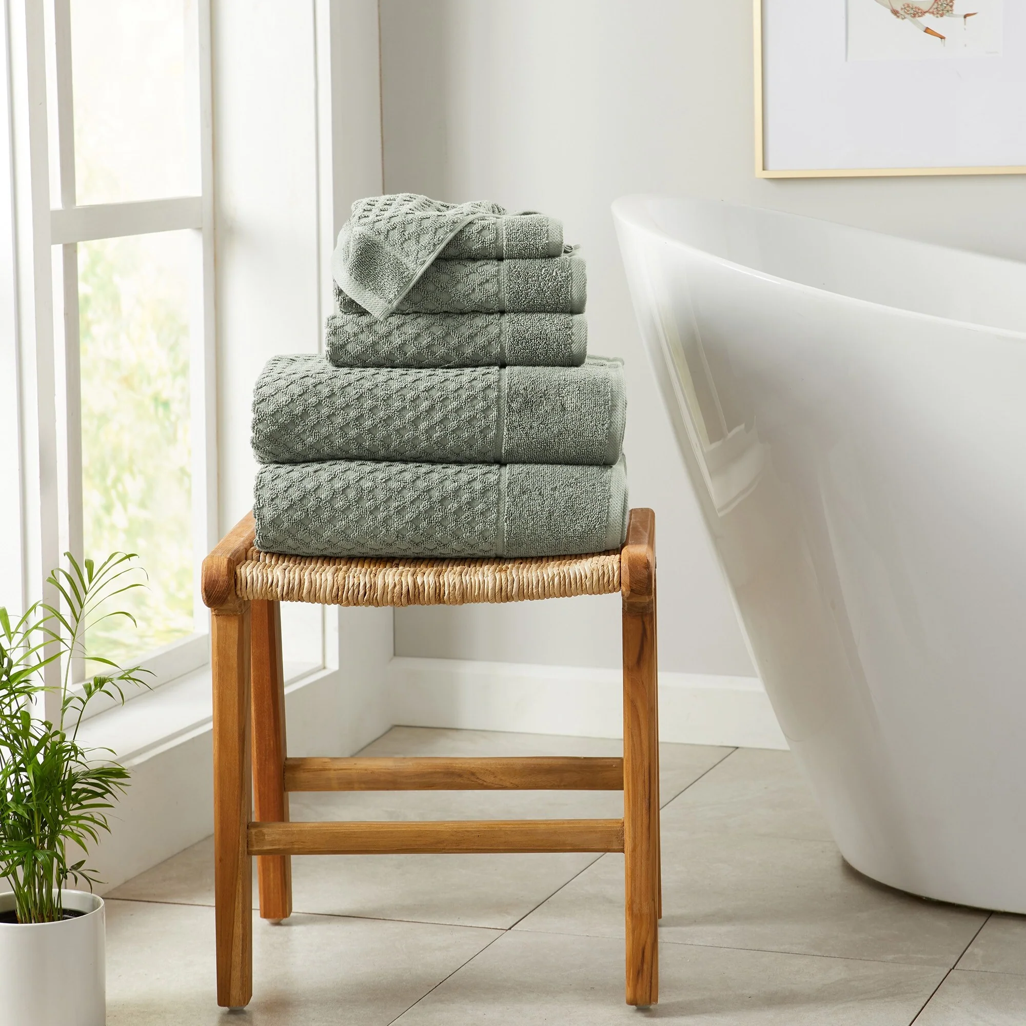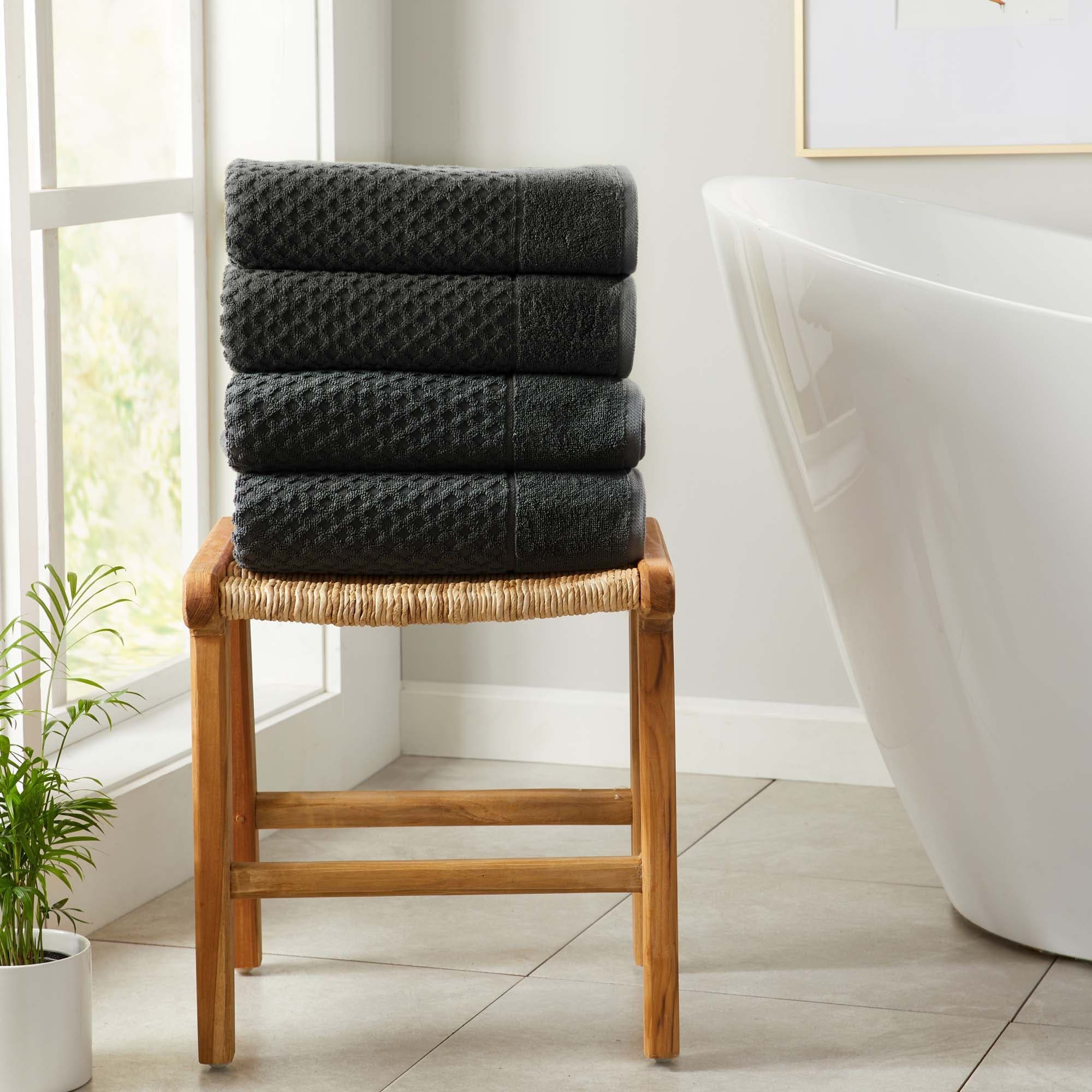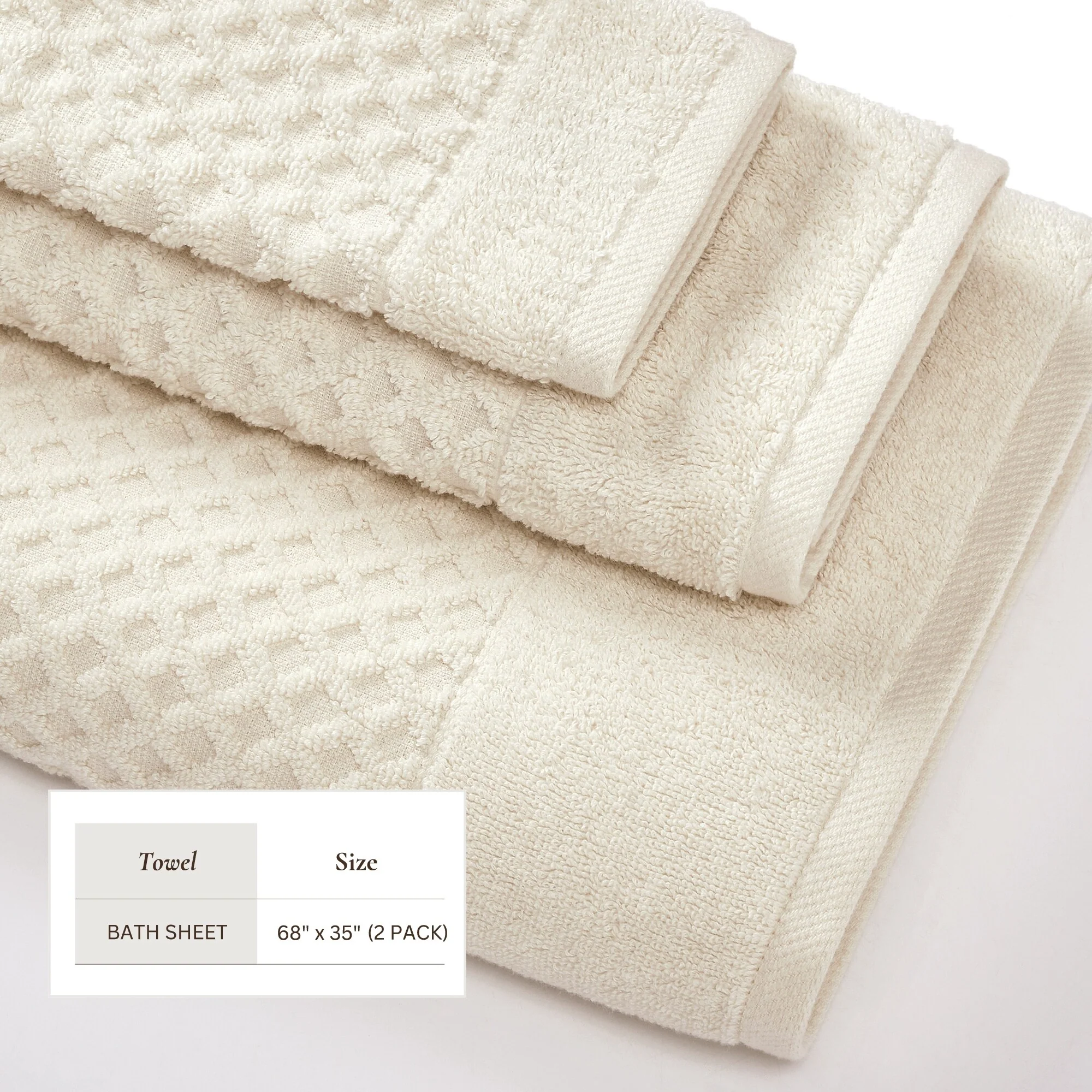 Design a bathroom that exudes a sense of serene relaxation. These plush, low-twist, two-ply cotton bath towels feature a texture that will update your decor effortlessly. The cross-hatch detail and low-twist cotton fibers allow�for a�quicker drying time and will still feel�soft�to the touch.