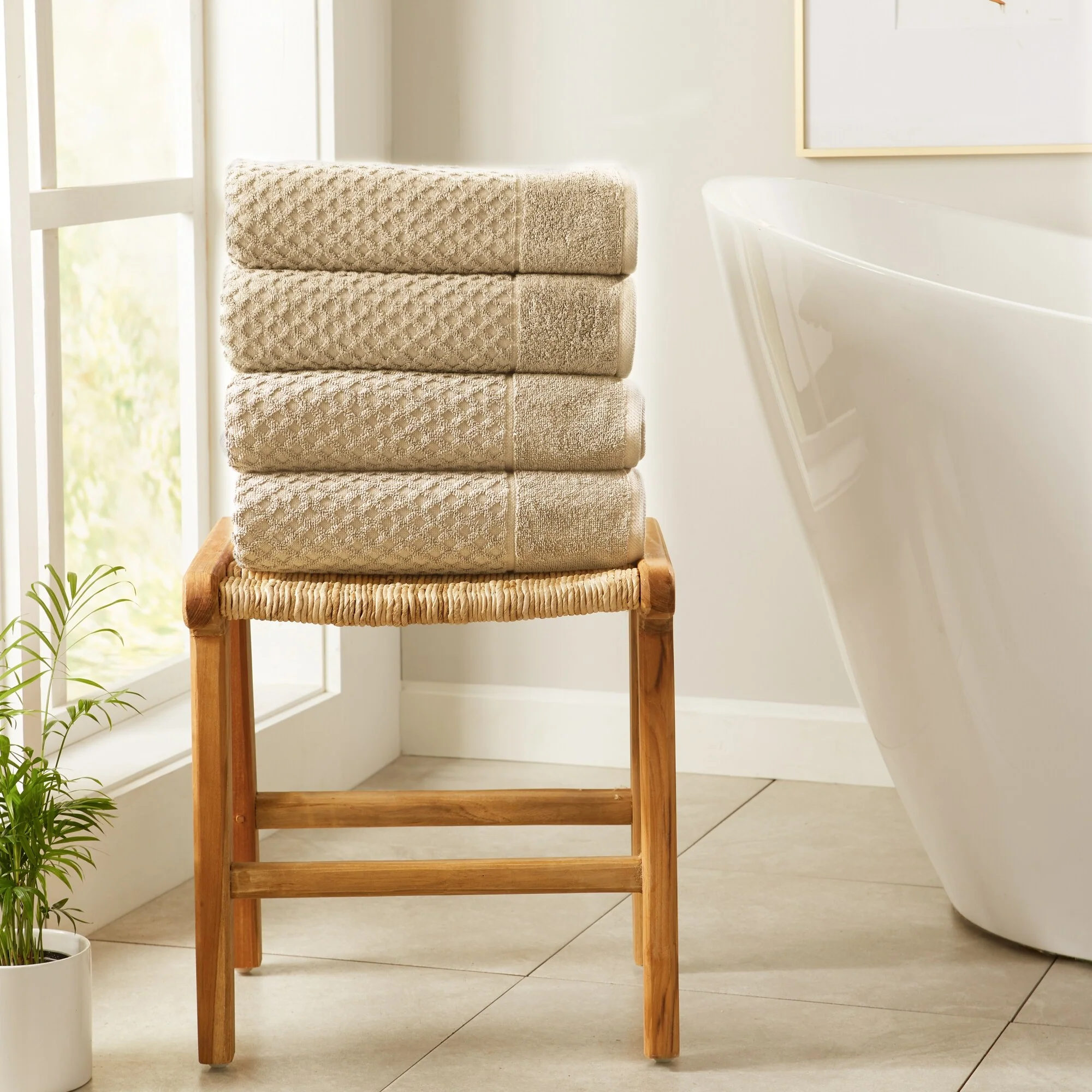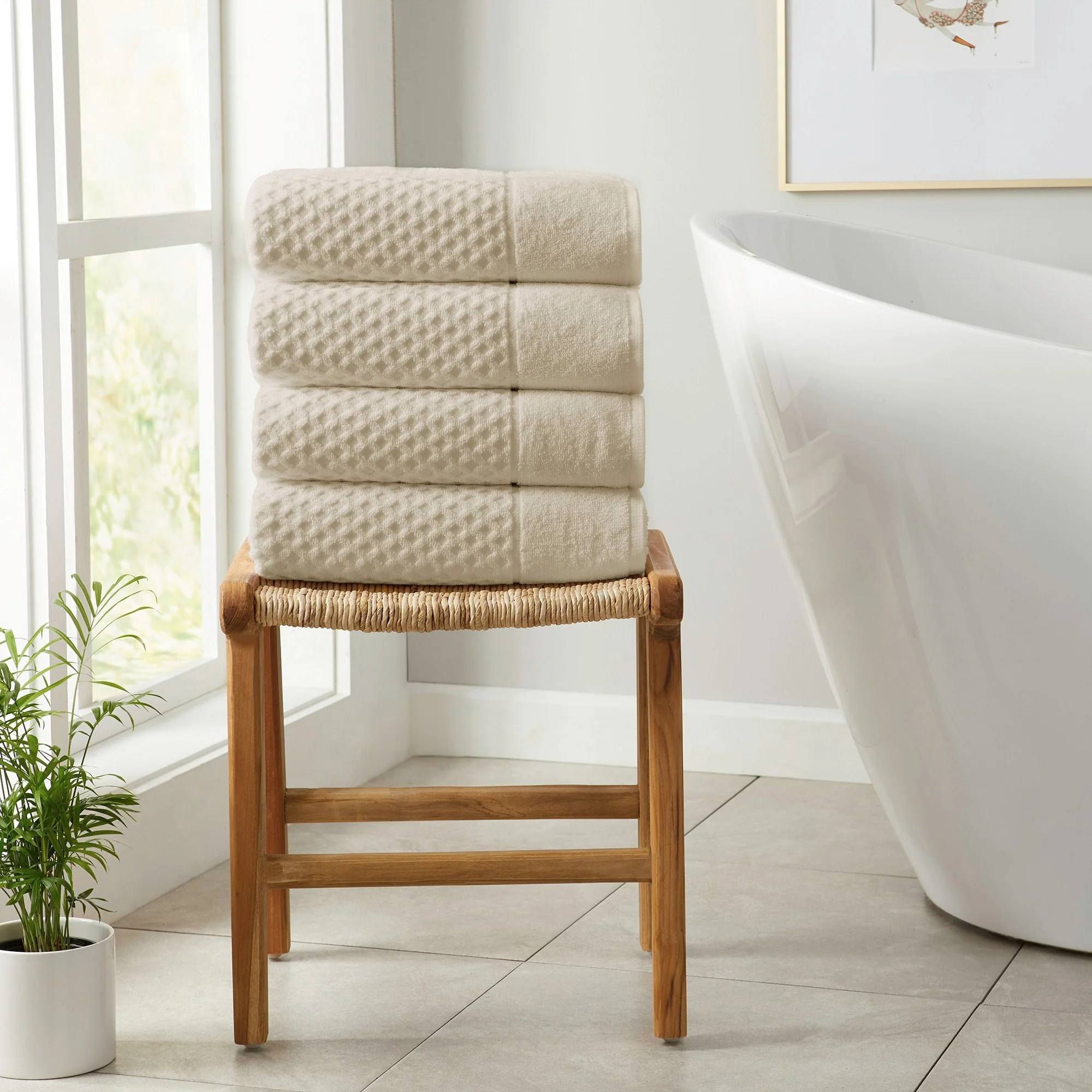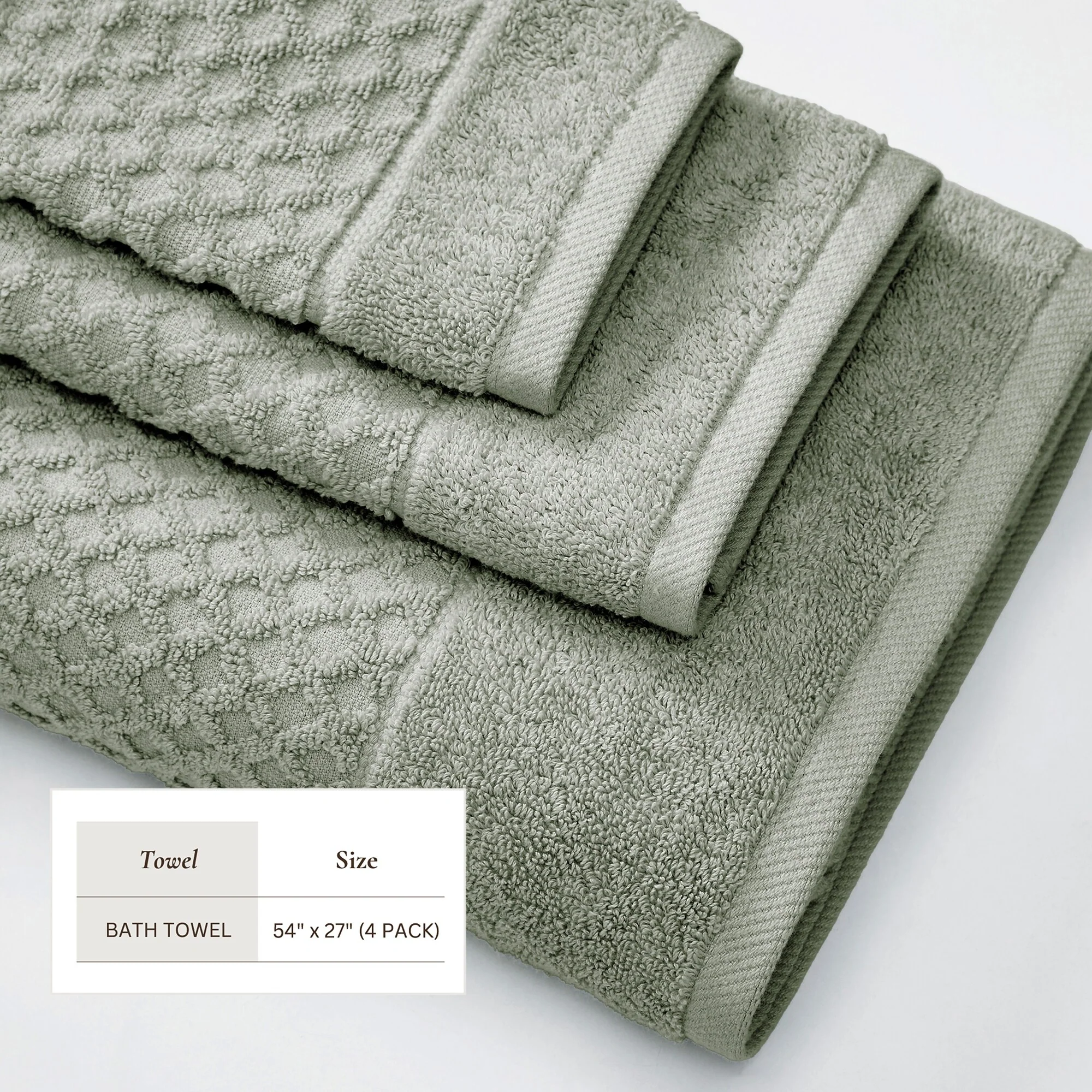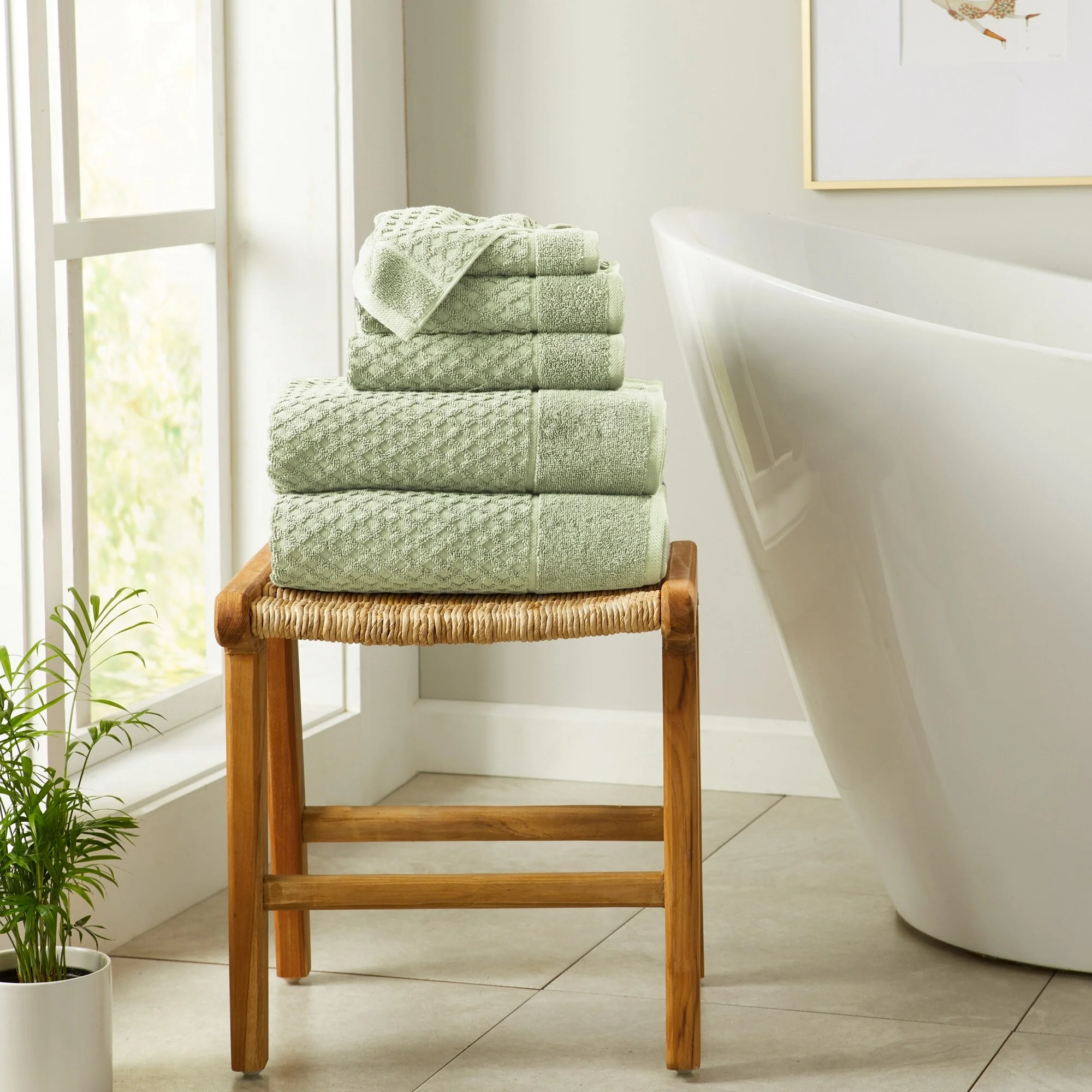 Design a bathroom that exudes a sense of serene relaxation. These plush, low-twist, two-ply cotton bath towels feature a texture that will update your decor effortlessly. The cross-hatch detail and low-twist cotton fibers allow�for a�quicker drying time and will still feel�soft�to the touch.
