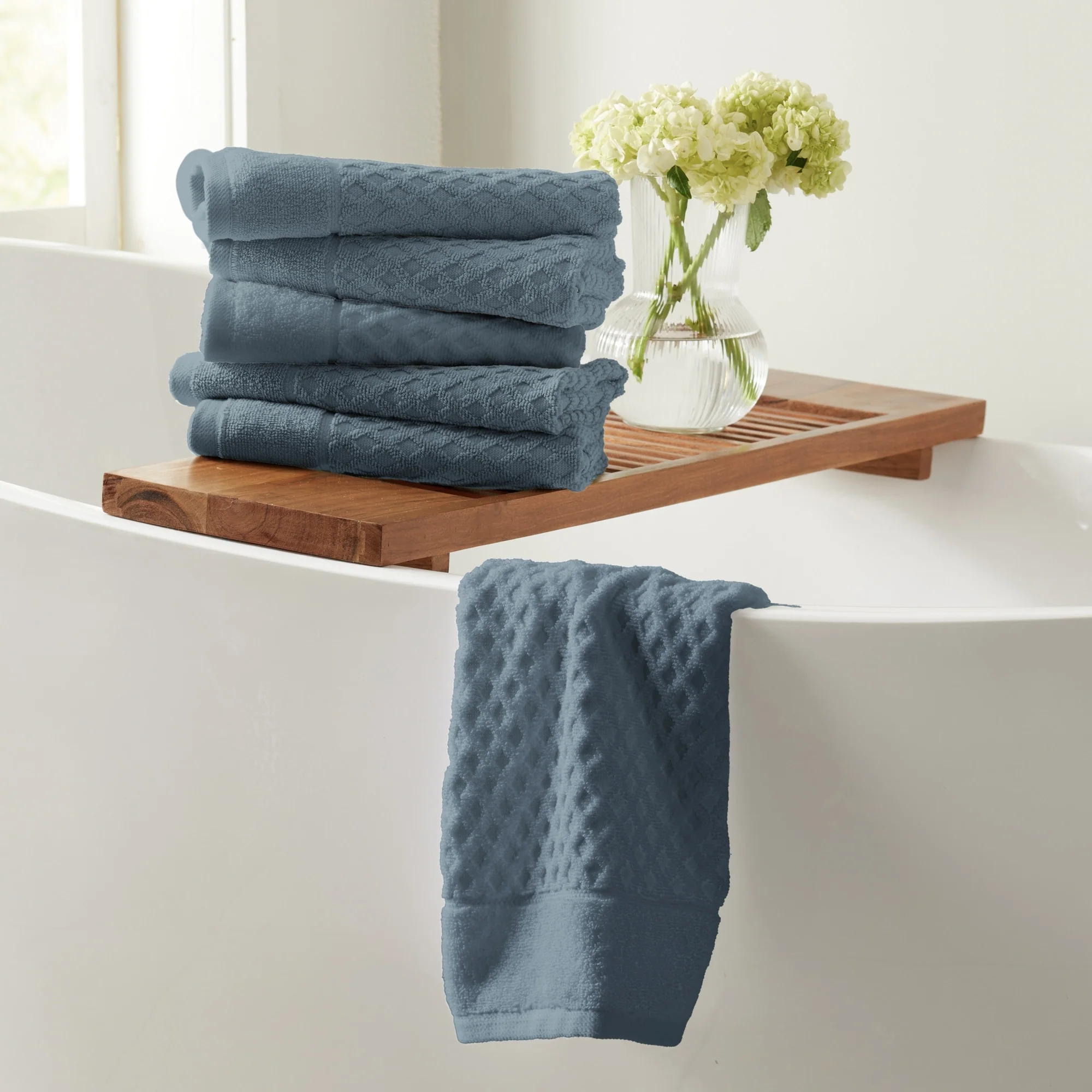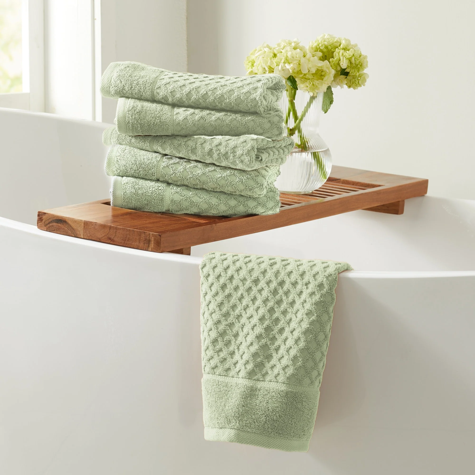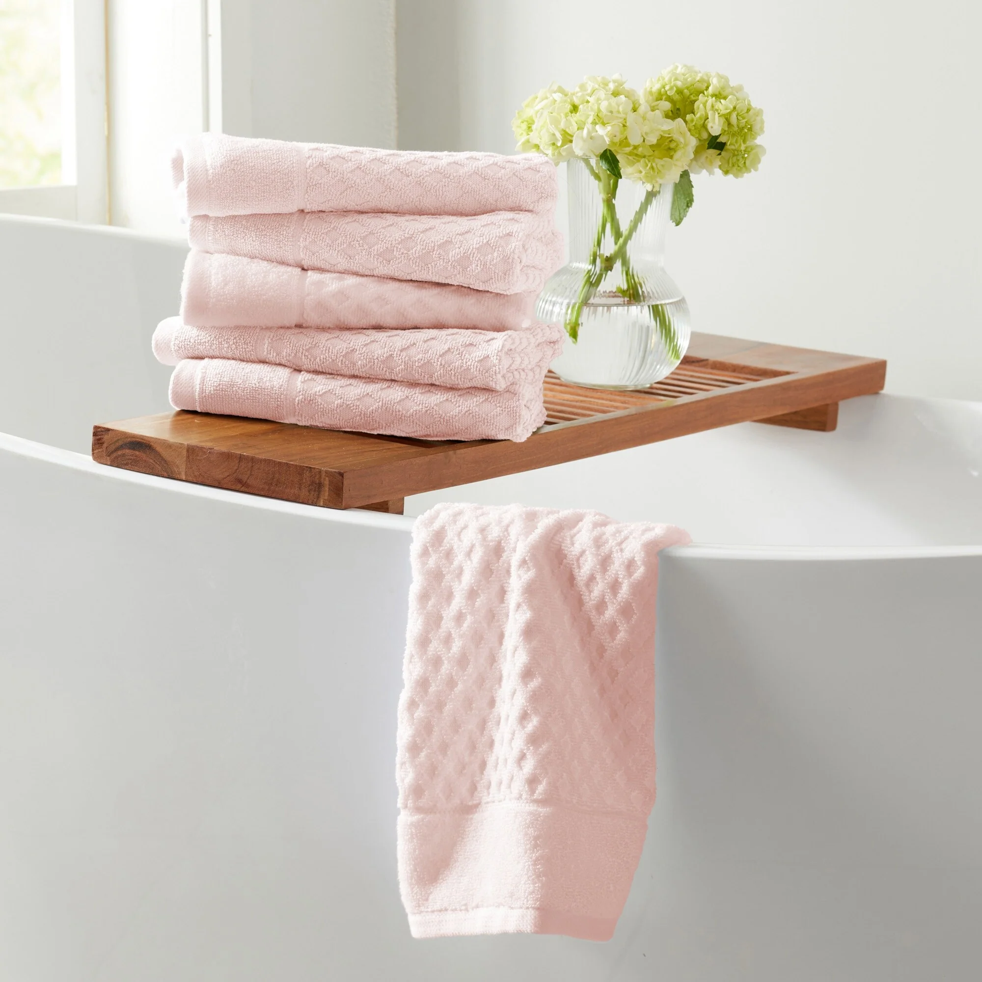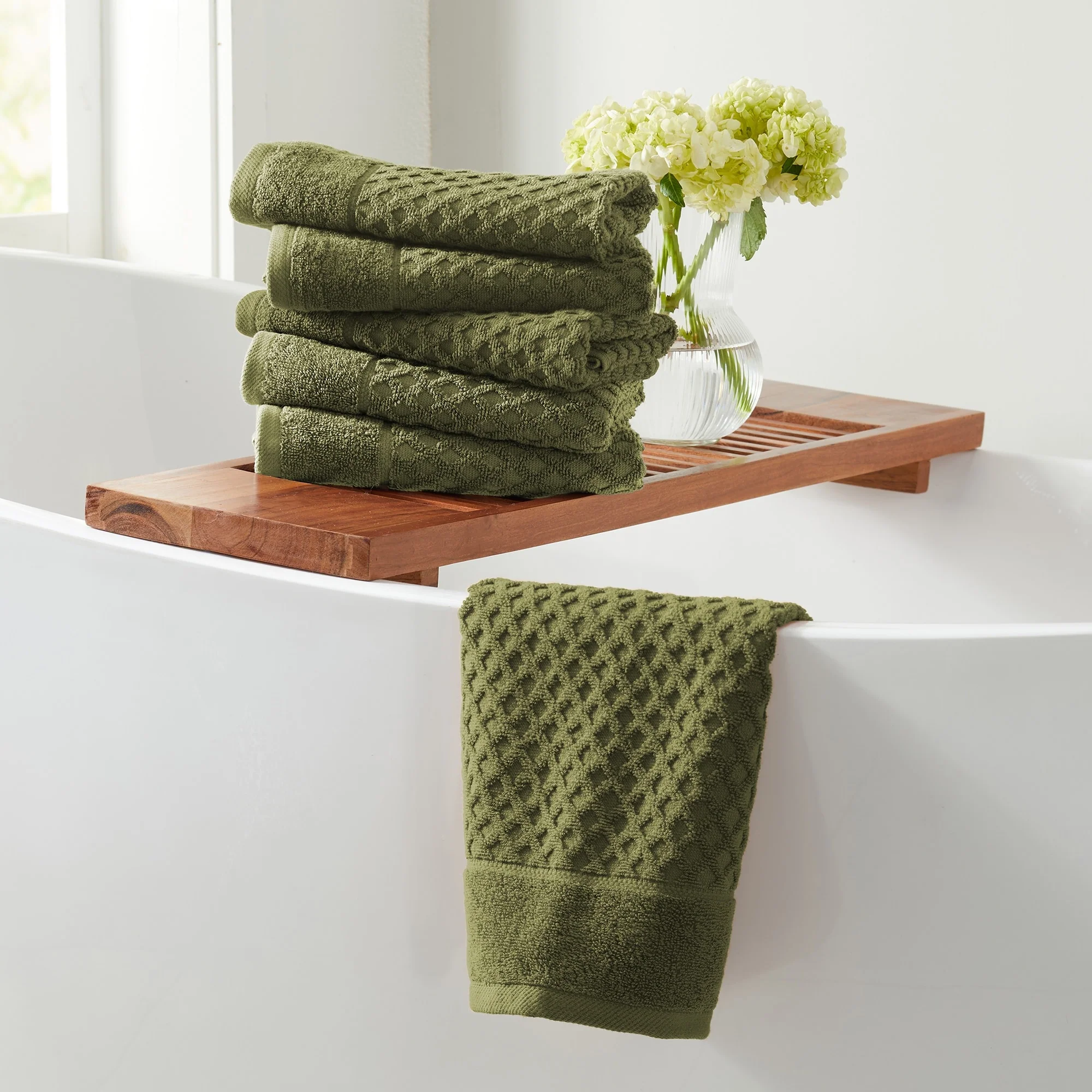 Design a bathroom that exudes a sense of serene relaxation. These plush, low-twist, two-ply cotton bath towels feature a texture that will update your decor effortlessly. The cross-hatch detail and low-twist cotton fibers allow�for a�quicker drying time and will still feel�soft�to the touch.