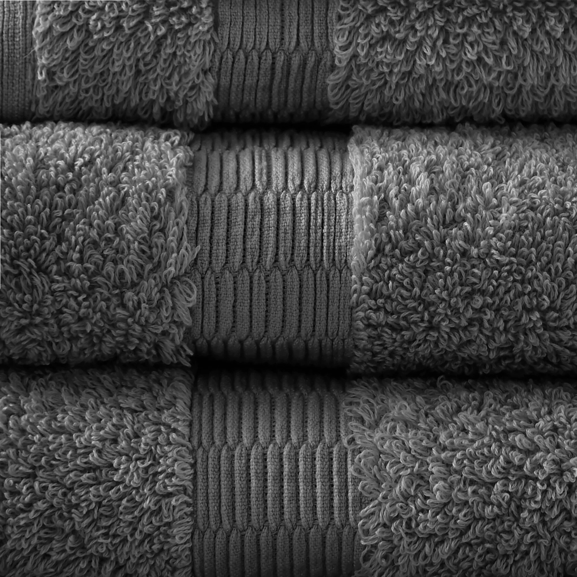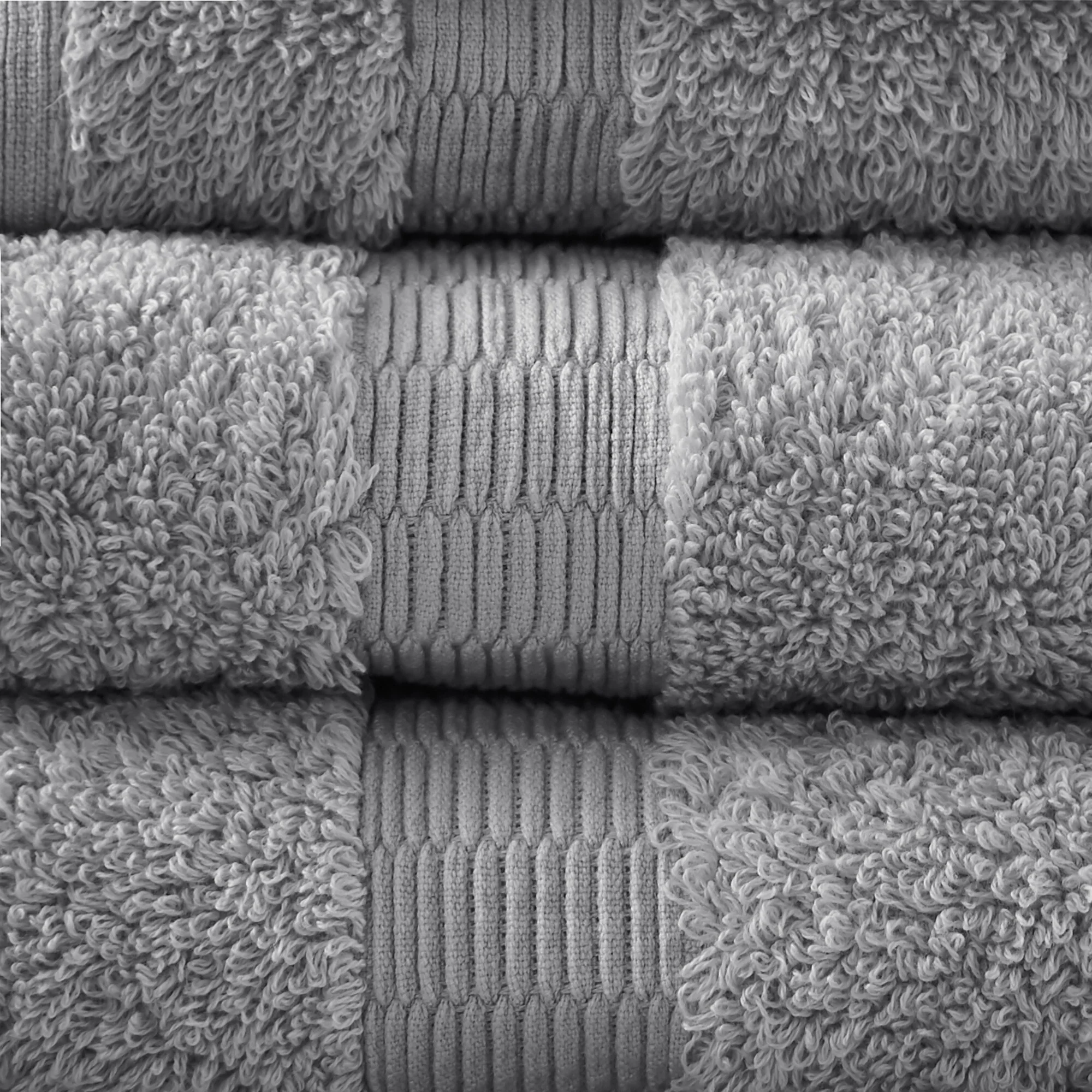 - Set includes: 2 bath (30x54), 2 hand (16x26), and 2 wash (13x13) towels