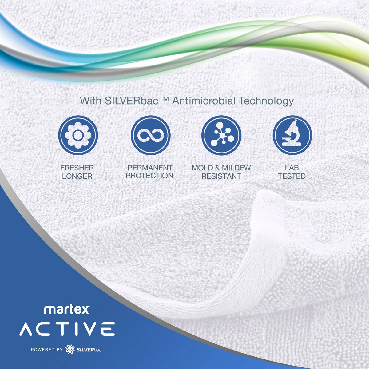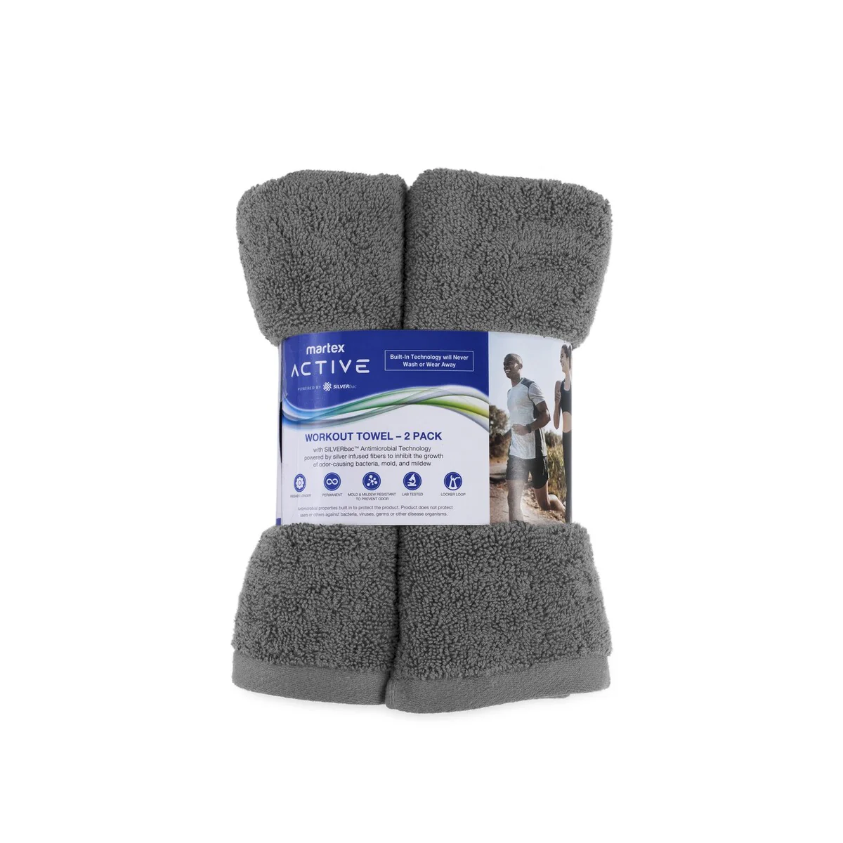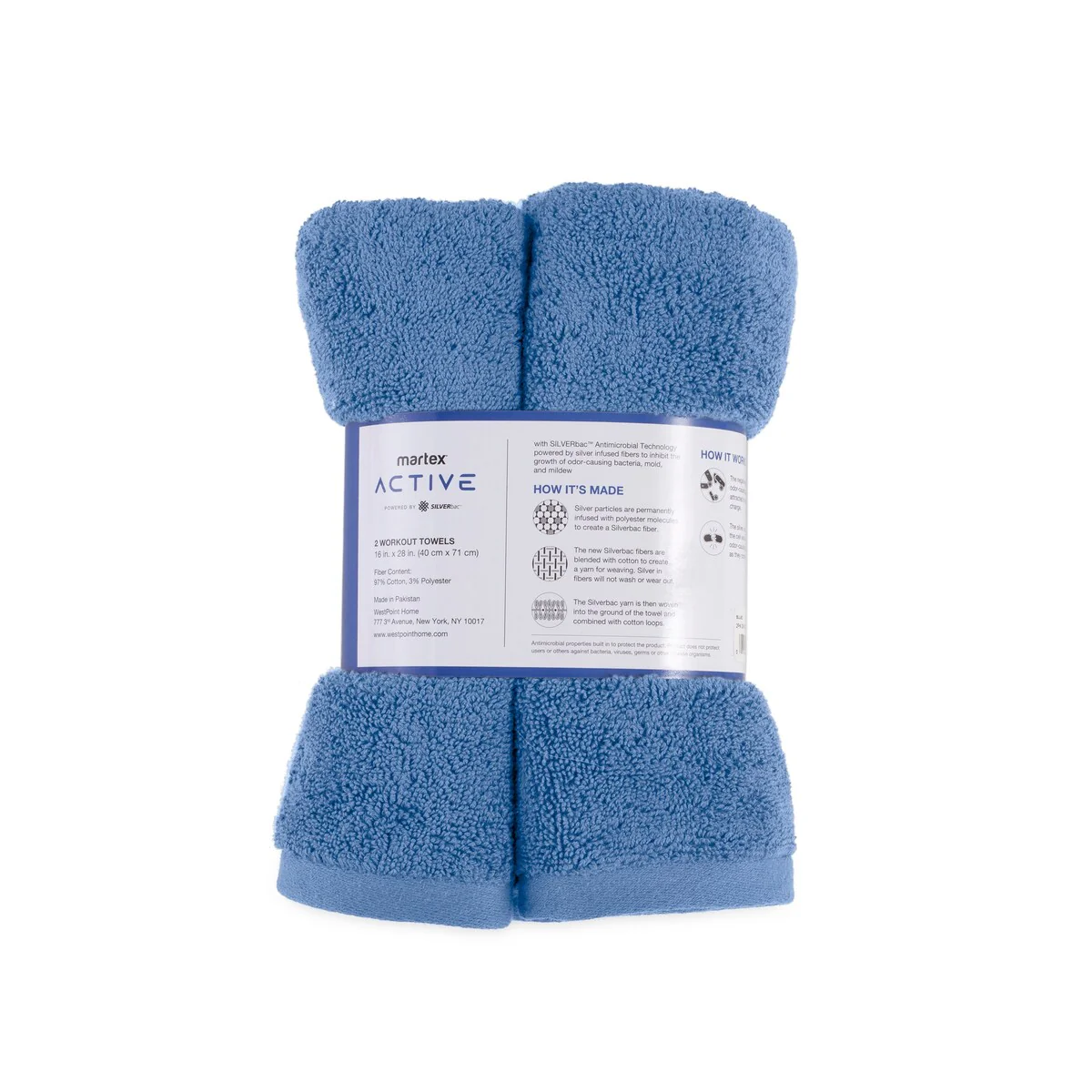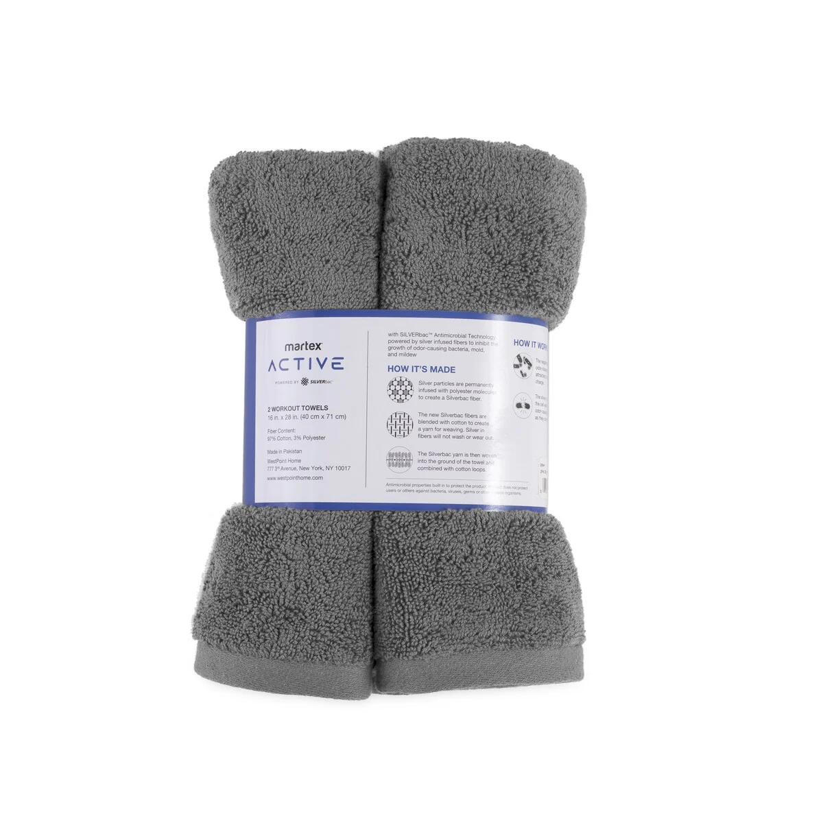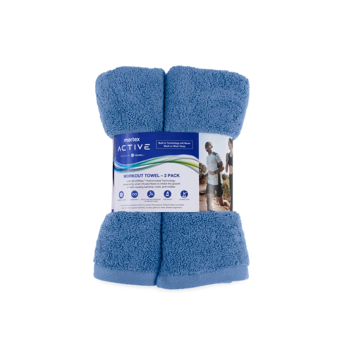 Get set to exercise at home, outside, or at the gym with the fitness-friendly Martex Active Locker Loop Towel Two-Pack with SILVERbac�� Antimicrobial Technology. These spa-worthy towels are at the ready before, during, and after your workout. Available in multiple colors, these super-soft, highly absorbent towels feature the added benefit of SILVERbac�� Antimicrobial Technology, which is powered by silver-infused fibers to inhibit the growth of odor-causing bacteria, mold, and mildew. That means they stay fresher and odor-free longer.To promote quicker drying, conveniently hang each of these generous towels from an attached Cotton Twill locker loop. They're extra durable thanks to double-needle side seams, but also stylish with attractive double-inset end borders. The silver that's infused in the Polyester fibers in the Martex Active Locker Loop Towel Two-Pack with SILVERbac�� Antimicrobial Technology provides permanent protection that will not wash or wear away. It's lab tested and designed to keep these versatile towels feeling cleaner between washes over time.The Martex Active Locker Loop Towel Collection features two-pack in the ready-for-any-workout 16'W x 28'L size. For more than 100 years, Martex has represented loving families and the brand creates items for discerning consumers who demand high-quality products with style. Machine wash before use. Wash dark colors separately in cold water. Wash light colors in warm water. Only non-chlorine bleach. Tumble dry low.Feature SILVERbac�� Antimicrobial Technology powered by silver-infused fibers to inhibit the growth of odor-causing bacteria, mold, and mildewCrafted of 97% Cotton and 3% silver-infused PolyesterConvenient locker loop promotes quicker hang dryingAvailable in two-packsMachine washable and dryer safeWorkout Towel dimensions: 16'W x 28'L; comes in shades of Aqua, Blue, Gray, and Optical White