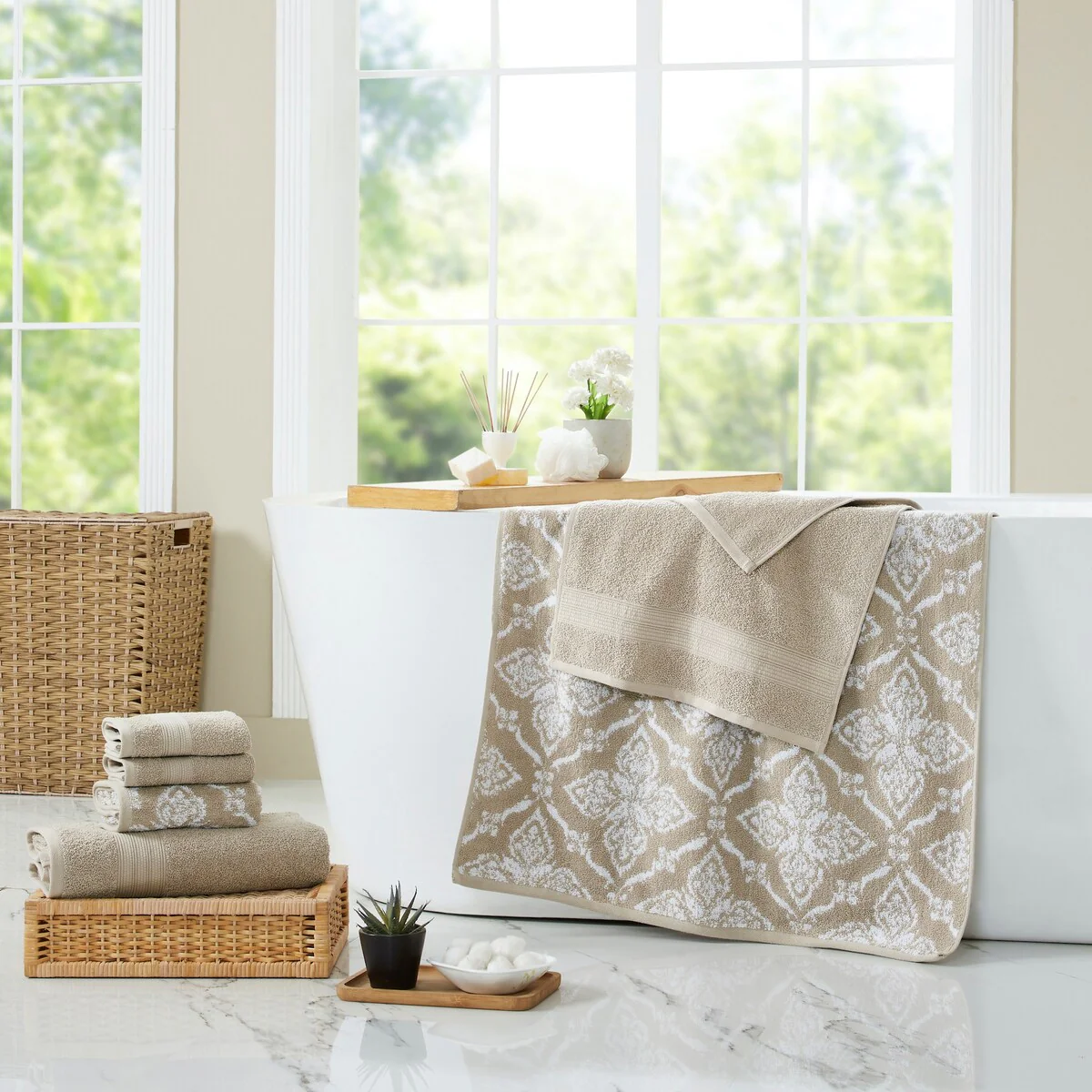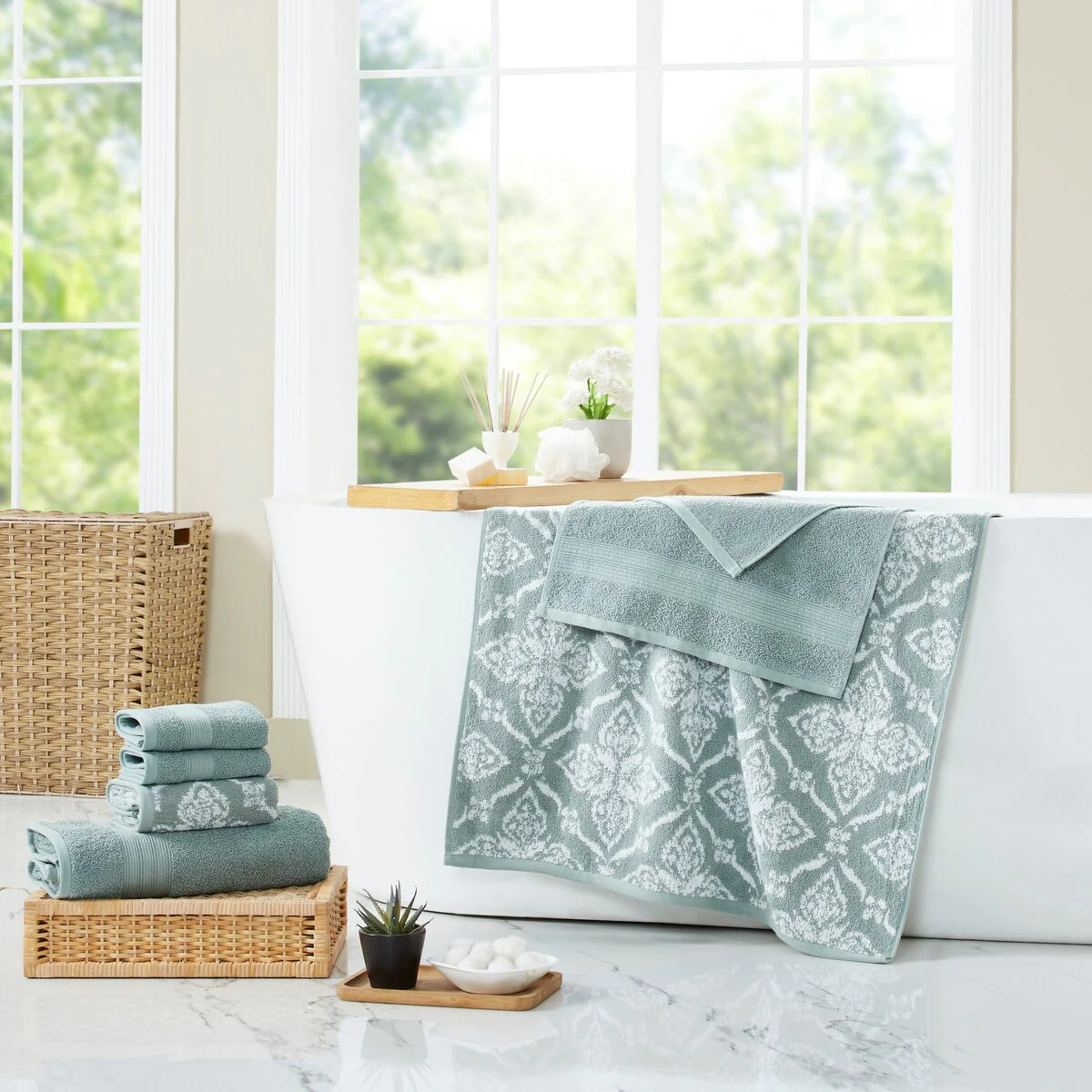 - Set Includes: (2) Bath towel, (2) Hand towel, (2) Washcloth