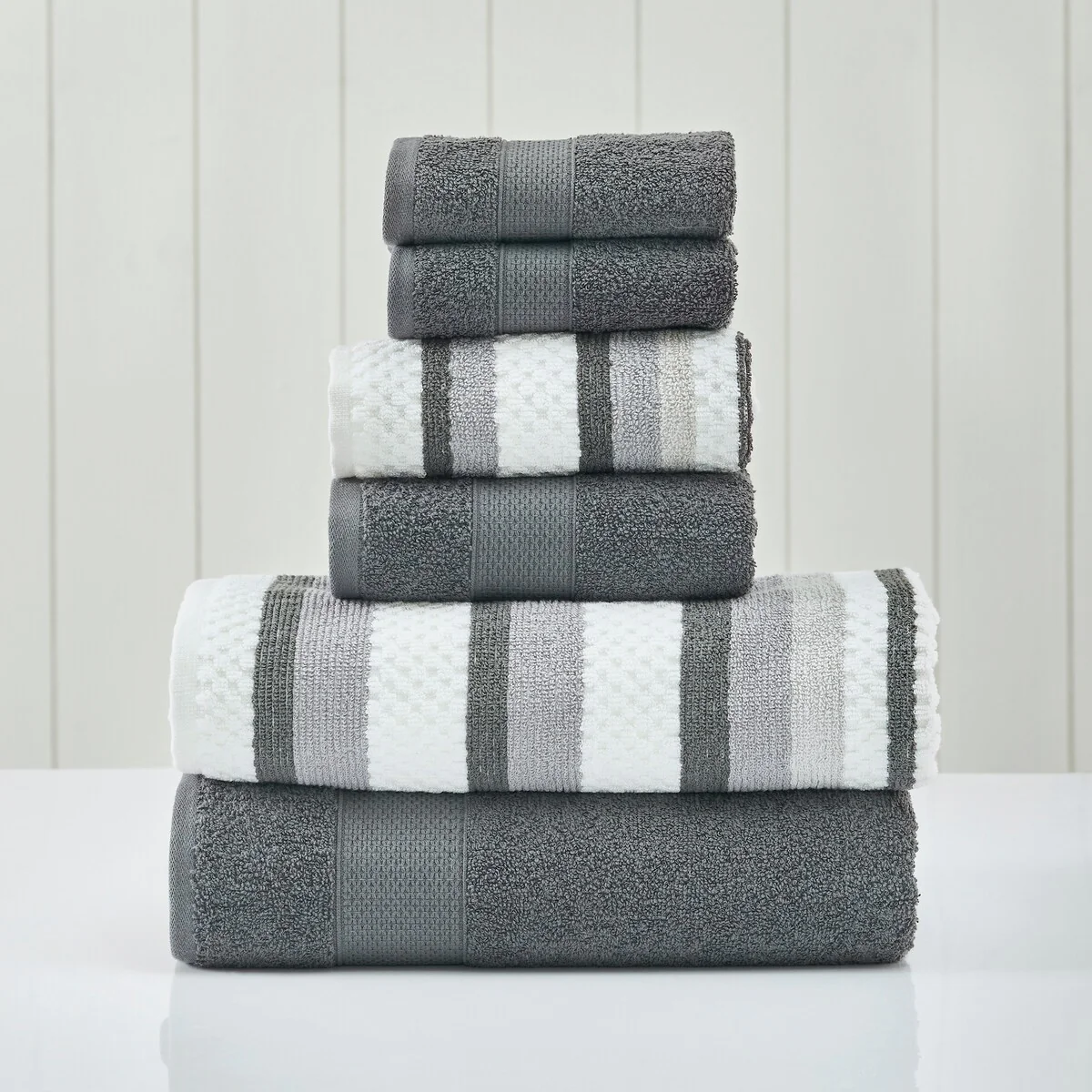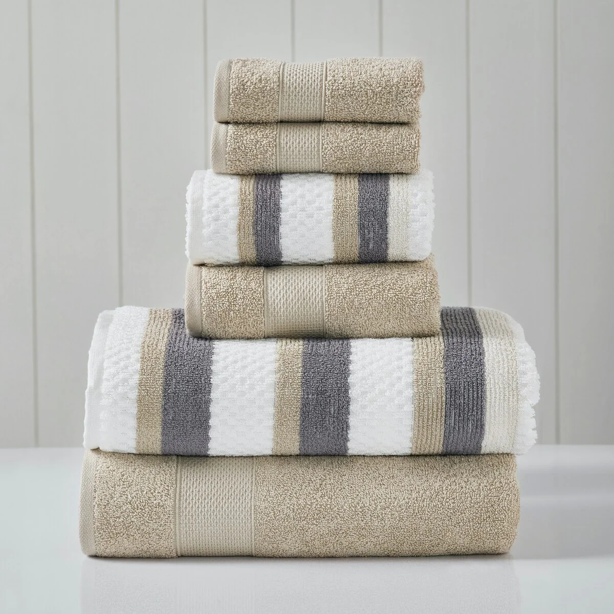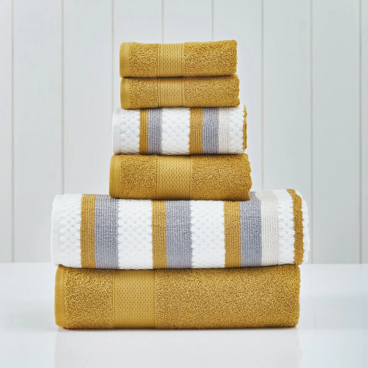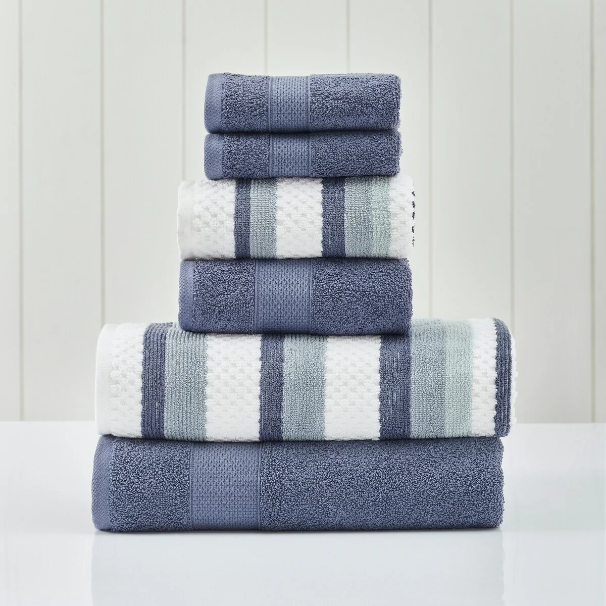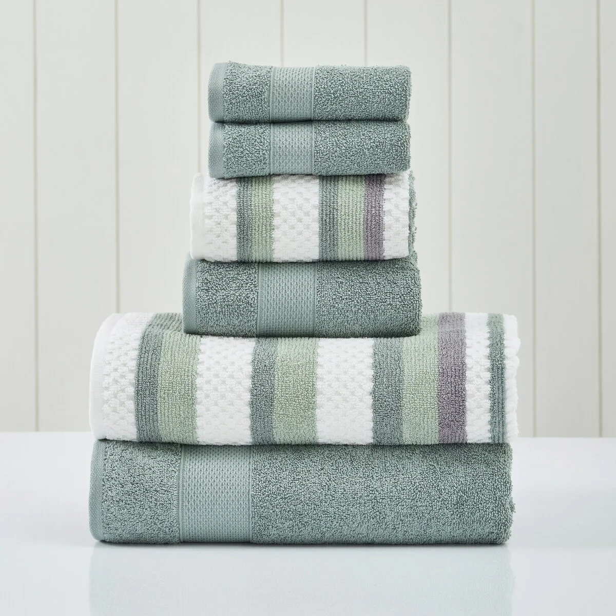 - Set Includes: (2) Bath towel, (2) Hand towel, (2) Washcloth