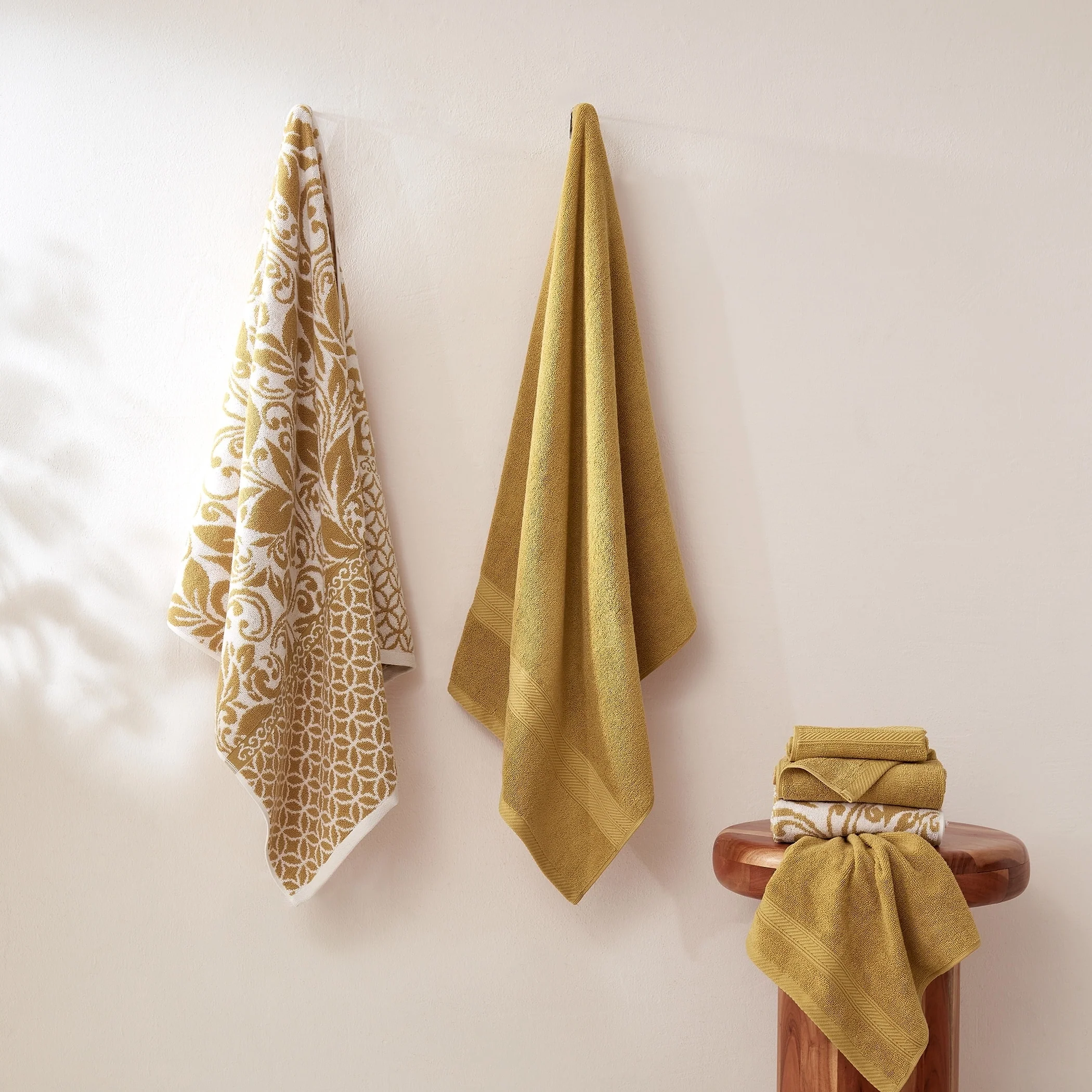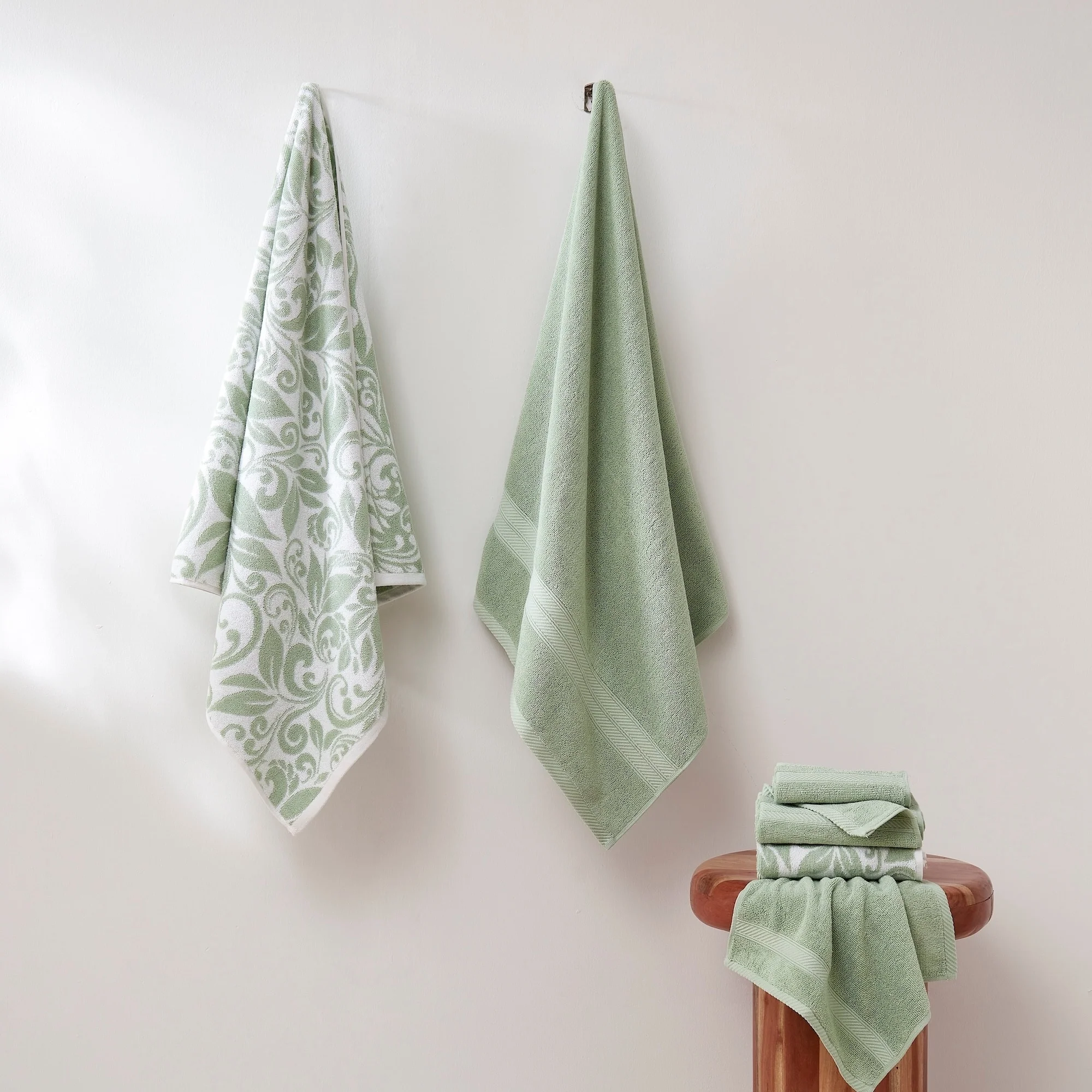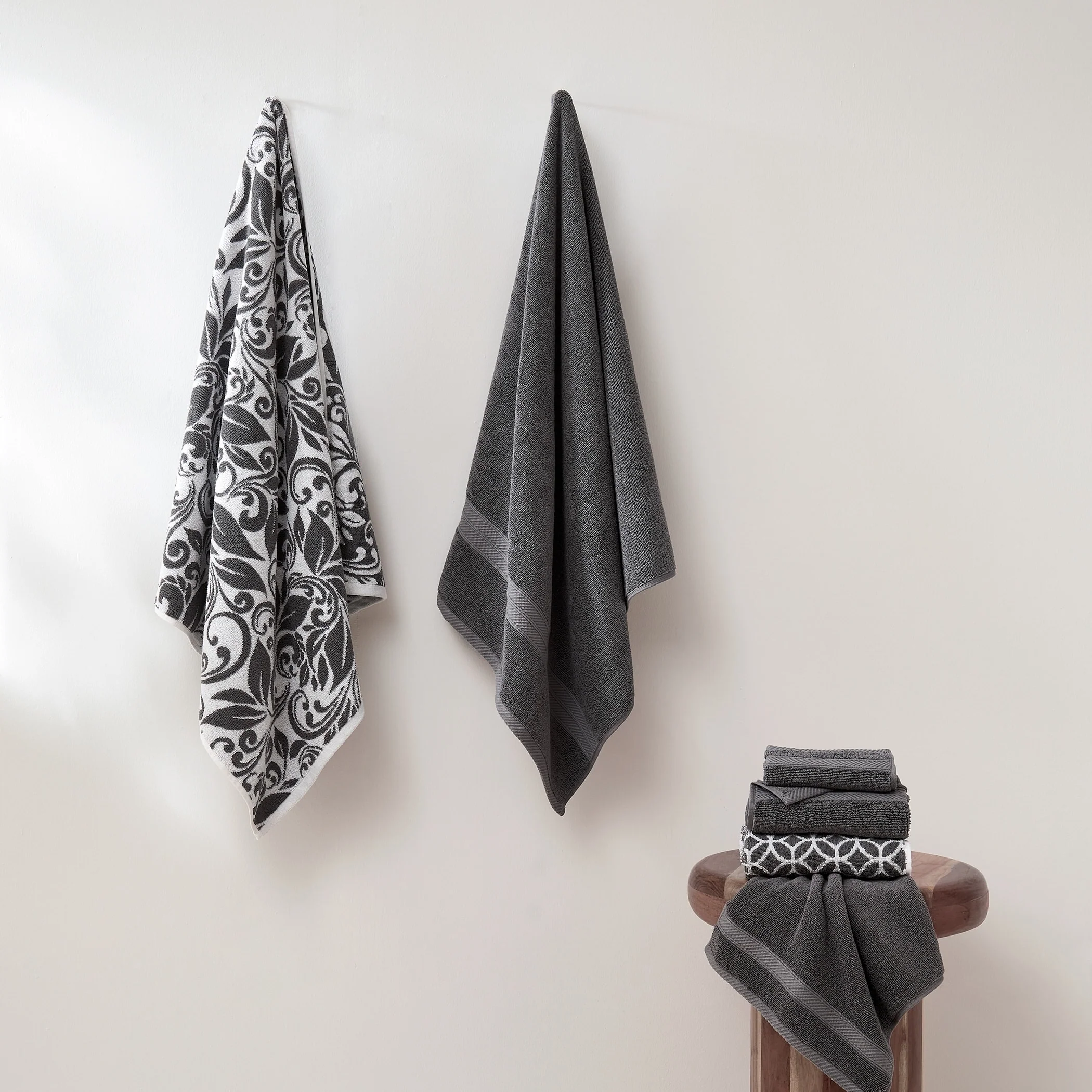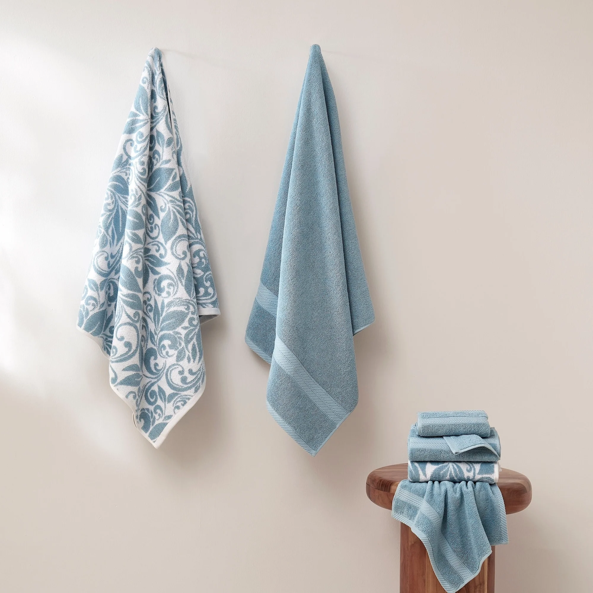- Set Includes: (2) Bath towel, (2) Hand towel, (2) Washcloth