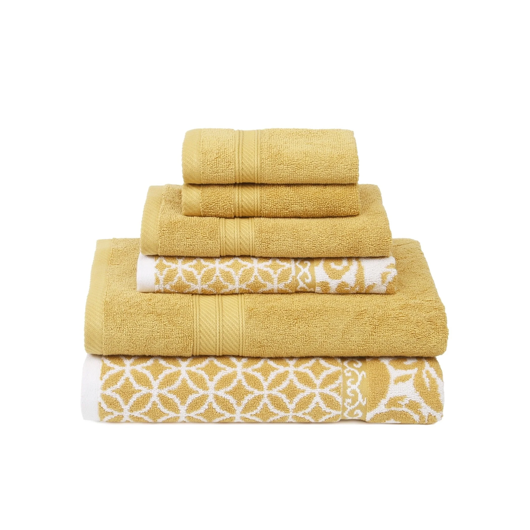 Bring vigor back to your bathroom with the 6 Piece Reversible Yarn Dyed Jacquard Towel Set. They are made from loops of soft 100% cotton with a zero-twist weave that quickly absorbs water. These striking pieces come in a variety of colors that complement your bathroom. The plush towel set offers a lighter weight, fluffy softness, and quick absorbency, which means ultimate comfort and fast results when drying your hands and face after washing up or drying off after stepping out of a hot shower. Finding a quality bath towel that combines luxury softness and ultimate absorbency can be hard to come by these days, especially at an affordable price, but with Modern Threads' incredible bath line we've given you all that and so much more.