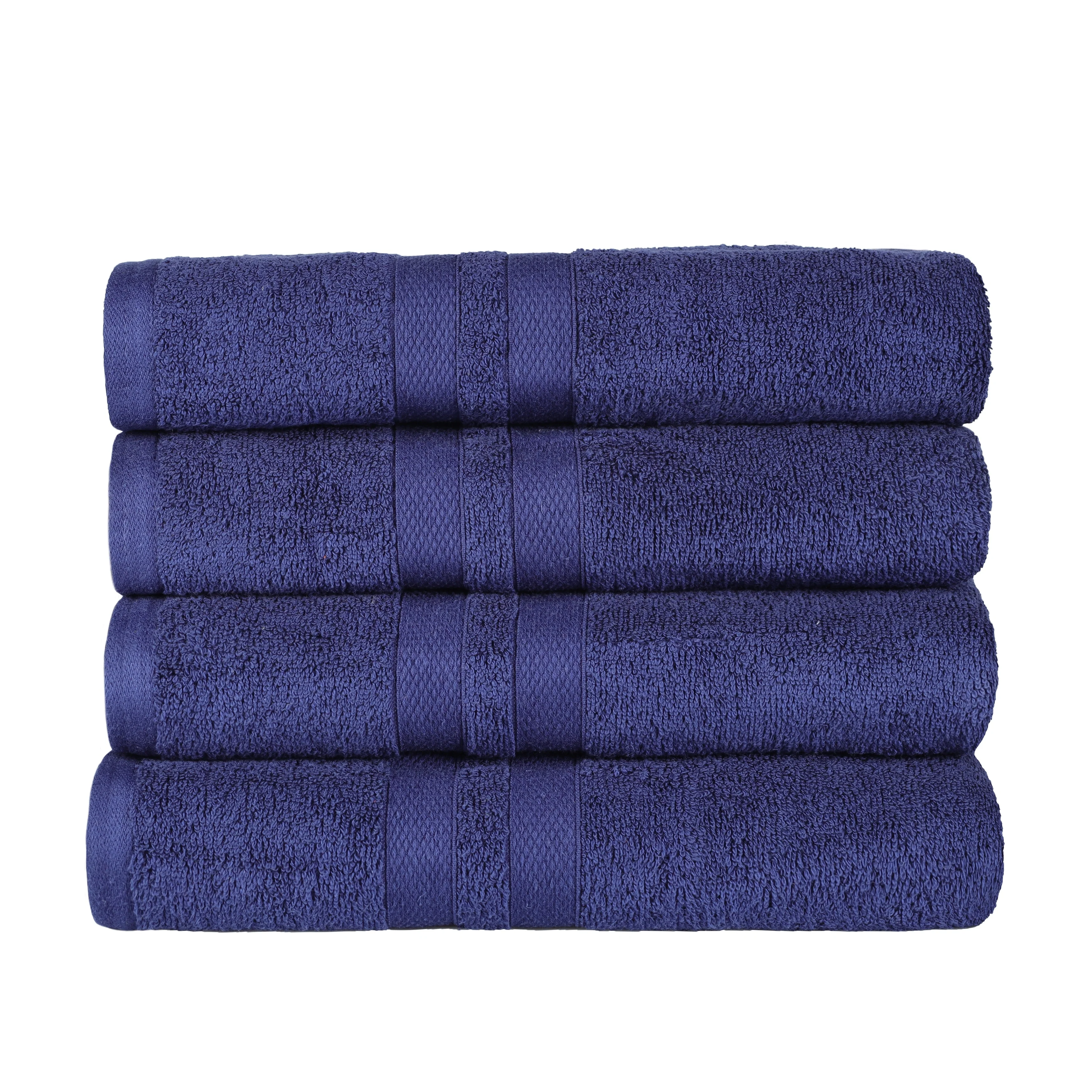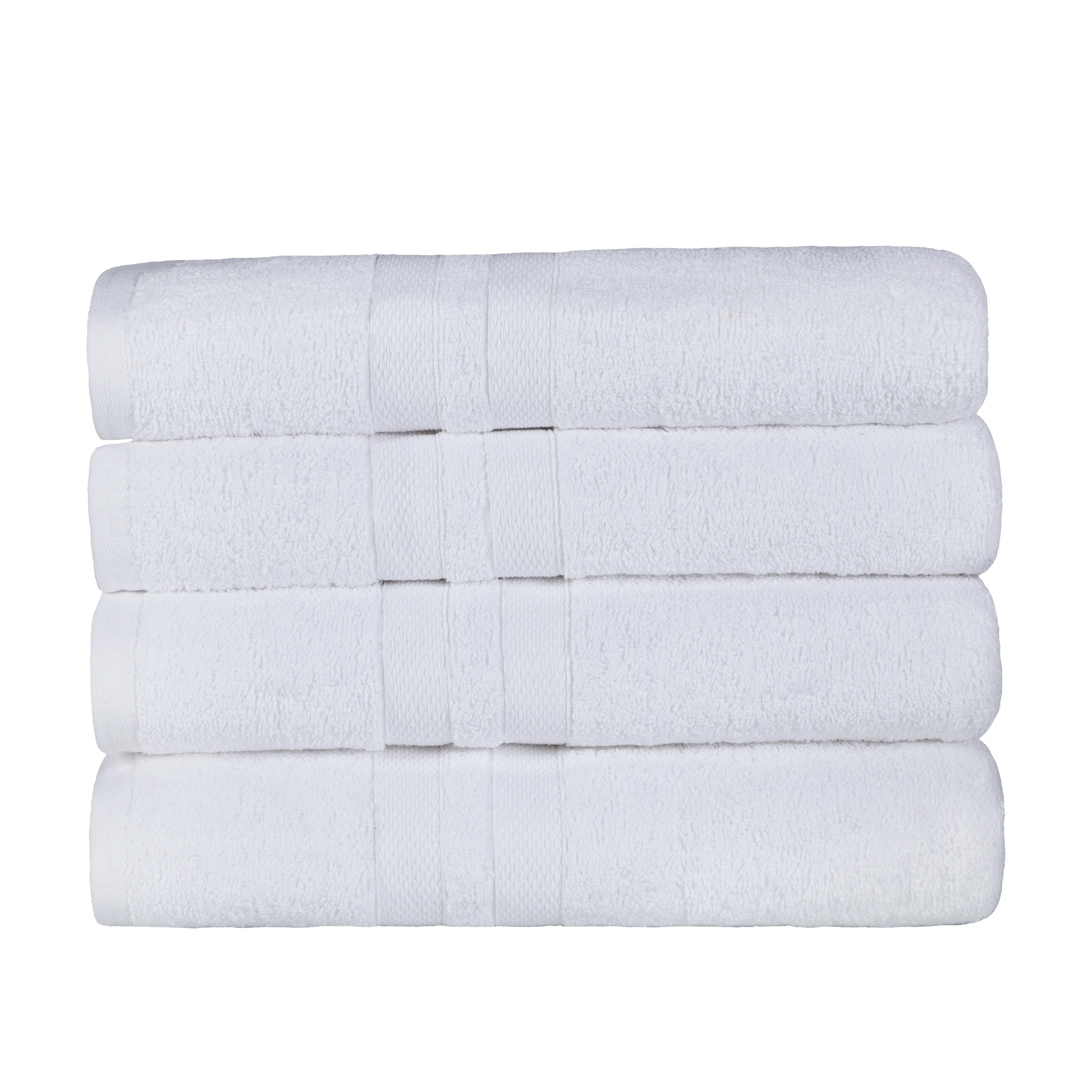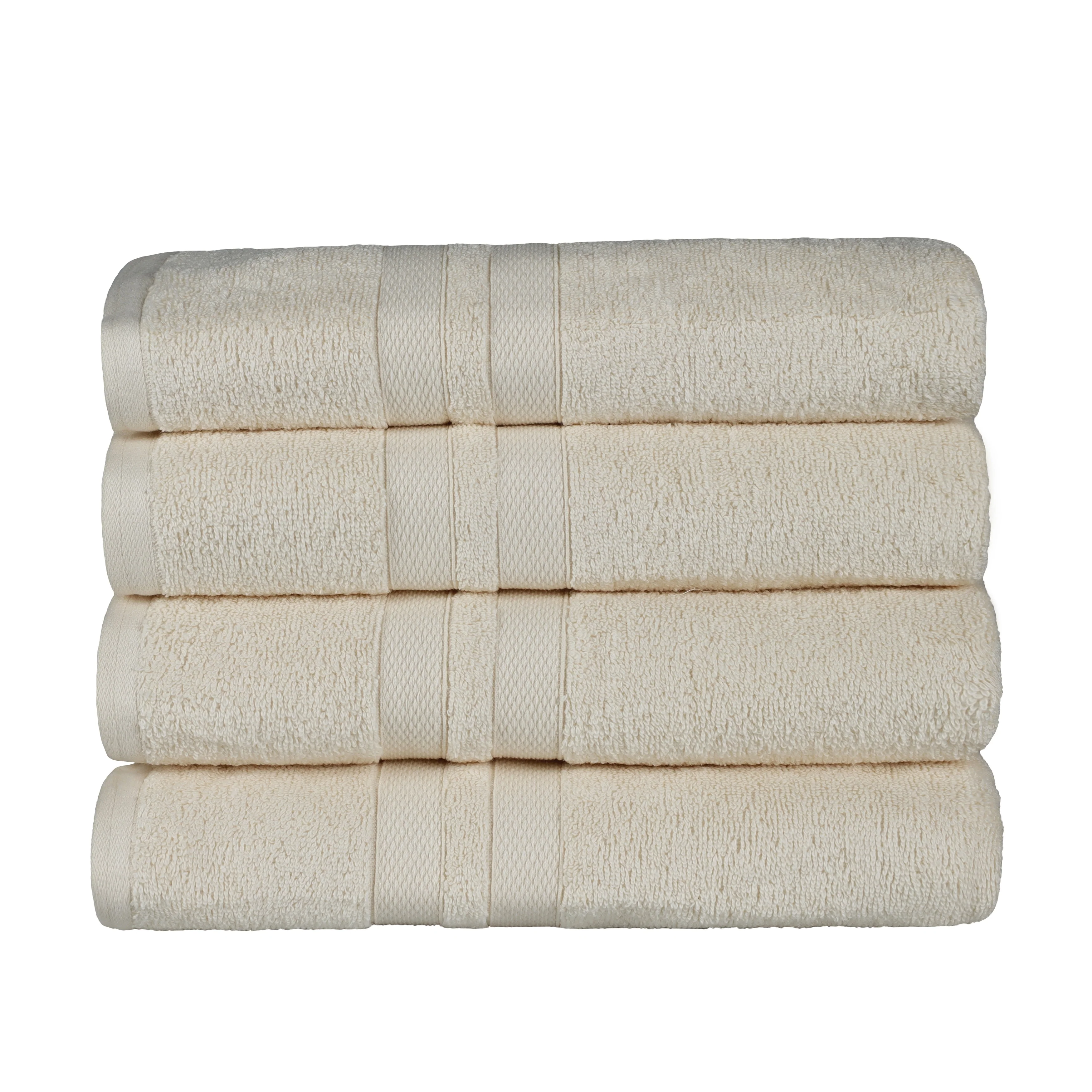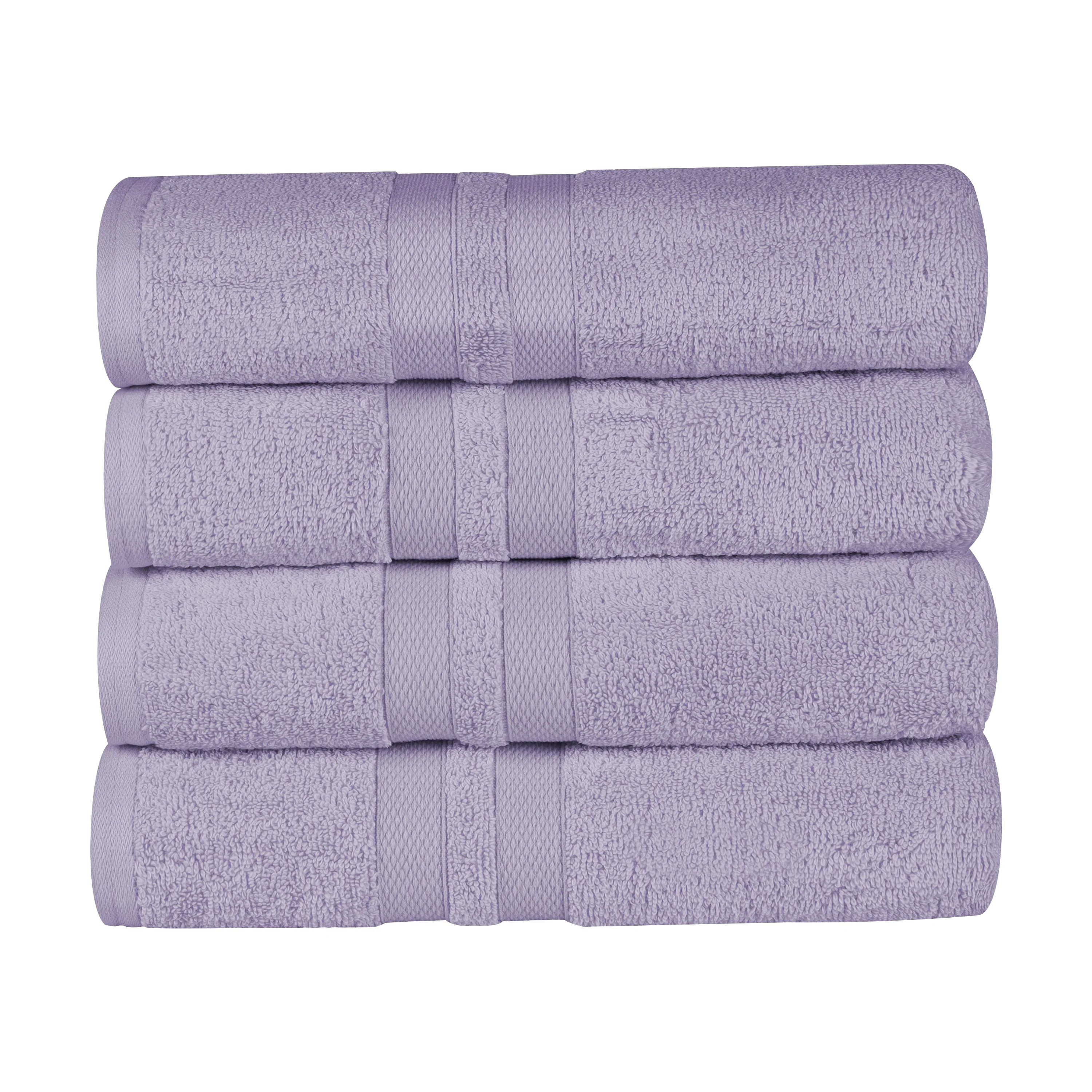 Spruce up your bathroom or shower space with our Gabouray 100% Ultra Soft Cotton and medium weight Quick-Drying 4-Piece Solid Bath Towel Set. This premium 100% Ultra Soft Cotton construction boasts a medium towel weight, making each bath towel thick and highly absorbent to keep you warm and get you dry quickly. Enjoy spa-worthy towels at home with these fluffy towels that will sop up moisture effortlessly, keeping you toasty warm as soon as you step out of the shower or bath. Each towel features a delicate geometric dobby border in a range of festive color options to bring rich texture and style to any master or guest bath.