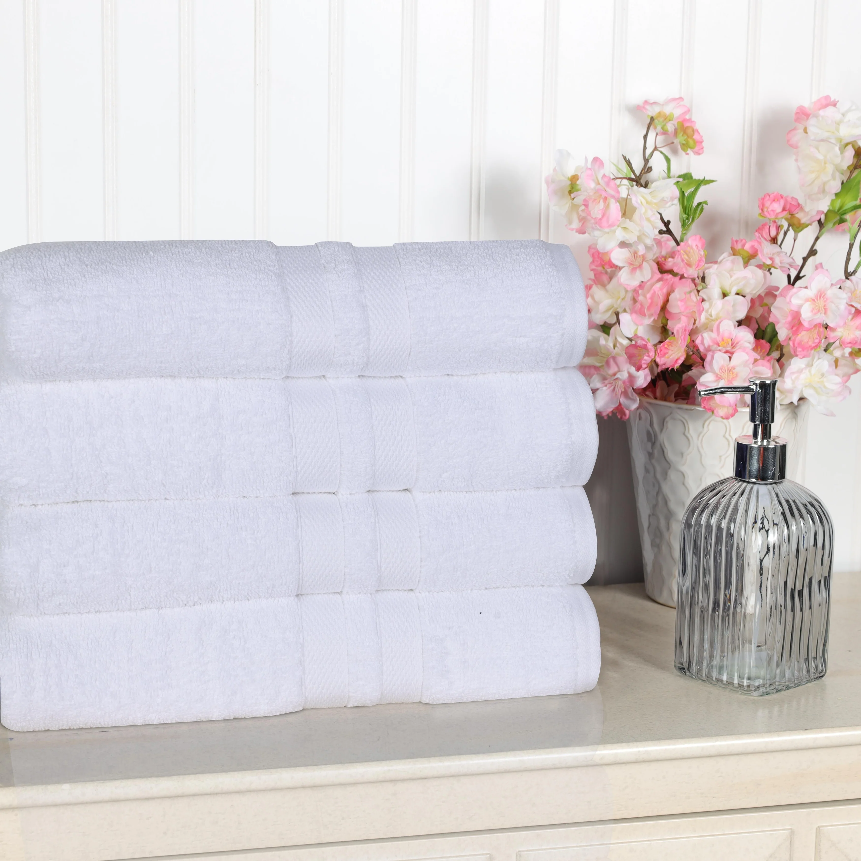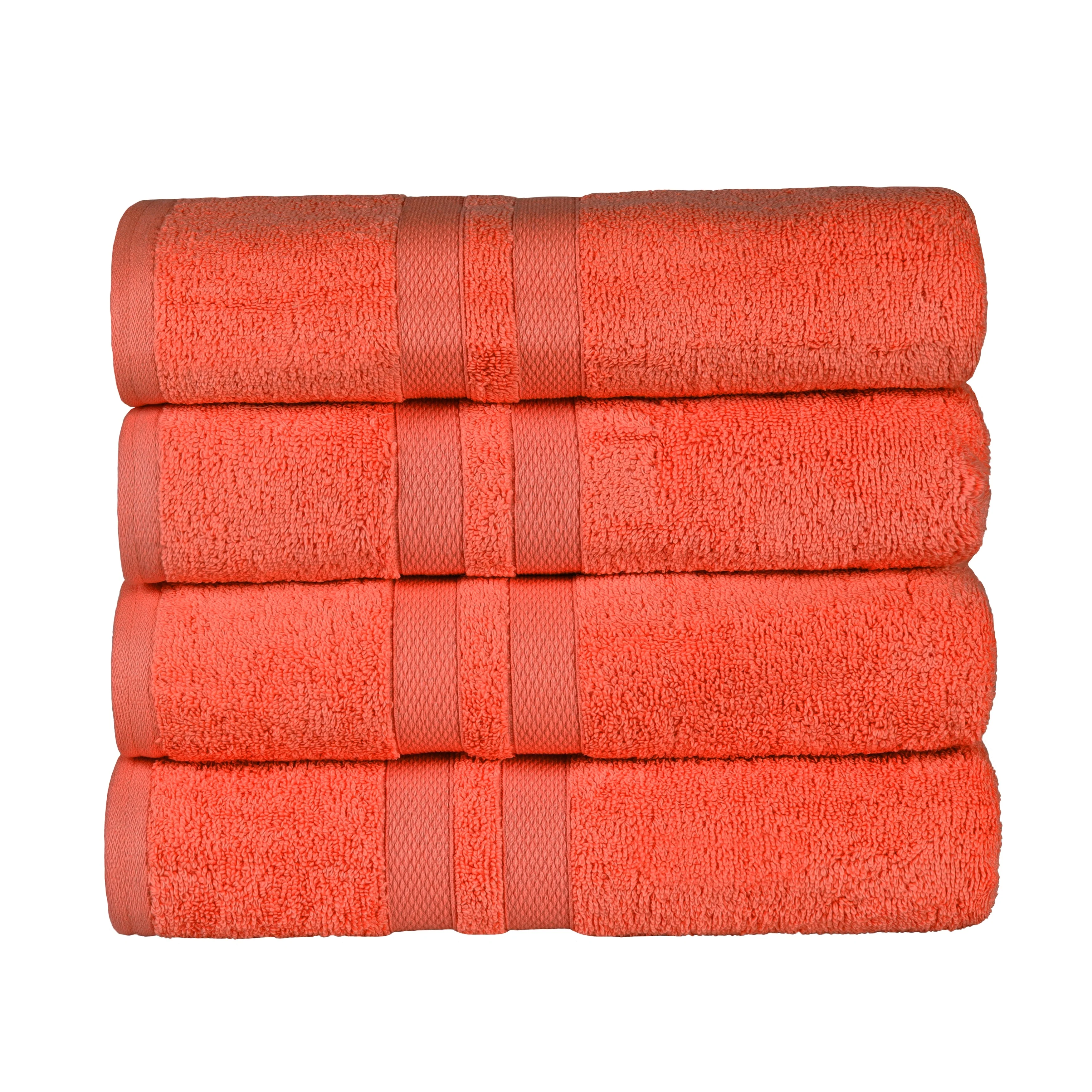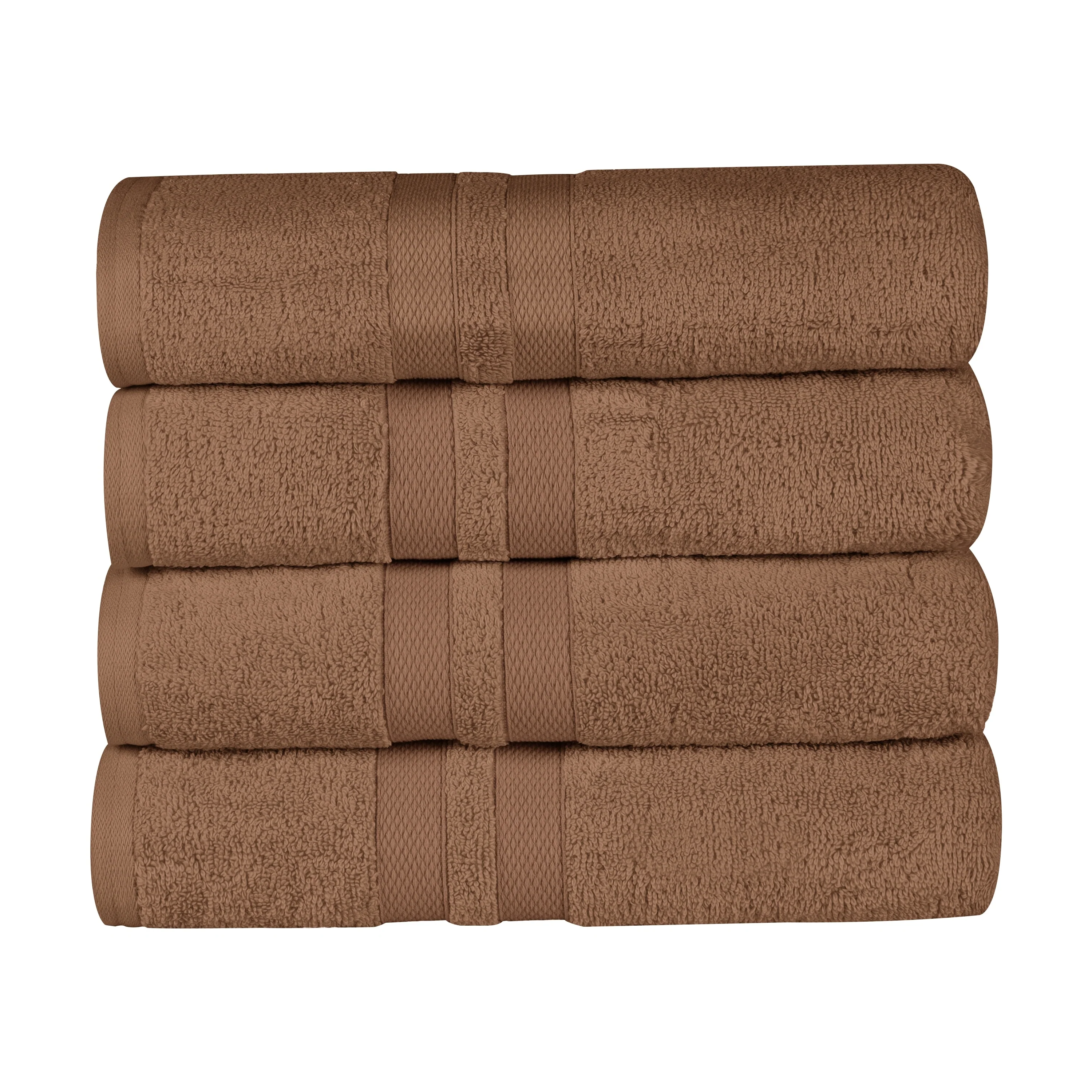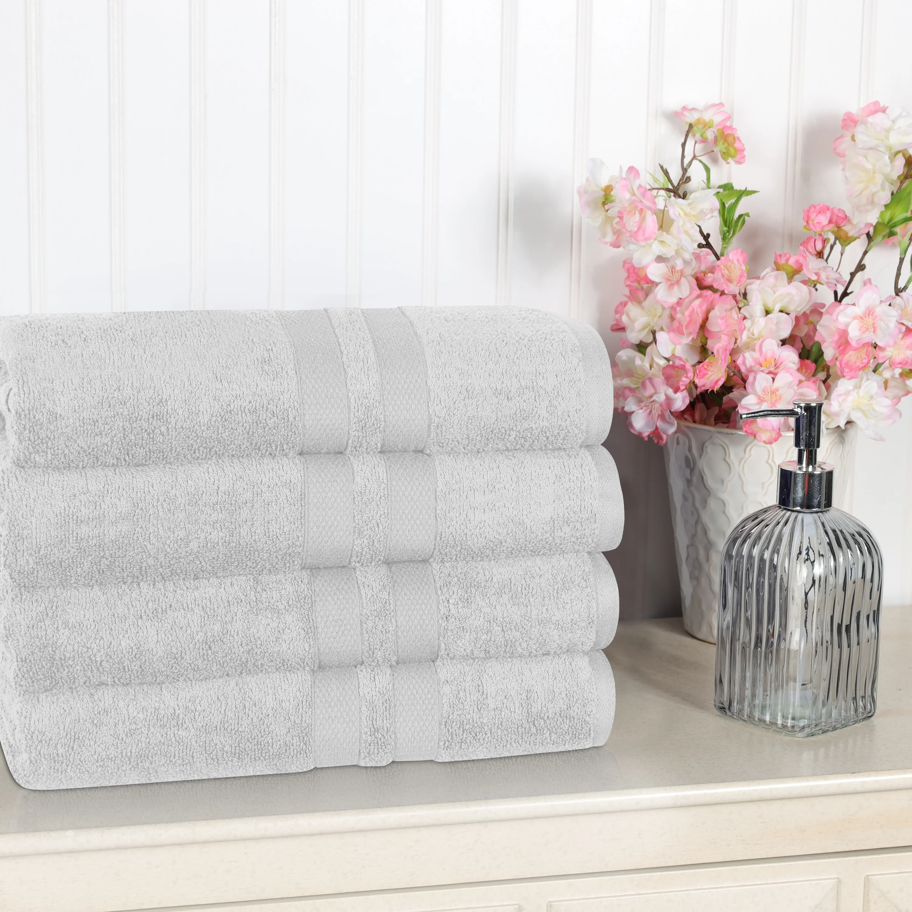 Spruce up your bathroom or shower space with our Gabouray 100% Ultra Soft Cotton and medium weight Quick-Drying 4-Piece Solid Bath Towel Set. This premium 100% Ultra Soft Cotton construction boasts a medium towel weight, making each bath towel thick and highly absorbent to keep you warm and get you dry quickly. Enjoy spa-worthy towels at home with these fluffy towels that will sop up moisture effortlessly, keeping you toasty warm as soon as you step out of the shower or bath. Each towel features a delicate geometric dobby border in a range of festive color options to bring rich texture and style to any master or guest bath.