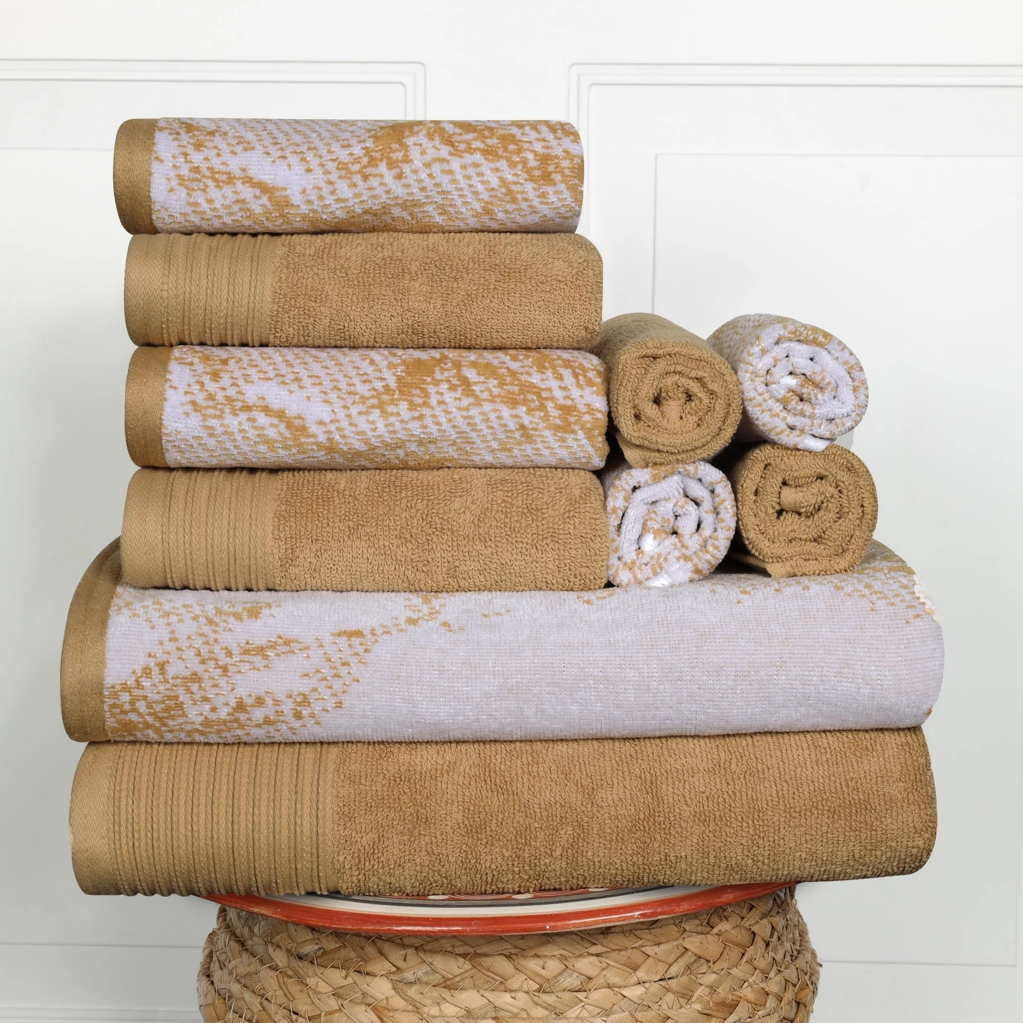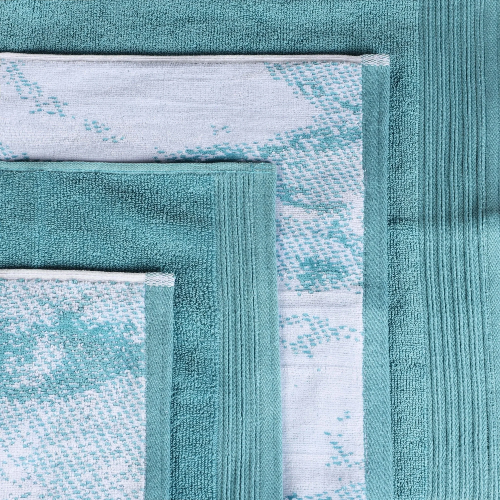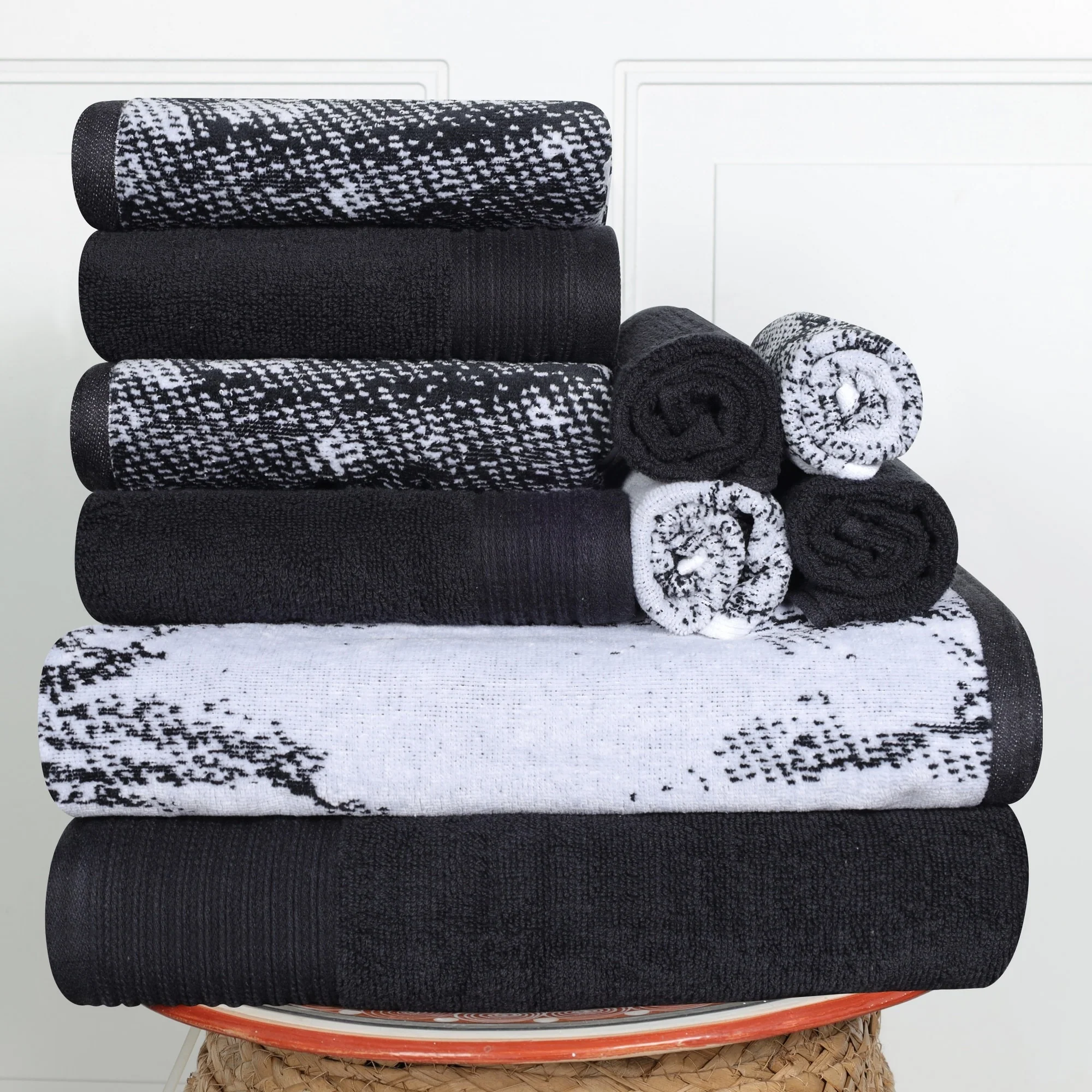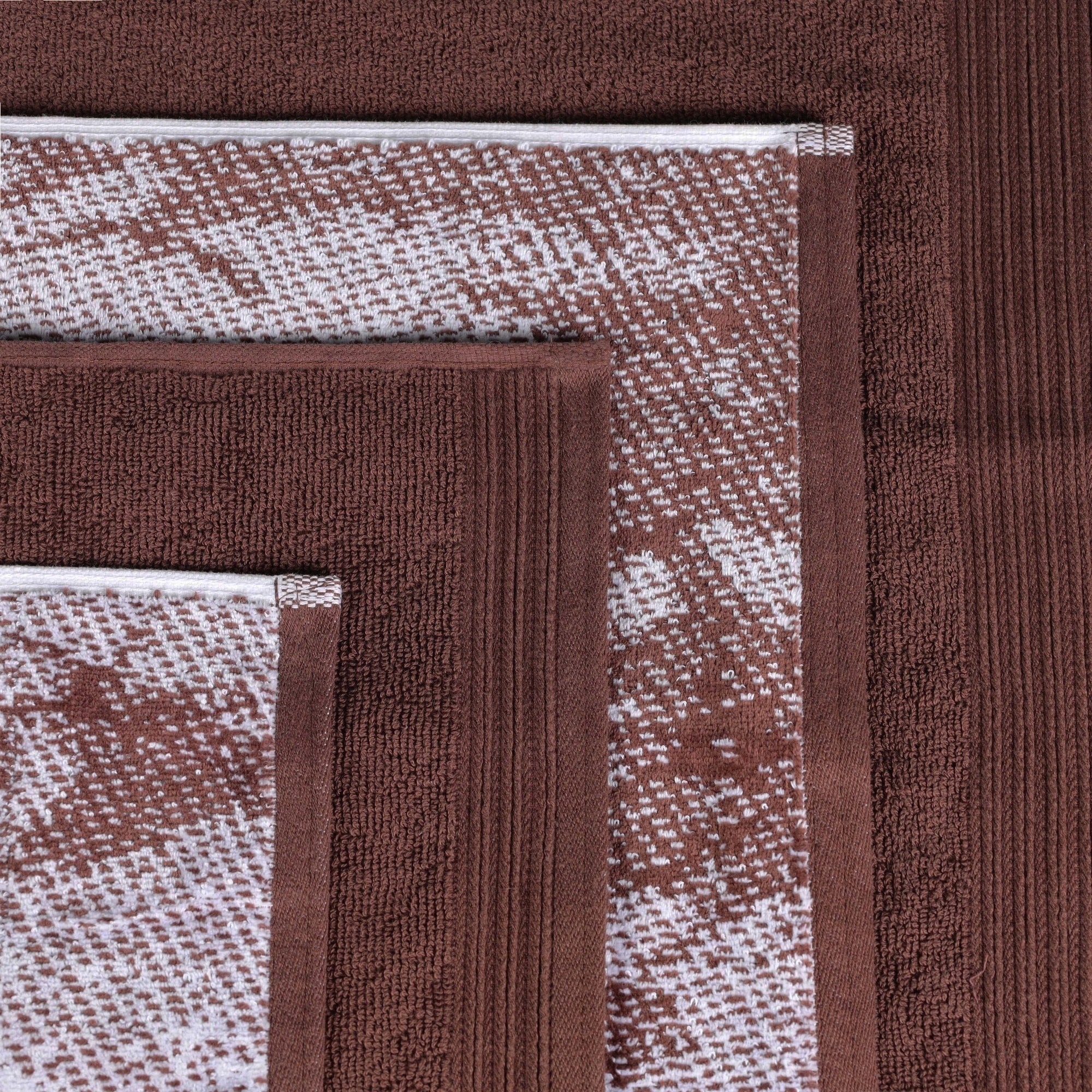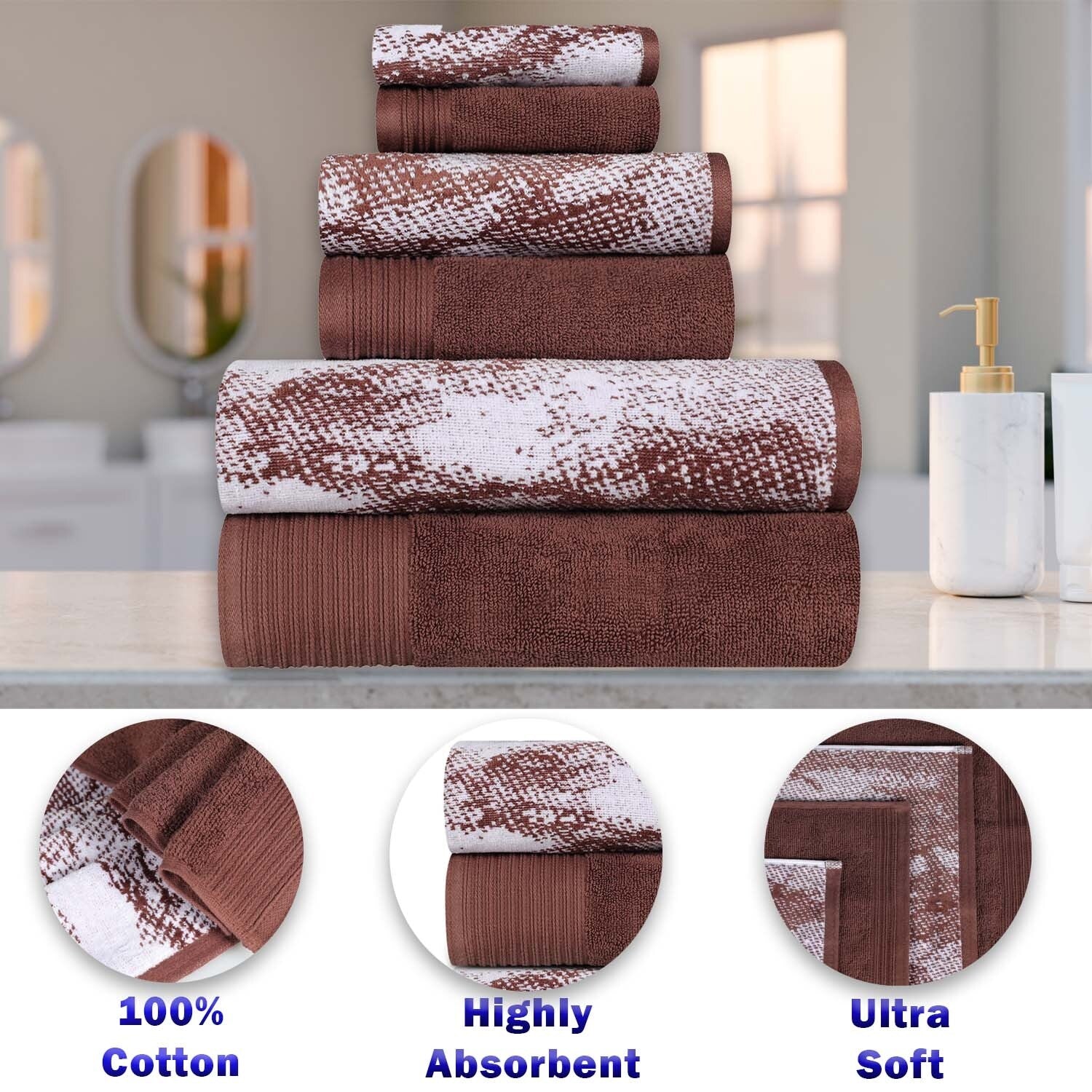 Indulge in the relaxing comfort of the Superior Cotton Quick-Drying Solid and Marble Towel Set each time you step out of the shower or bath. Our medium weight cotton towels have a double-ply design to provide comfort, durability, and versatile absorption. These plush and fluffy towels will sop up moisture effortlessly, keeping you warm and dry. This bath, hand, and face towel set includes a mix of vibrant solid pattern towels and towels with a contemporary marble effect pattern. Finished with a broad 4 inch rope-textured jacquard border and himmed edges, this towel set exudes elegance and luxury resort style. These striking towels come in a variety of colors, including; black, blue, brown, bronze, cyan, grey, terra cotta red, teal, and white to instantly update your bathroom decor.