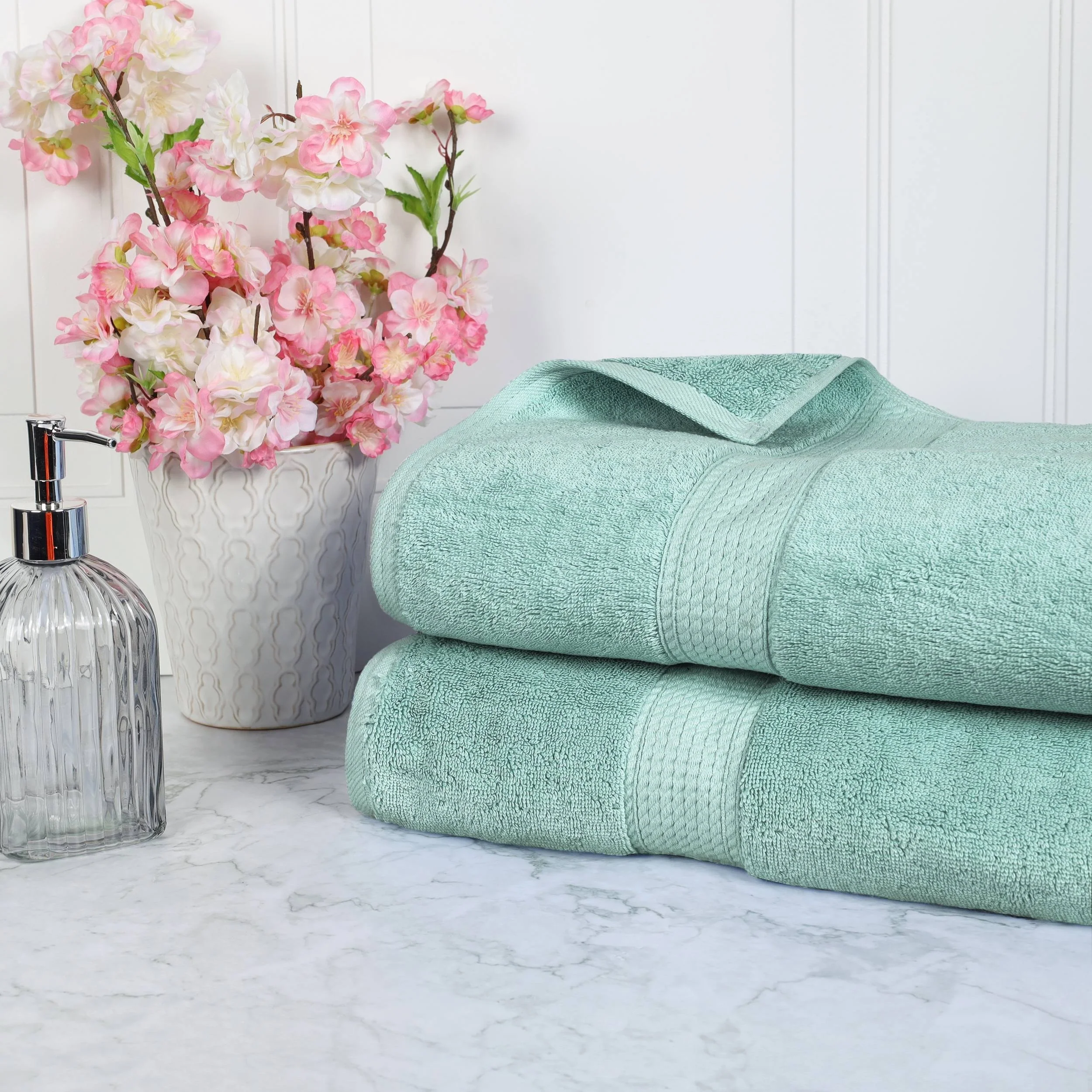 Create a resort-inspired bathroom with the Superior Egyptian Cotton Pile Bath Sheet Set. Our most luxurious Egyptian Cotton Pile bathing essentials feature a heavyweight thickness to keep you warm and dry quickly. Each piece in this oversized, plush and fluffy set absorbs moisture effortlessly, keeping you cozy as soon as you step out of the shower or bath. Pamper yourself, or reserve this set for guests, while adding a modern flourish to any master bath, powder room, or guest bath. The attached hanging loop allows you to easily hang your towel for quick drying and utmost convenience.