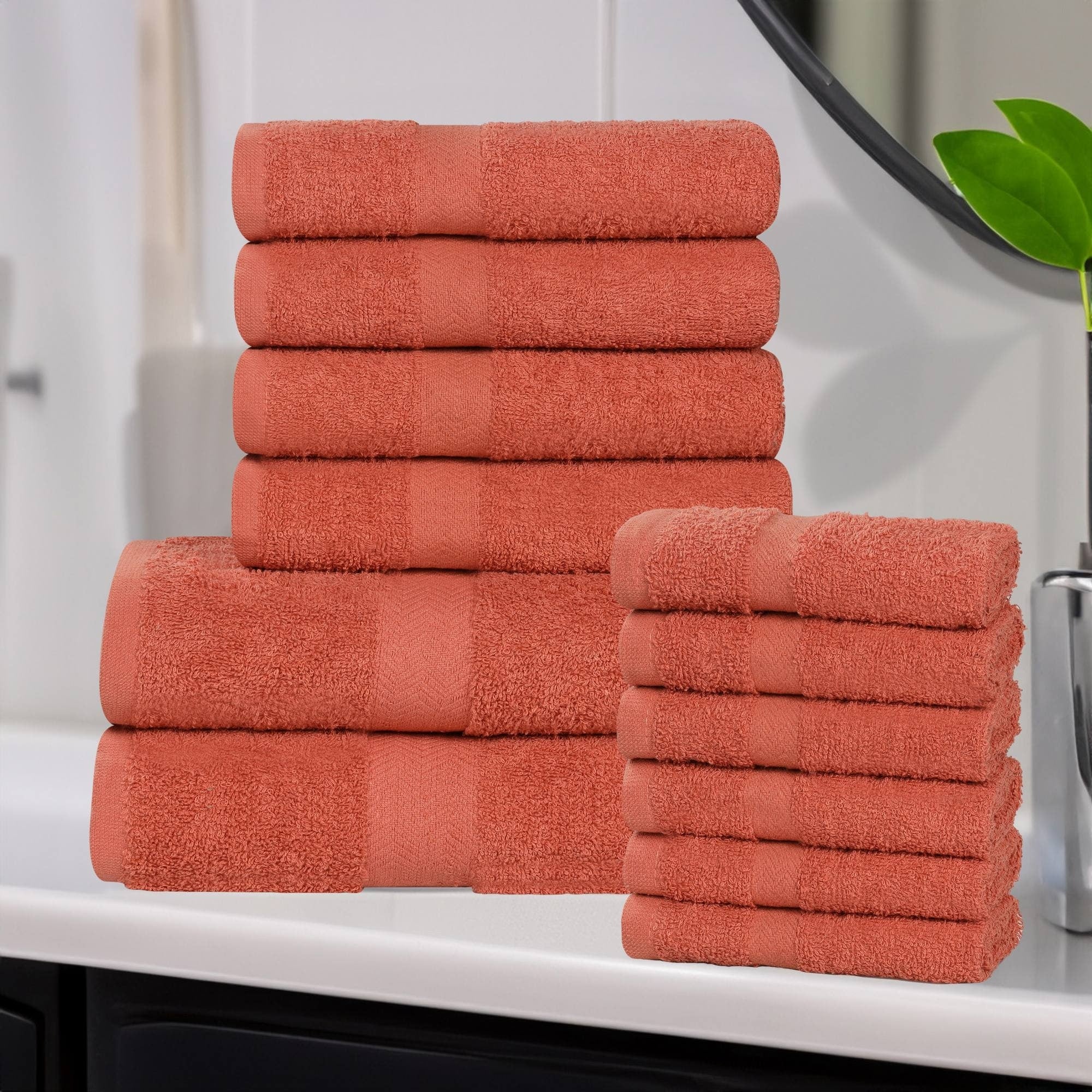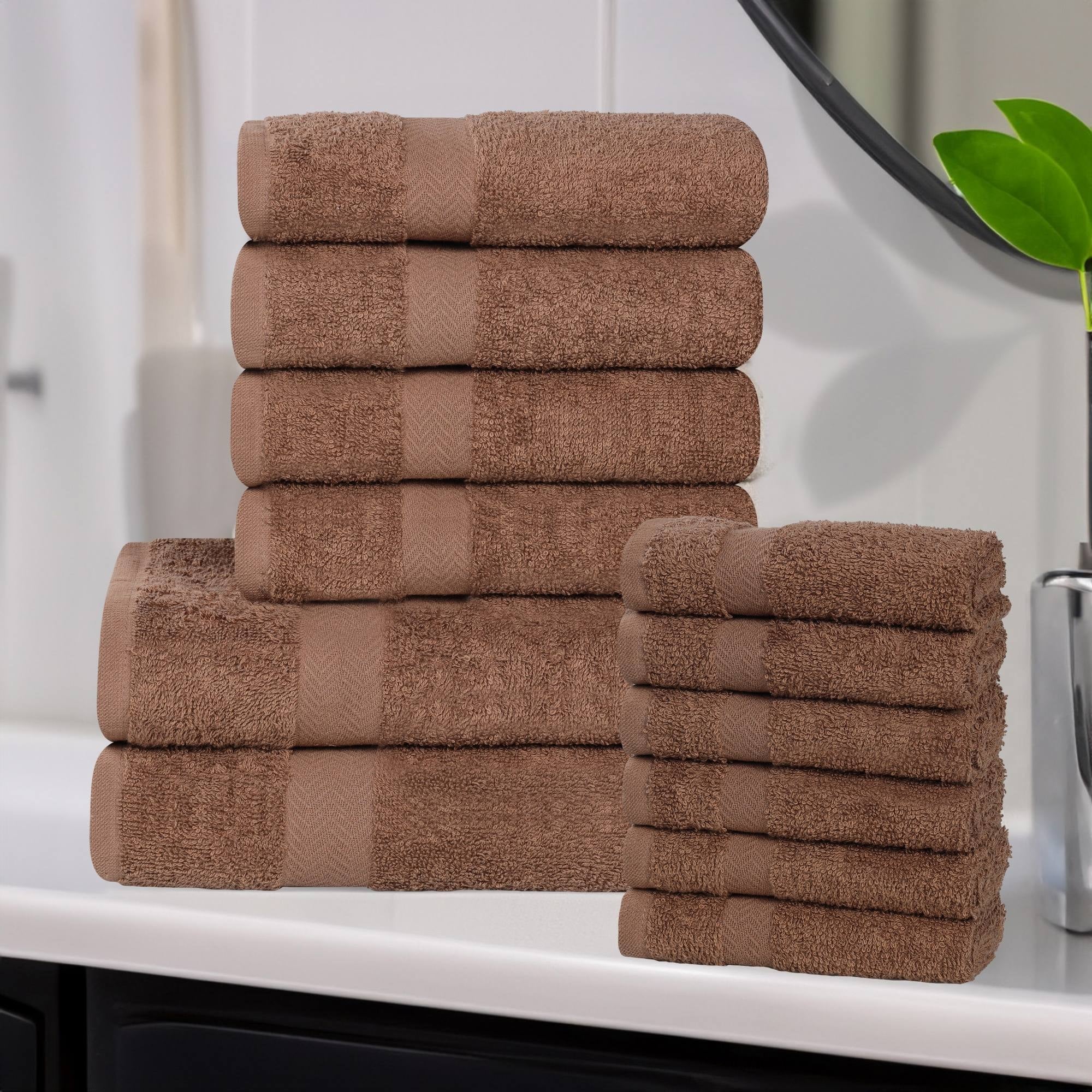 Elevate your bathroom decor and enhance your home with the Superior Franklin 12-Piece Towel Set. This stylish and practical collection features a bold solid color beautifully accented by a contemporary chunky chevron border, instantly adding a touch of modern elegance to your space. Crafted for everyday convenience, these towels are lightweight, thin, and quick-drying, making them a versatile addition to your bathroom routine. Soft to the touch and designed for lasting durability through numerous washes, they are also convenient for light use beyond the bath, such as at the home gym or for quick cleanups. While prioritizing faster drying, this set offers reliable performance and comes in a variety of vibrant, eco-friendly dyed colors to seamlessly complement your unique home aesthetic, making them a smart and stylish essential for your linen closet.