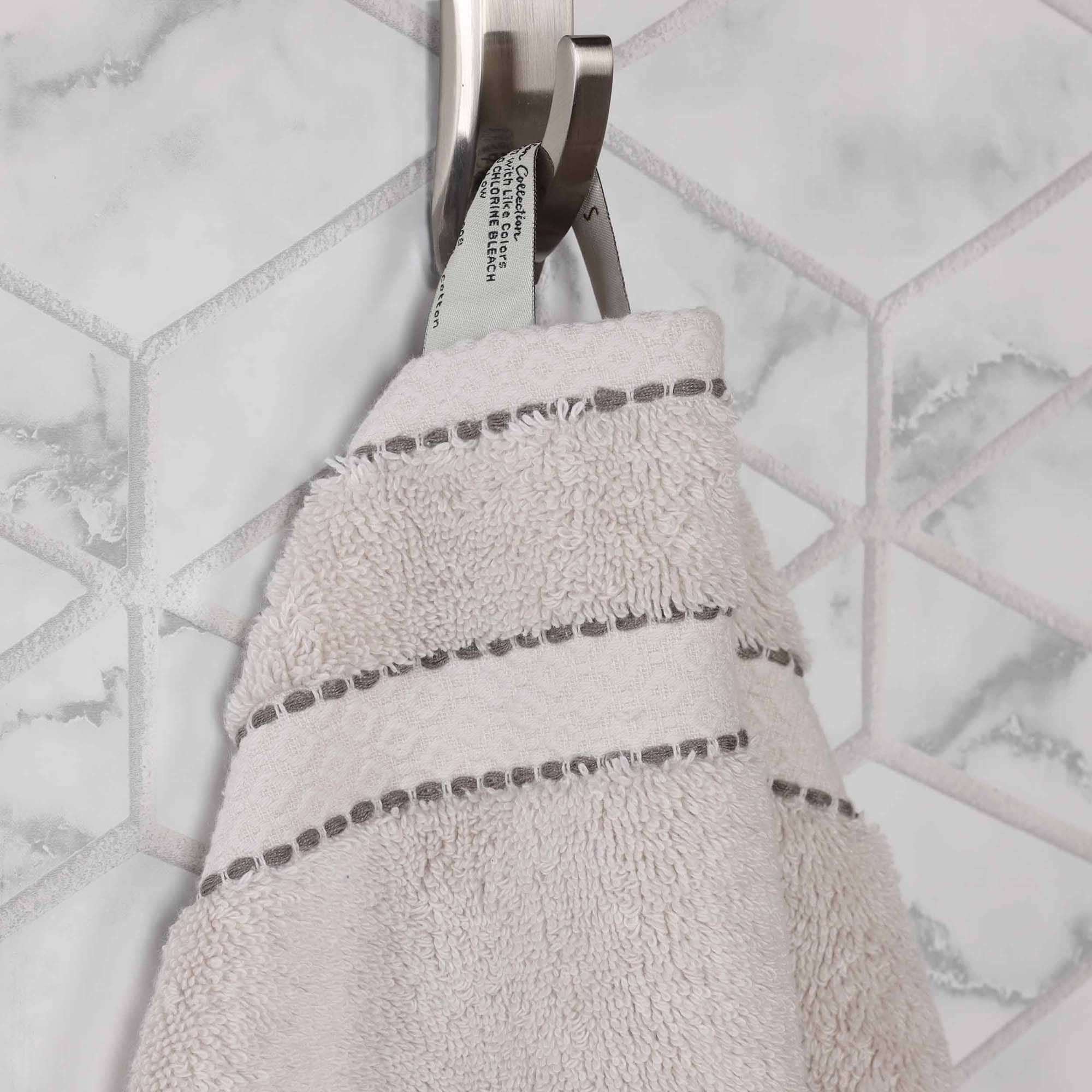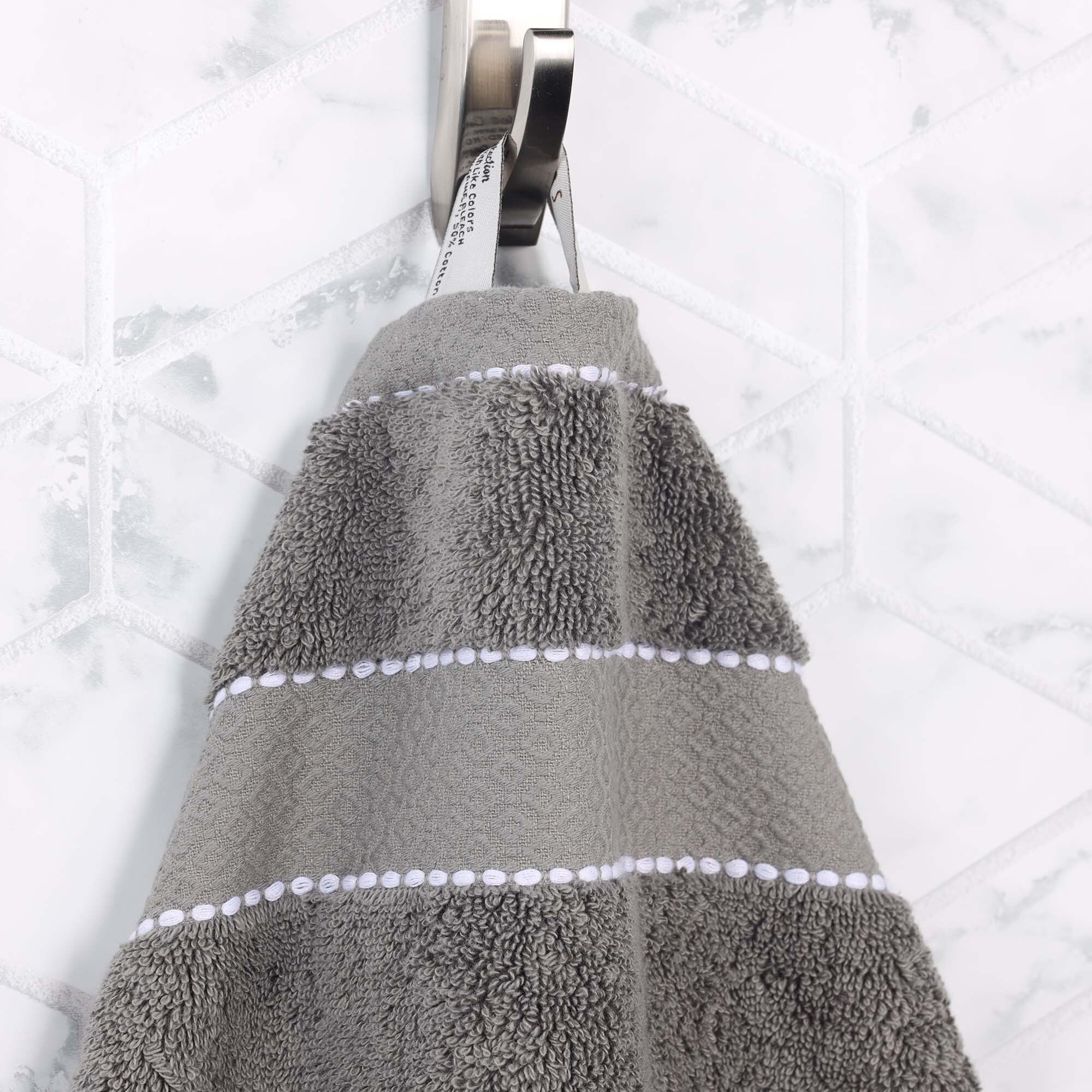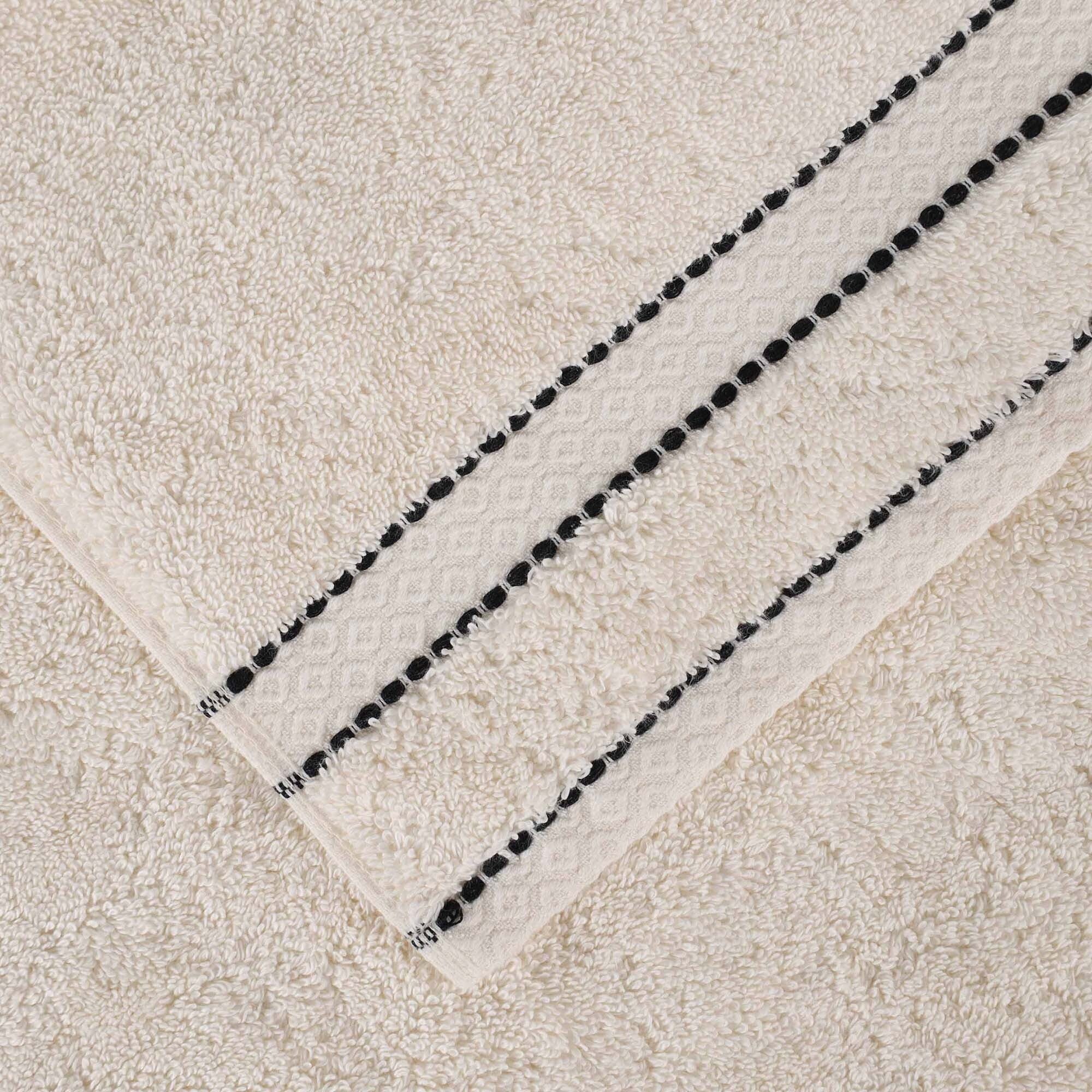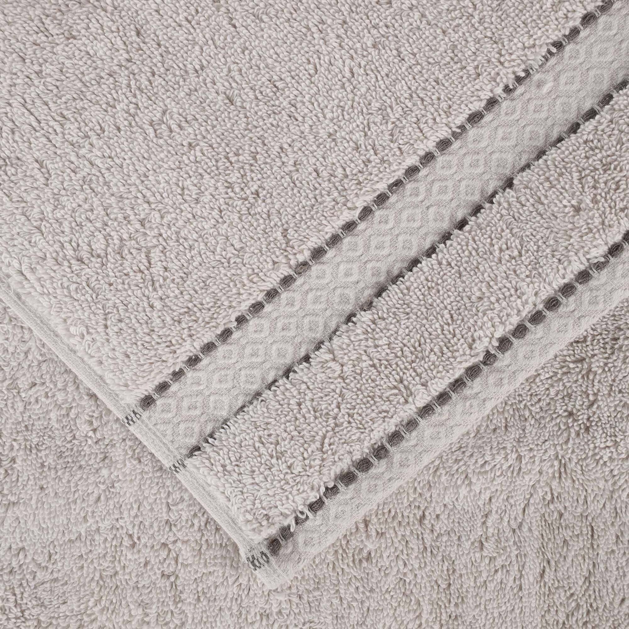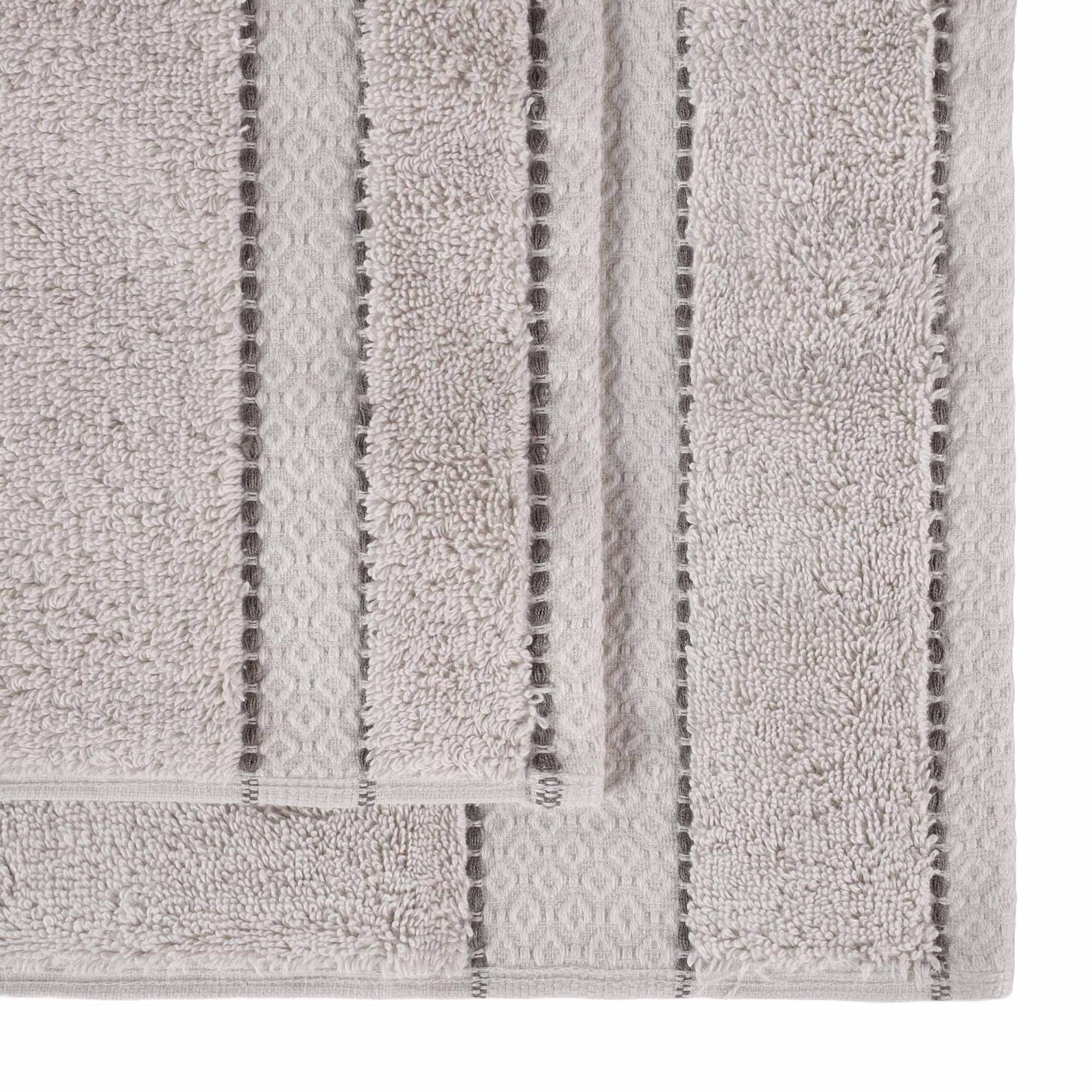 - Towels boast a diamond dobby border with a delicate white stitching for unique style