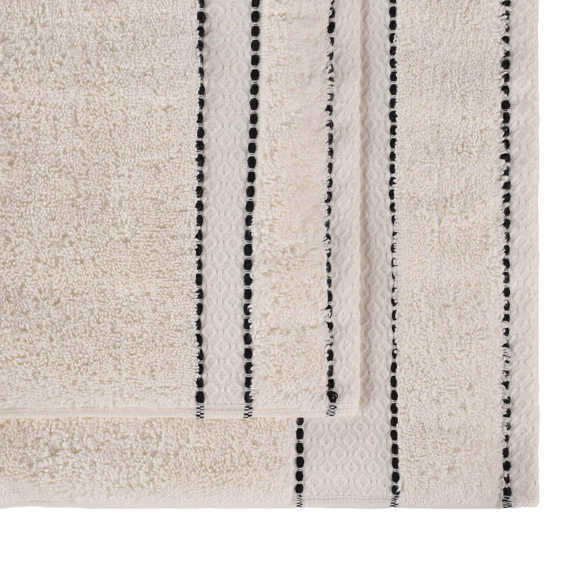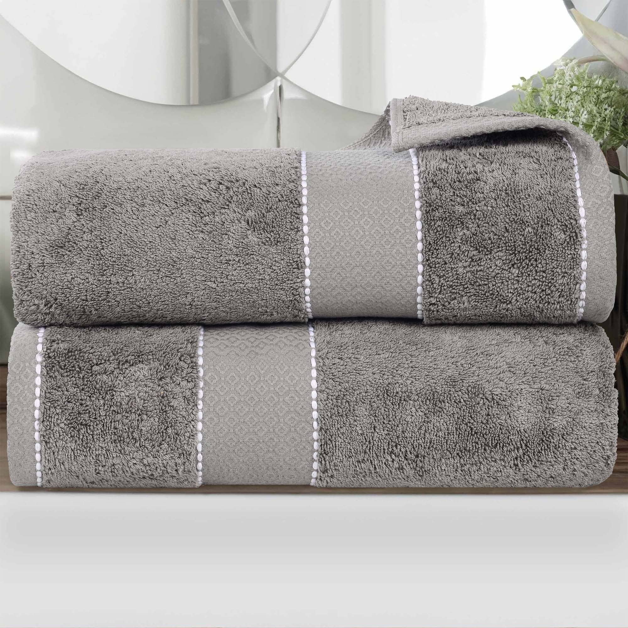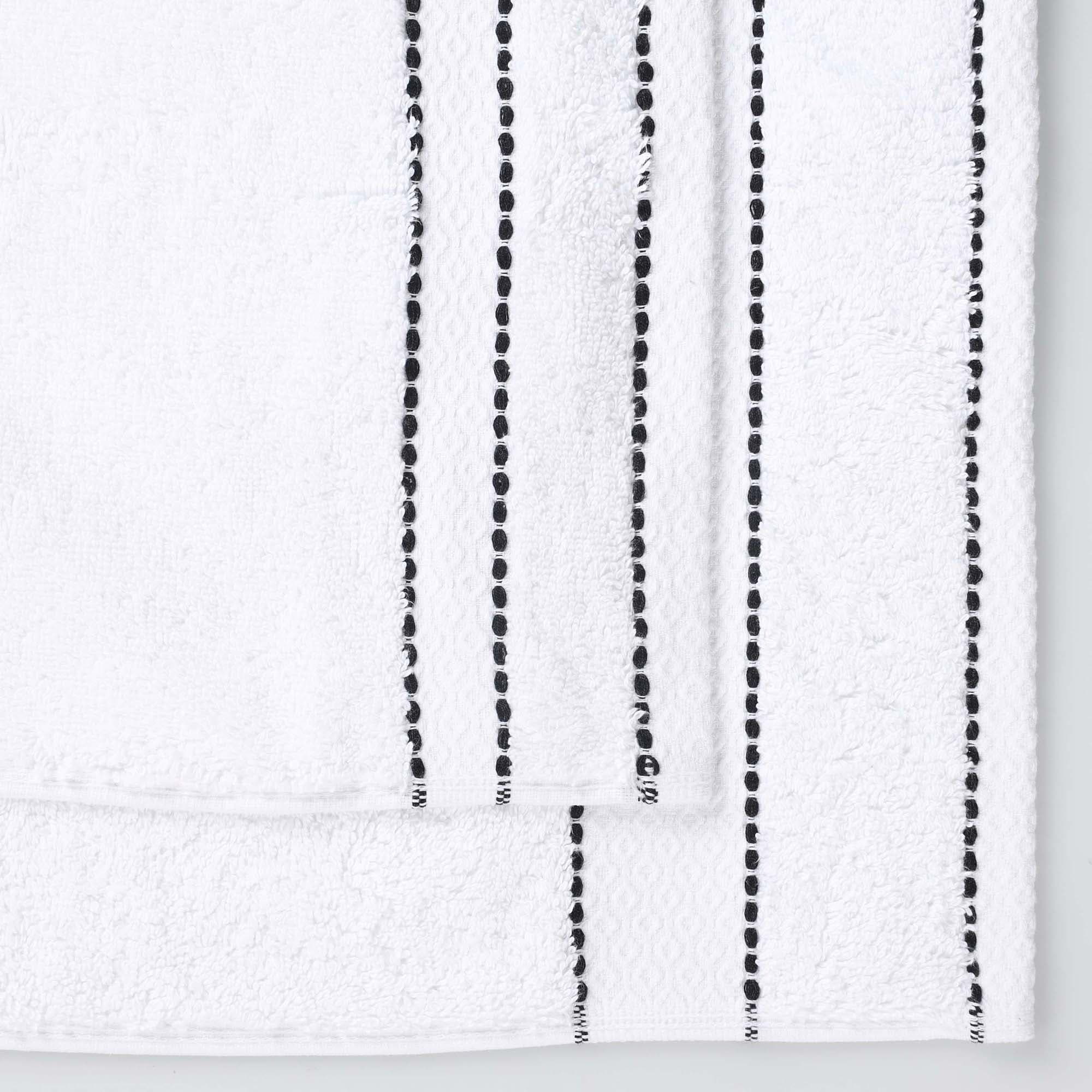 - Towels boast a diamond dobby border with a delicate white stitching for unique style