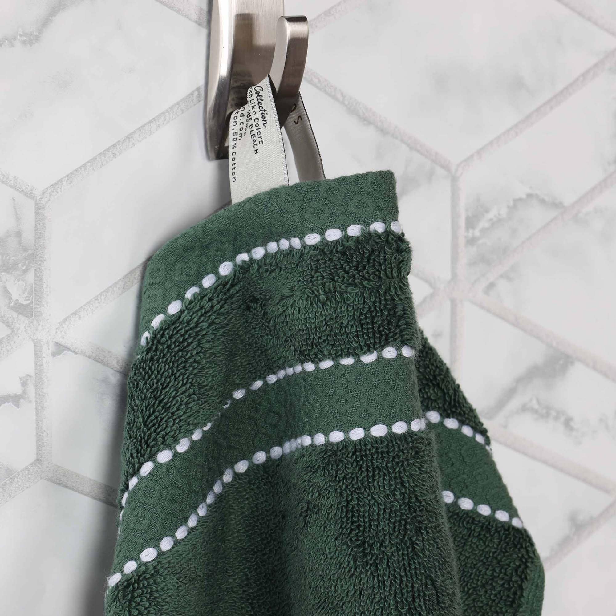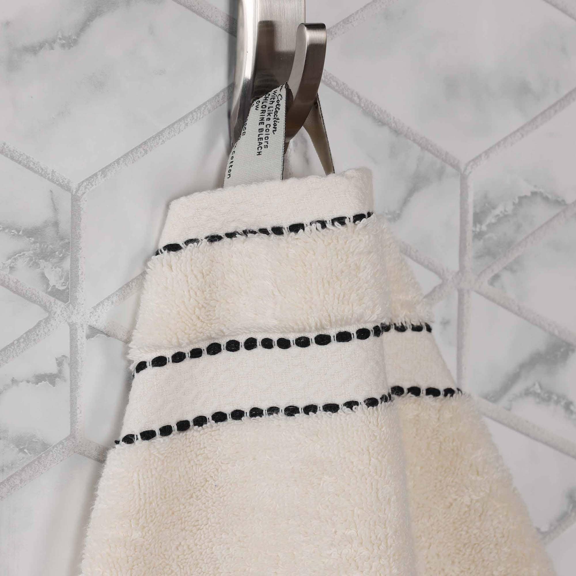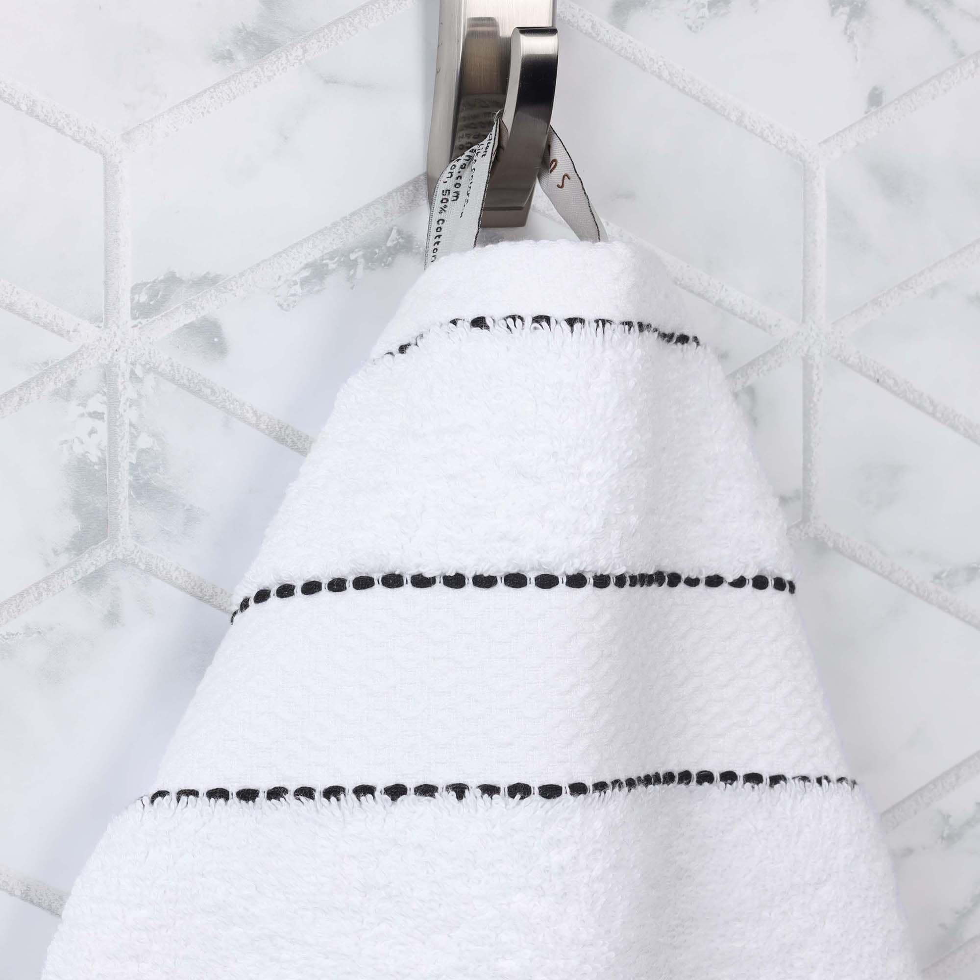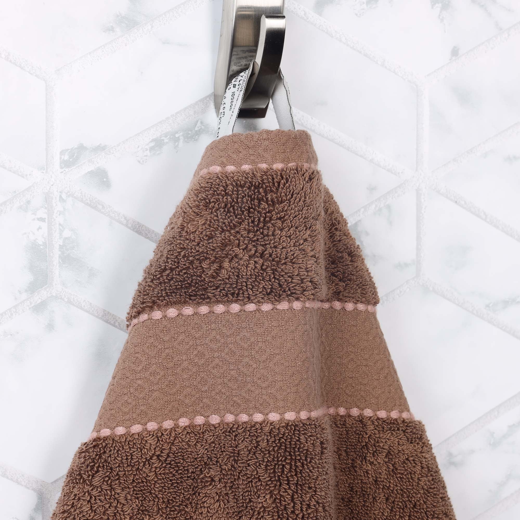 - Towels boast a diamond dobby border with a delicate white stitching for unique style
