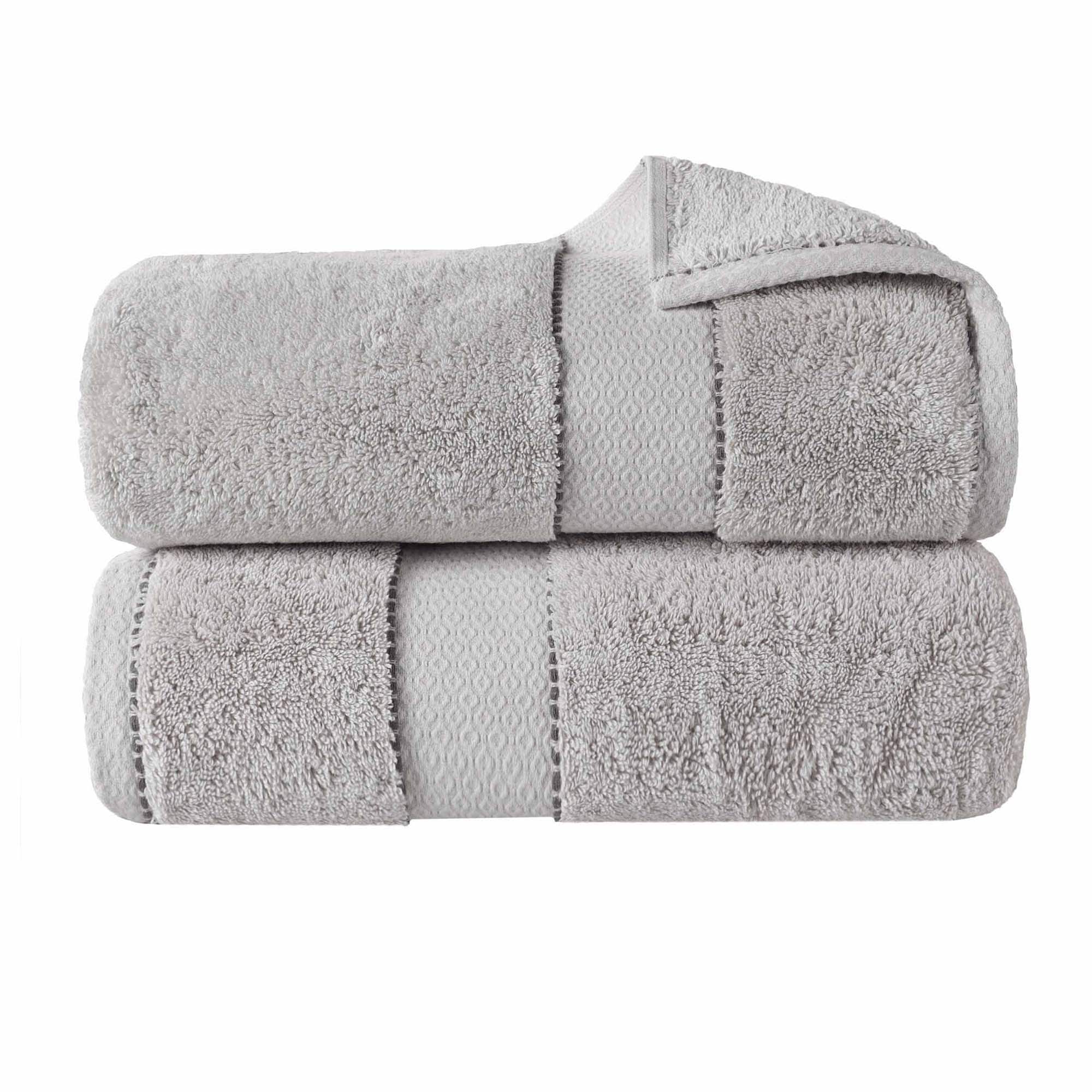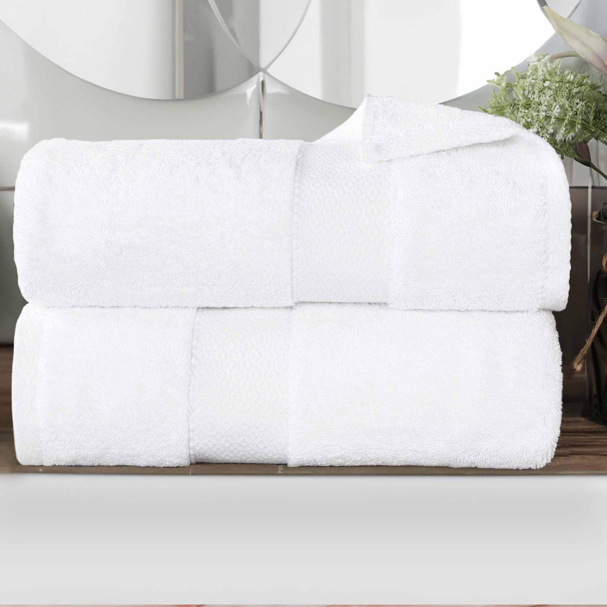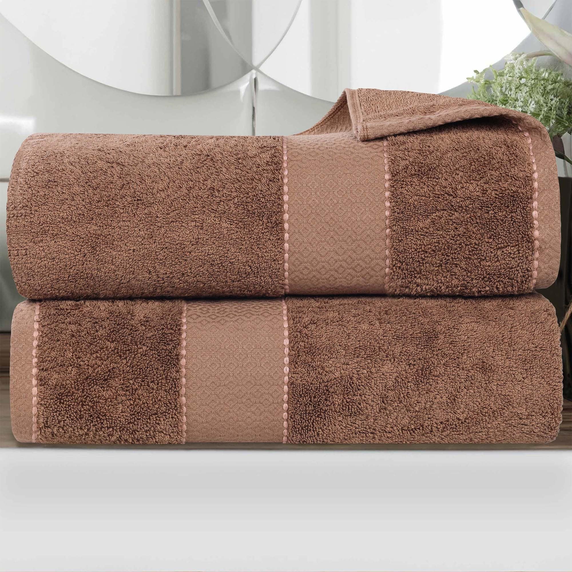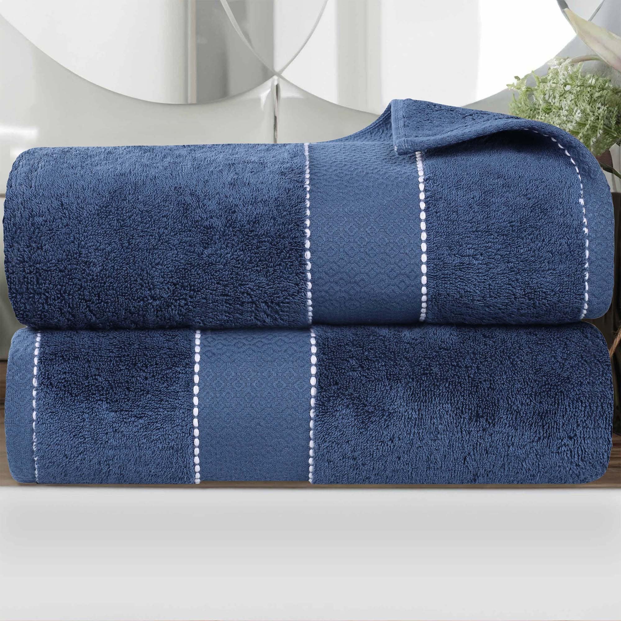 Make an elegant statement in your master bath with the Superior Niles Cotton Bath Sheet Set. Our Egypt produced Giza Cotton towels feature impressive absorbency, a smooth texture, and silky feel for a luxury spa-like experience at home. The heavyweight thickness of each towel is durable and perfect for the bath, poolside, or at the beach. For a refined finish, each piece in this bundle features an elegant diamond dobby border and a hanging loop for effortless drying. These towels are available in Navy Blue, Charcoal, Chocolate, White/Black, White, Ivory, Platinum, Gold, and Forest Green color options to match your bathroom decor style. Finished with secure hemmed edges to avoid fraying, these towels can withstand countless washes and last you years to come. This set includes 2 bath sheets to add luxury to your bathroom essentials.