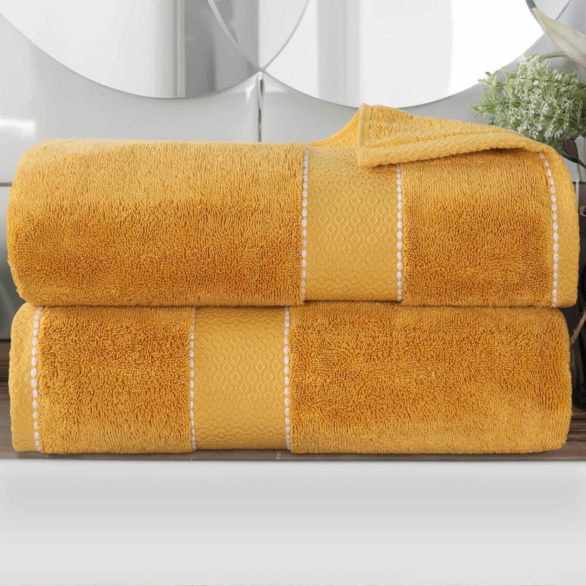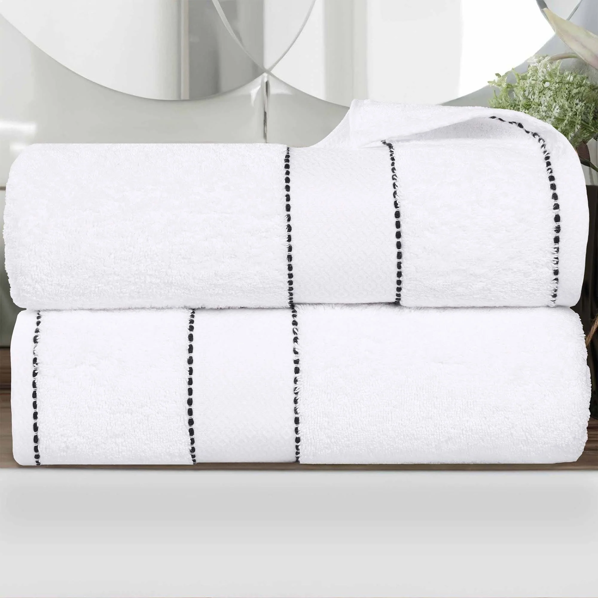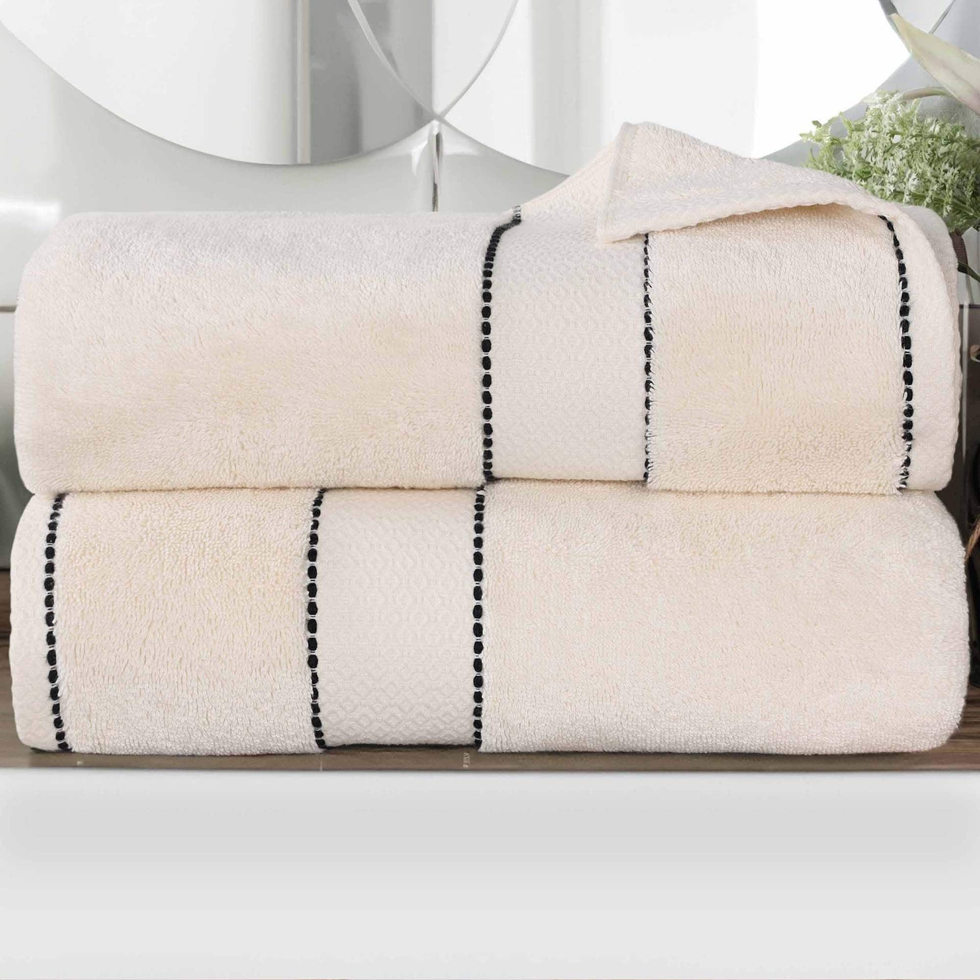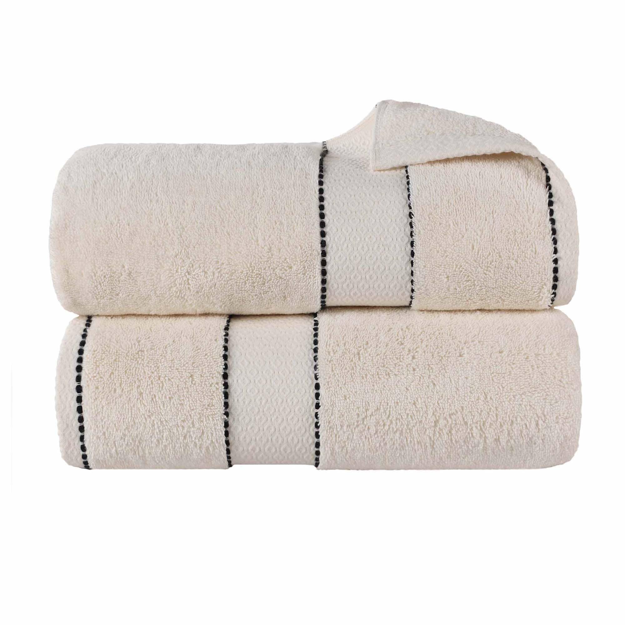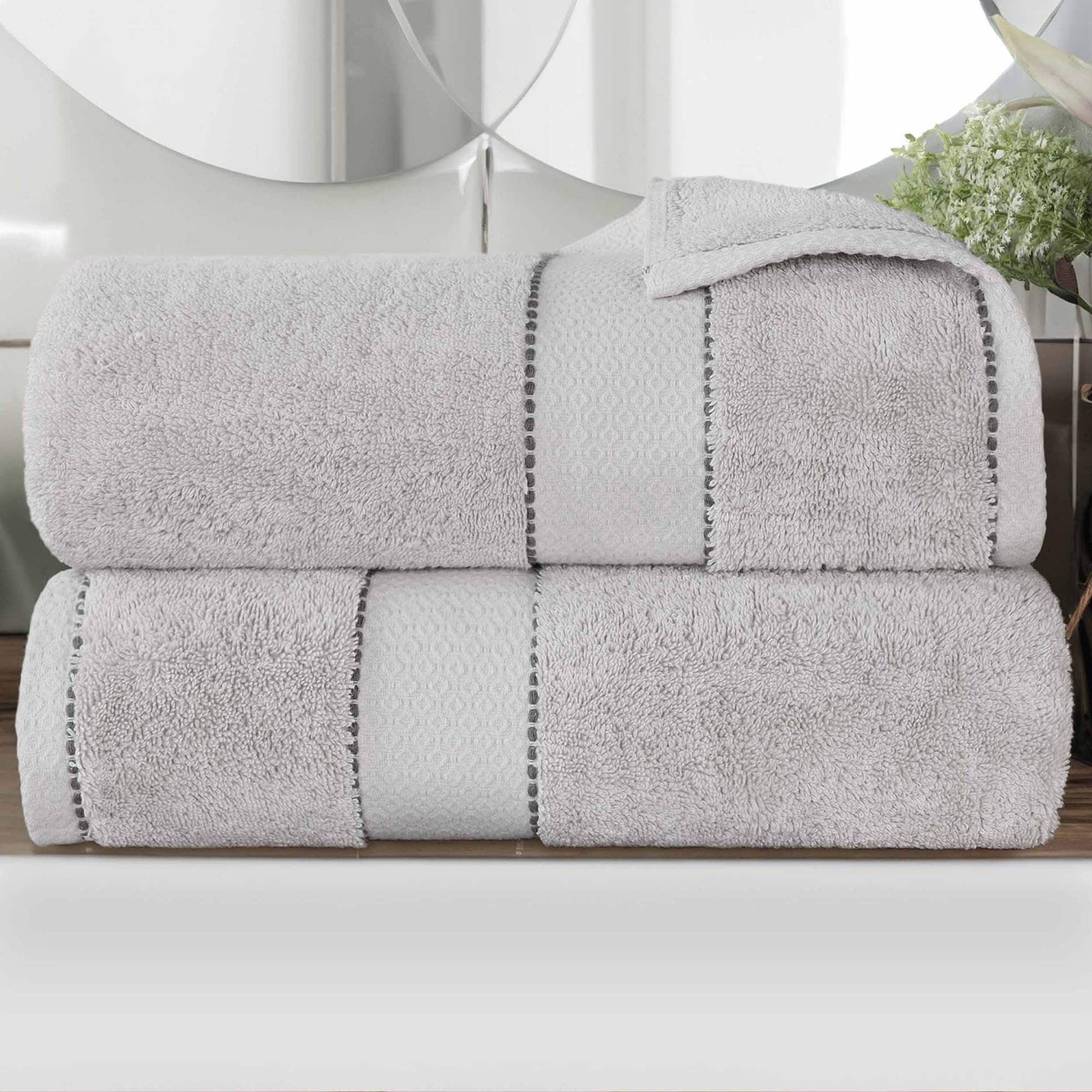Make an elegant statement in your master bath with the Superior Niles Cotton Bath Sheet Set. Our Egypt produced Giza Cotton towels feature impressive absorbency, a smooth texture, and silky feel for a luxury spa-like experience at home. The heavyweight thickness of each towel is durable and perfect for the bath, poolside, or at the beach. For a refined finish, each piece in this bundle features an elegant diamond dobby border and a hanging loop for effortless drying. These towels are available in Navy Blue, Charcoal, Chocolate, White/Black, White, Ivory, Platinum, Gold, and Forest Green color options to match your bathroom decor style. Finished with secure hemmed edges to avoid fraying, these towels can withstand countless washes and last you years to come. This set includes 2 bath sheets to add luxury to your bathroom essentials.