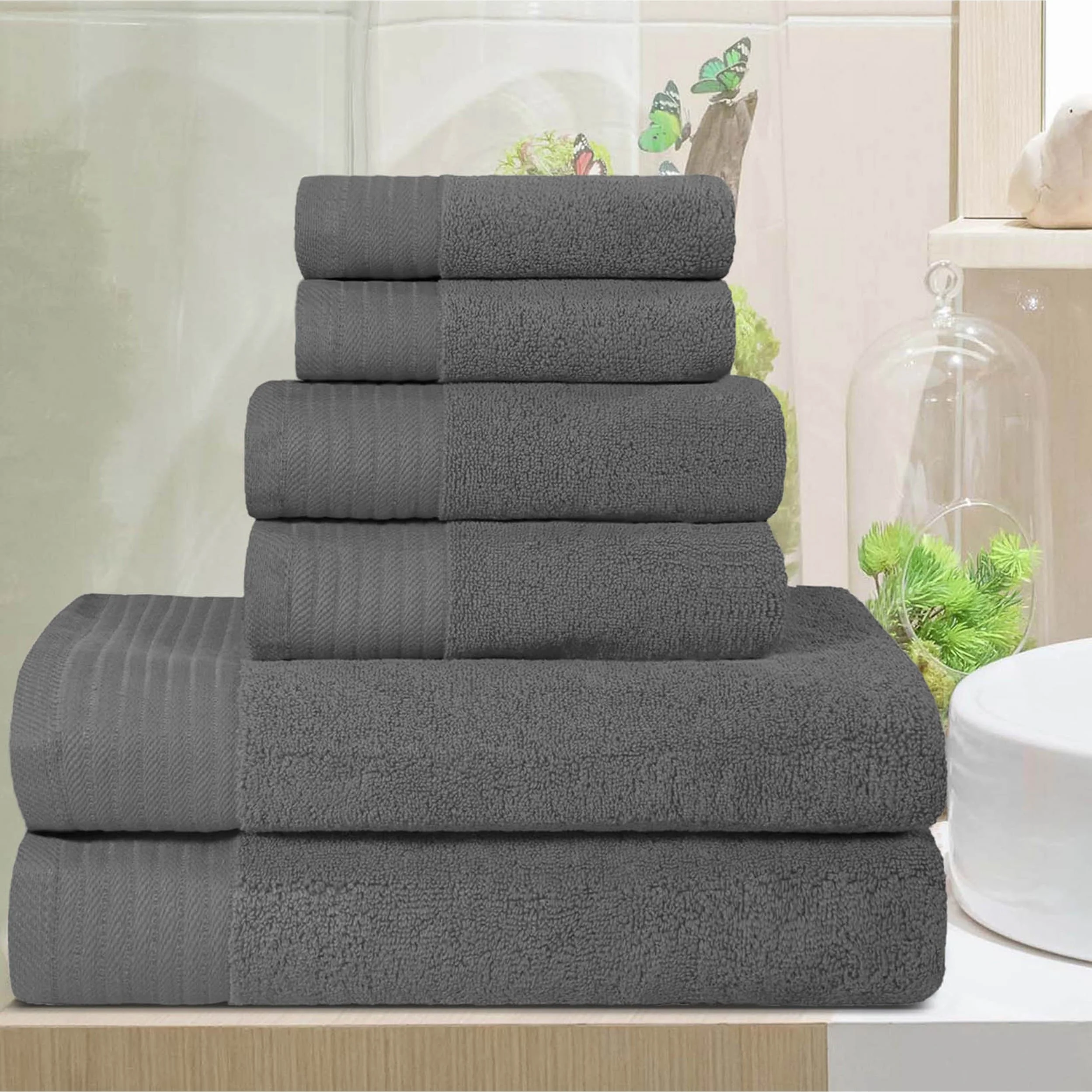 - Includes: 2 bath towels, 2 hand towels, and 2 face towels/ washcloths�