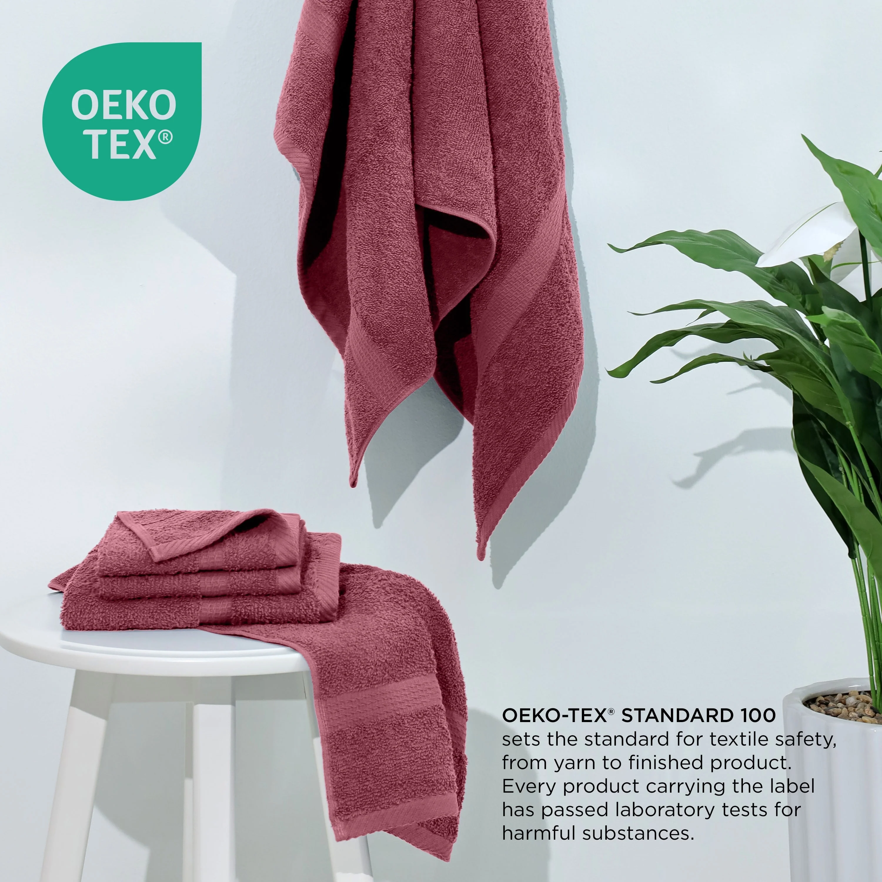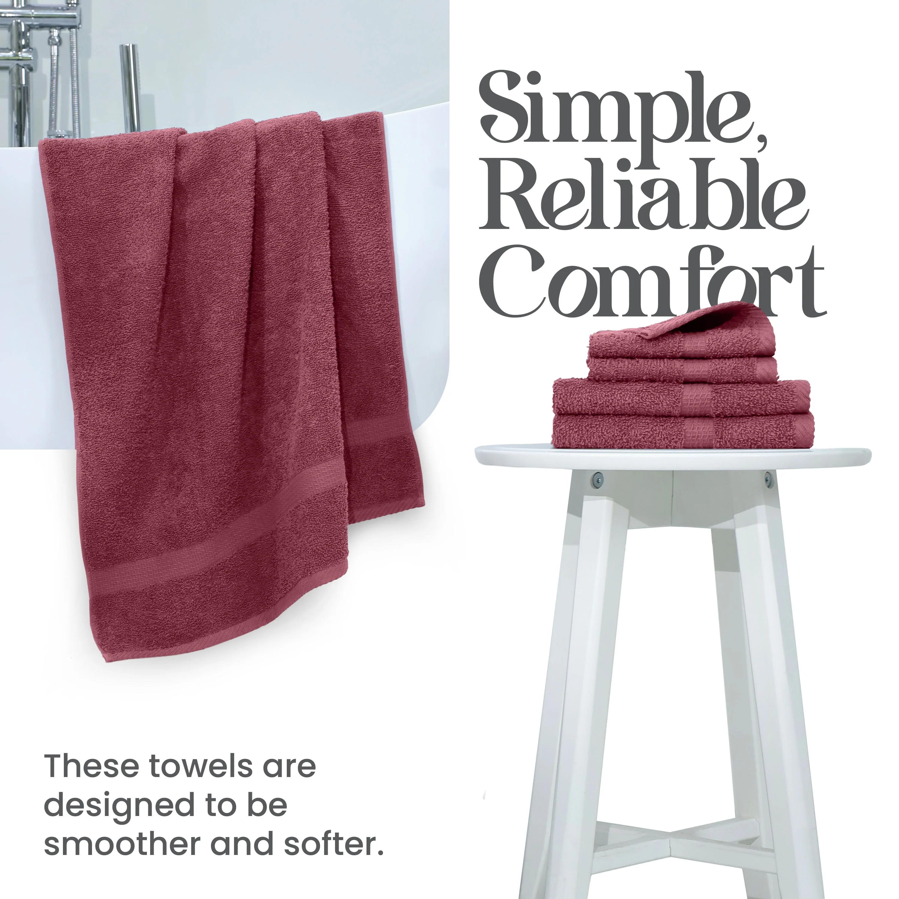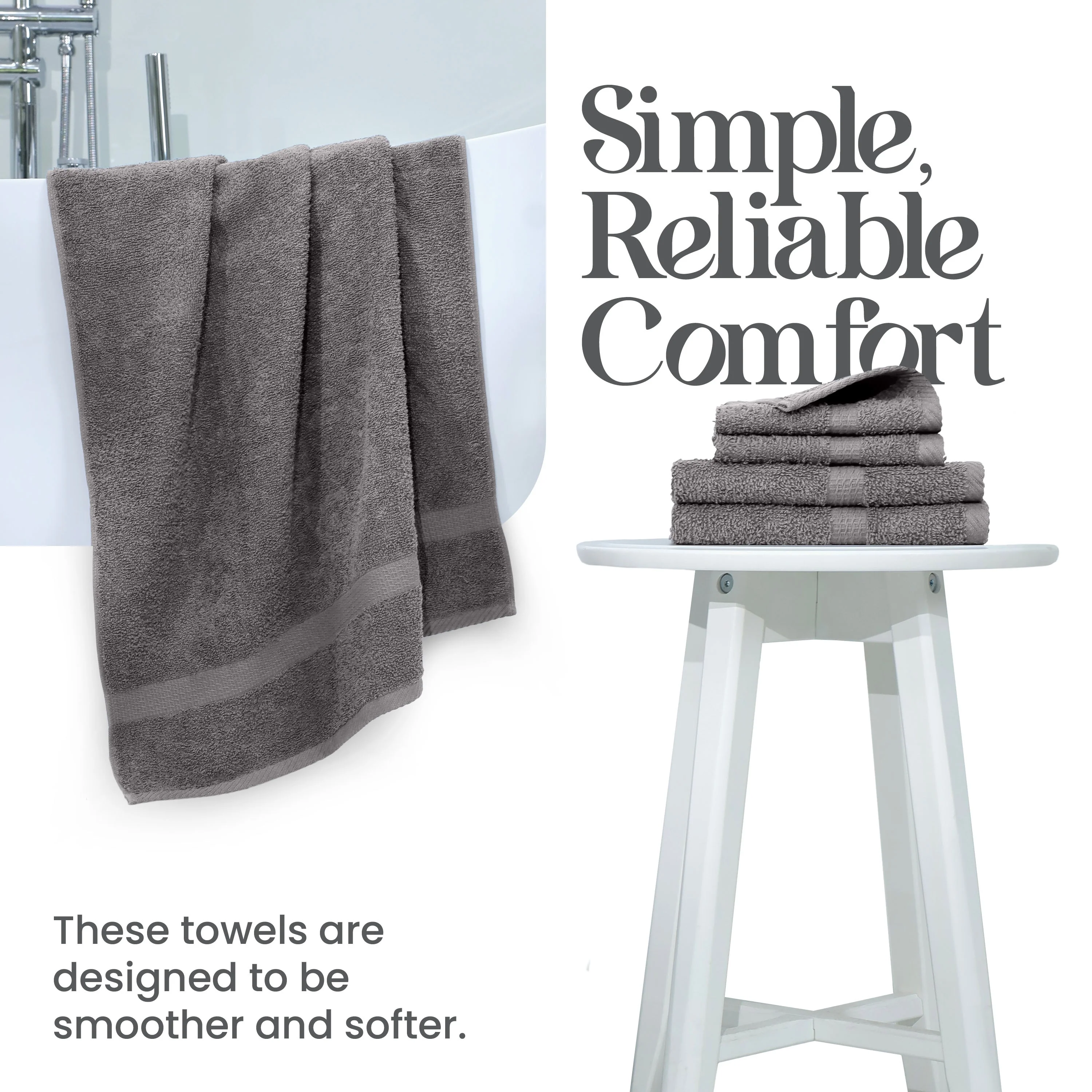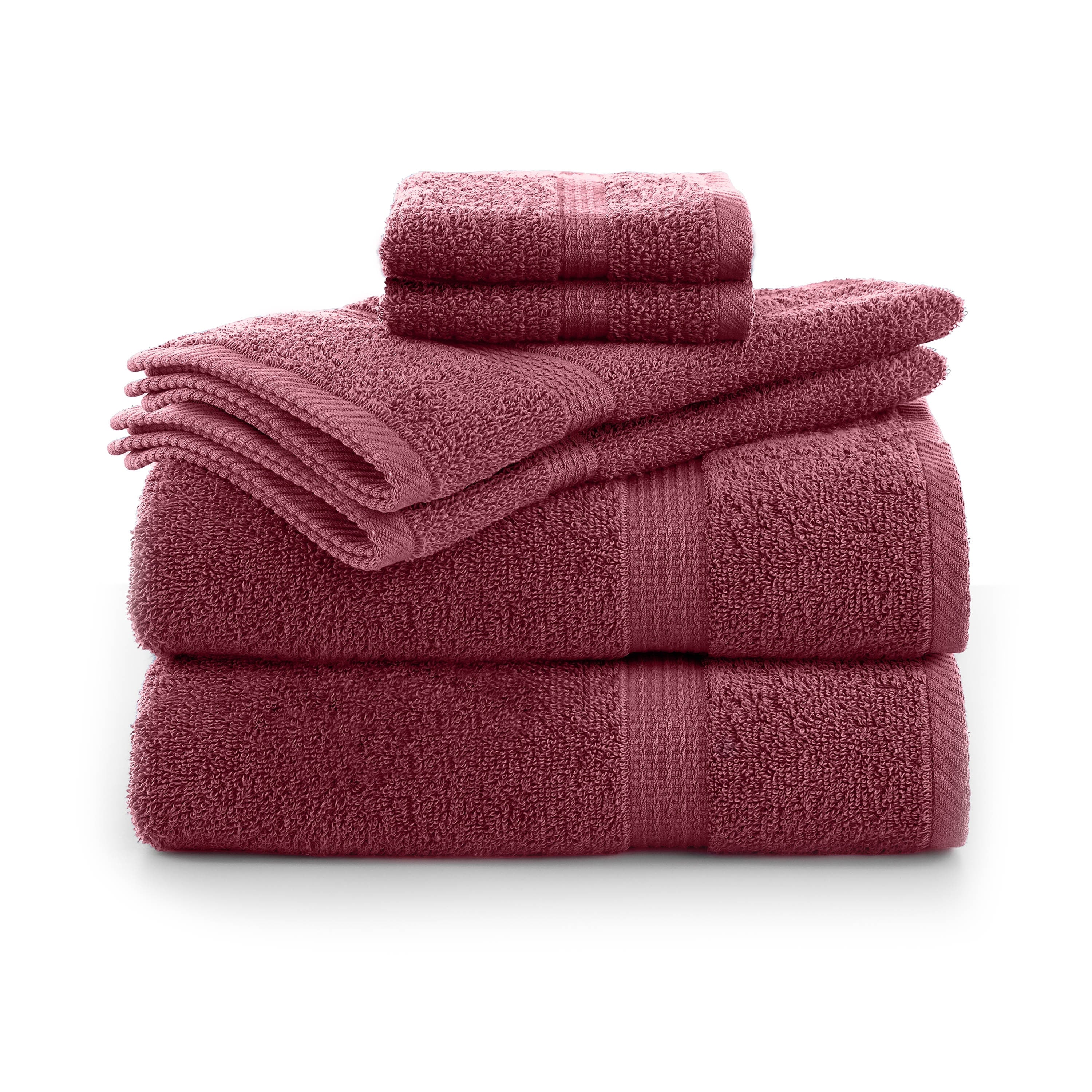- 6-Piece set includes: (2) bath towels, (2) hand towels, and (2) wash cloths