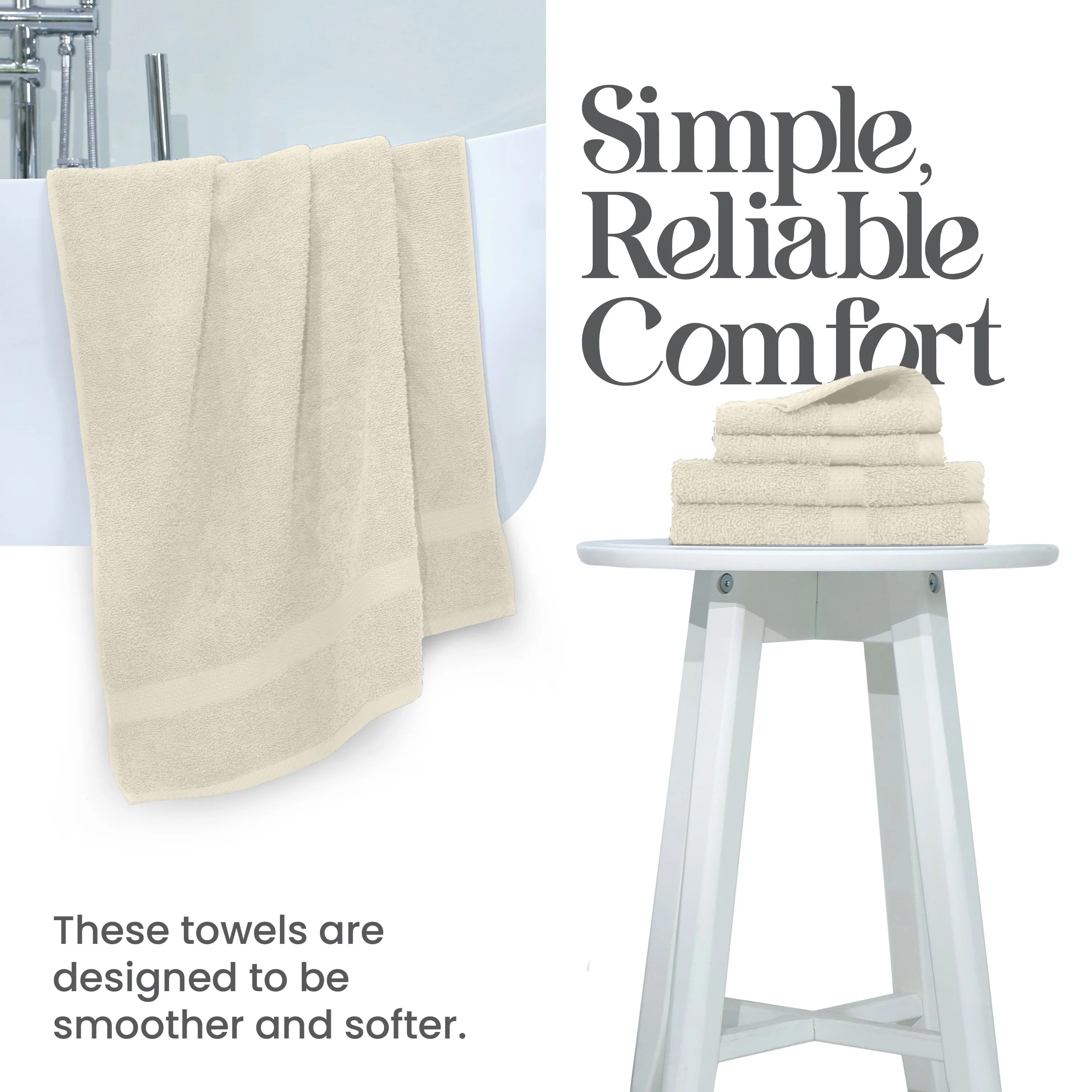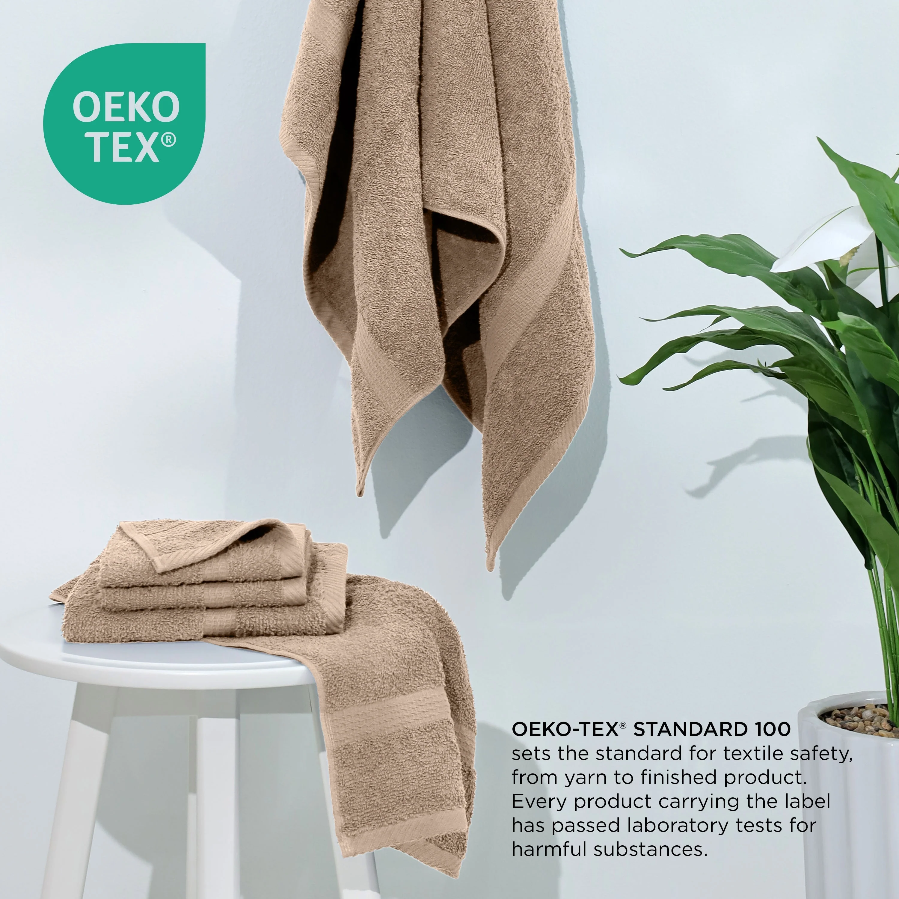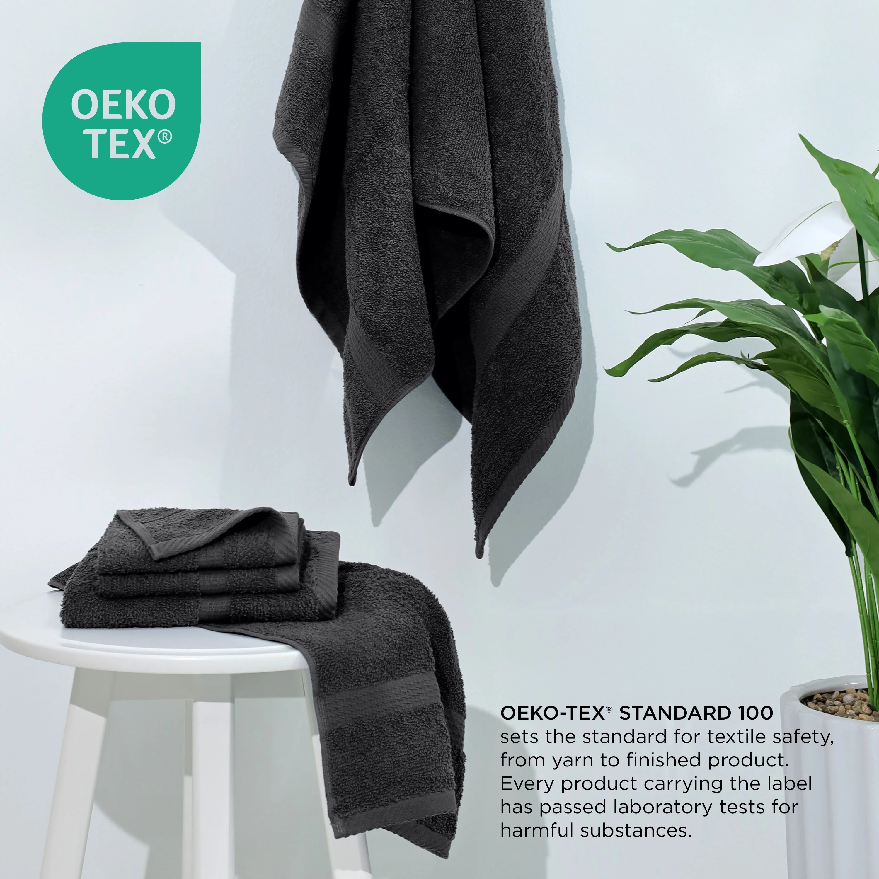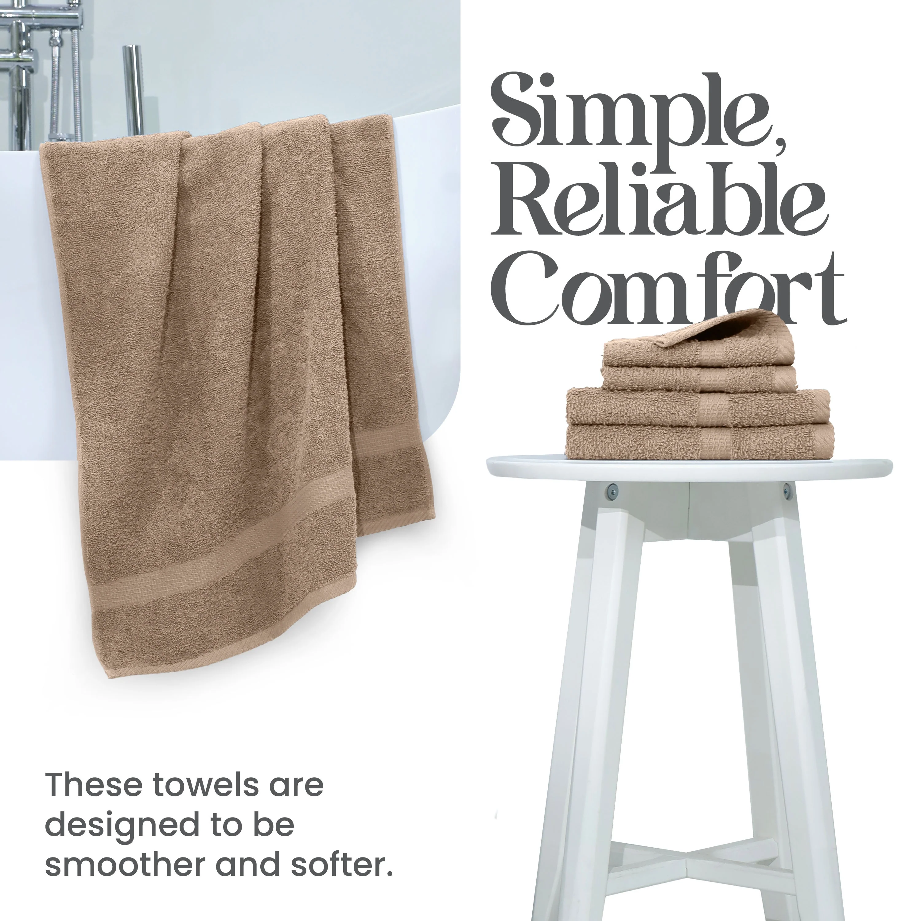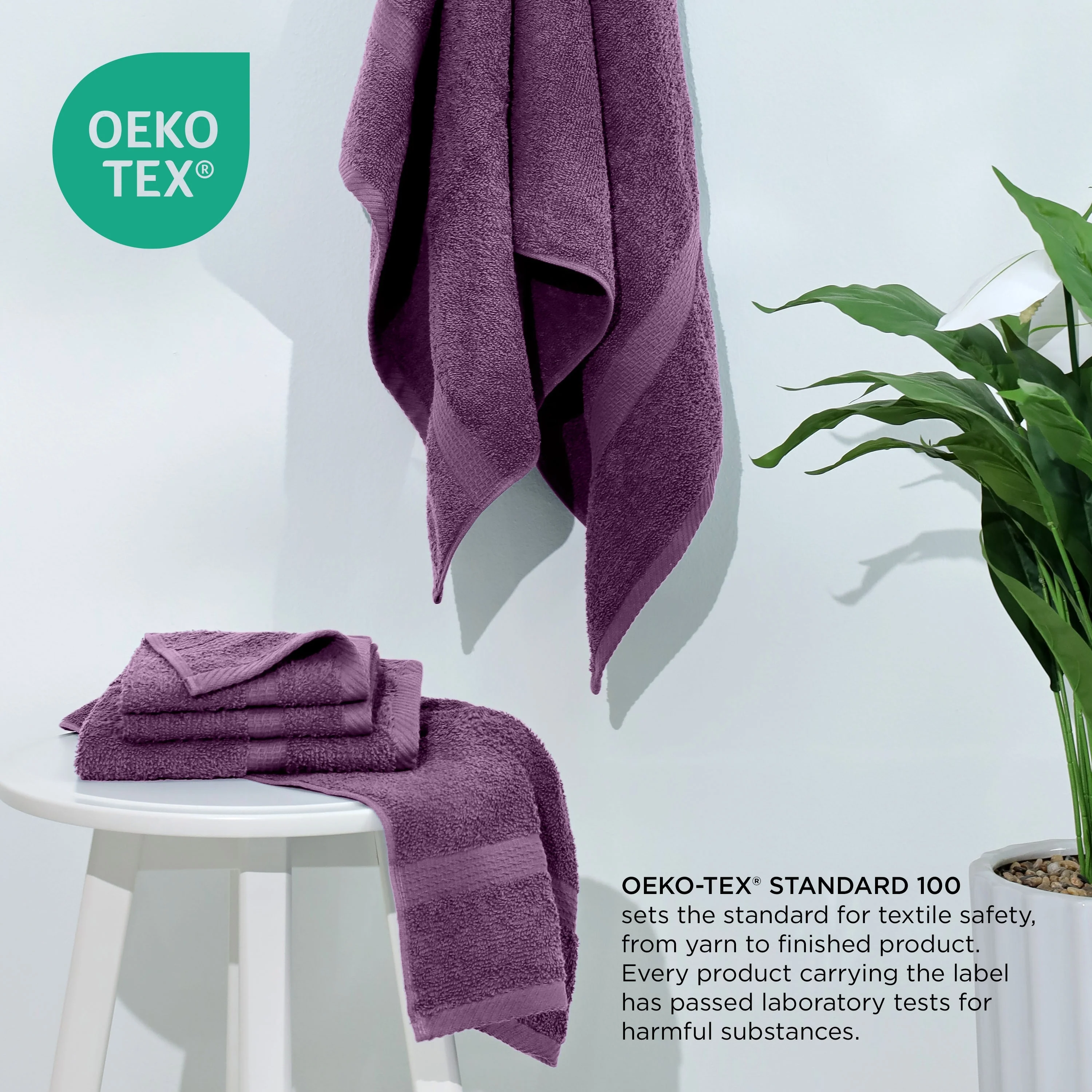 - 6-Piece set includes: (2) bath towels, (2) hand towels, and (2) wash cloths