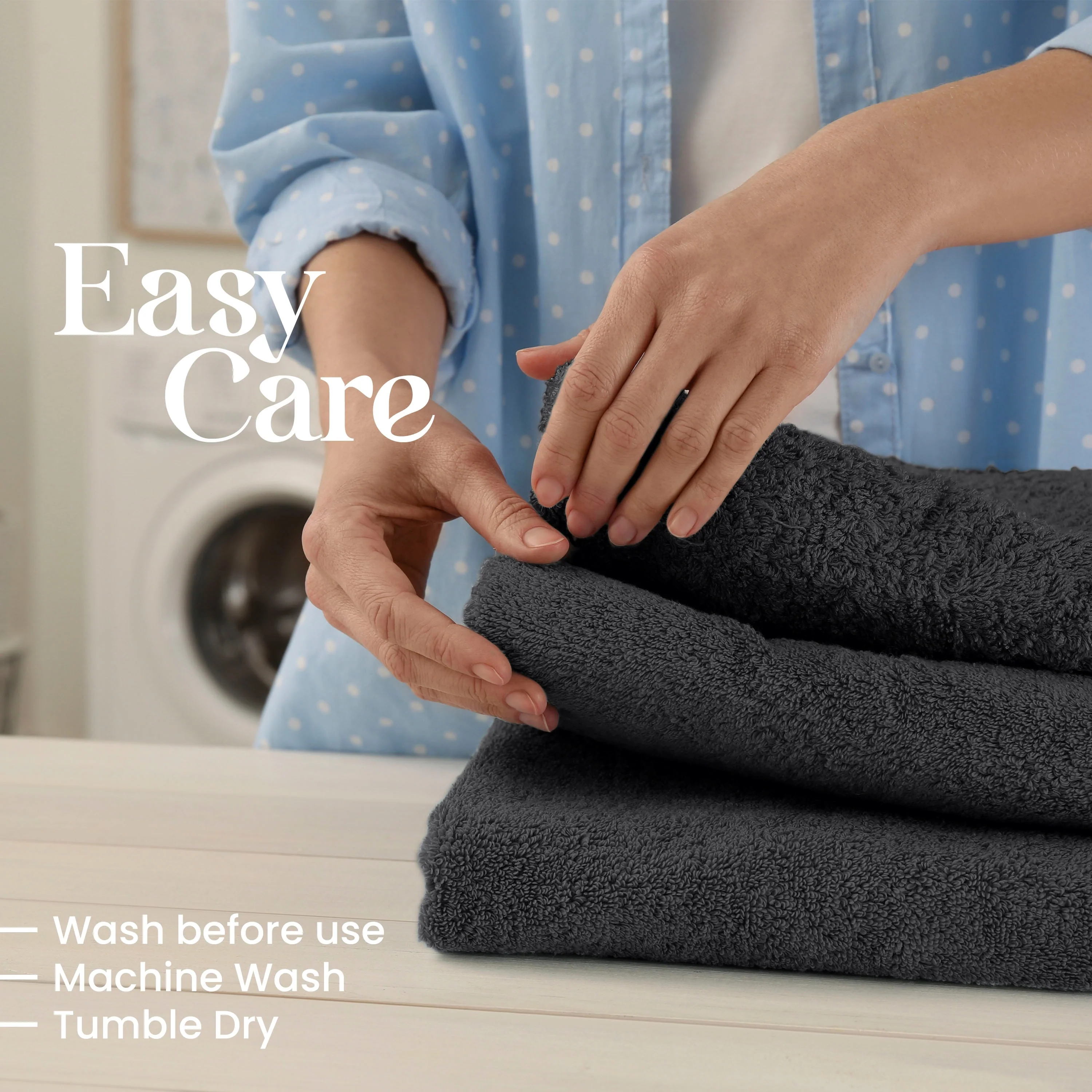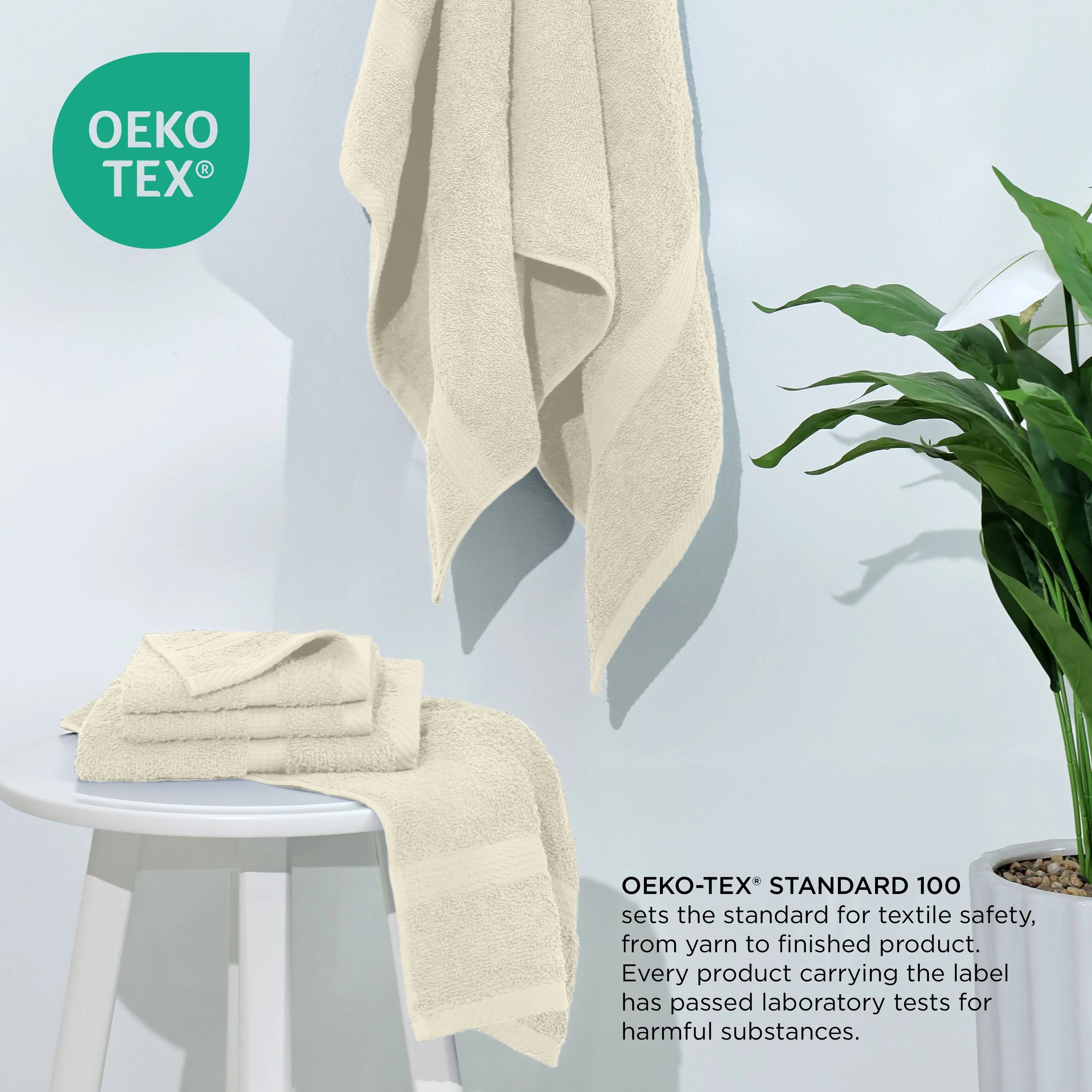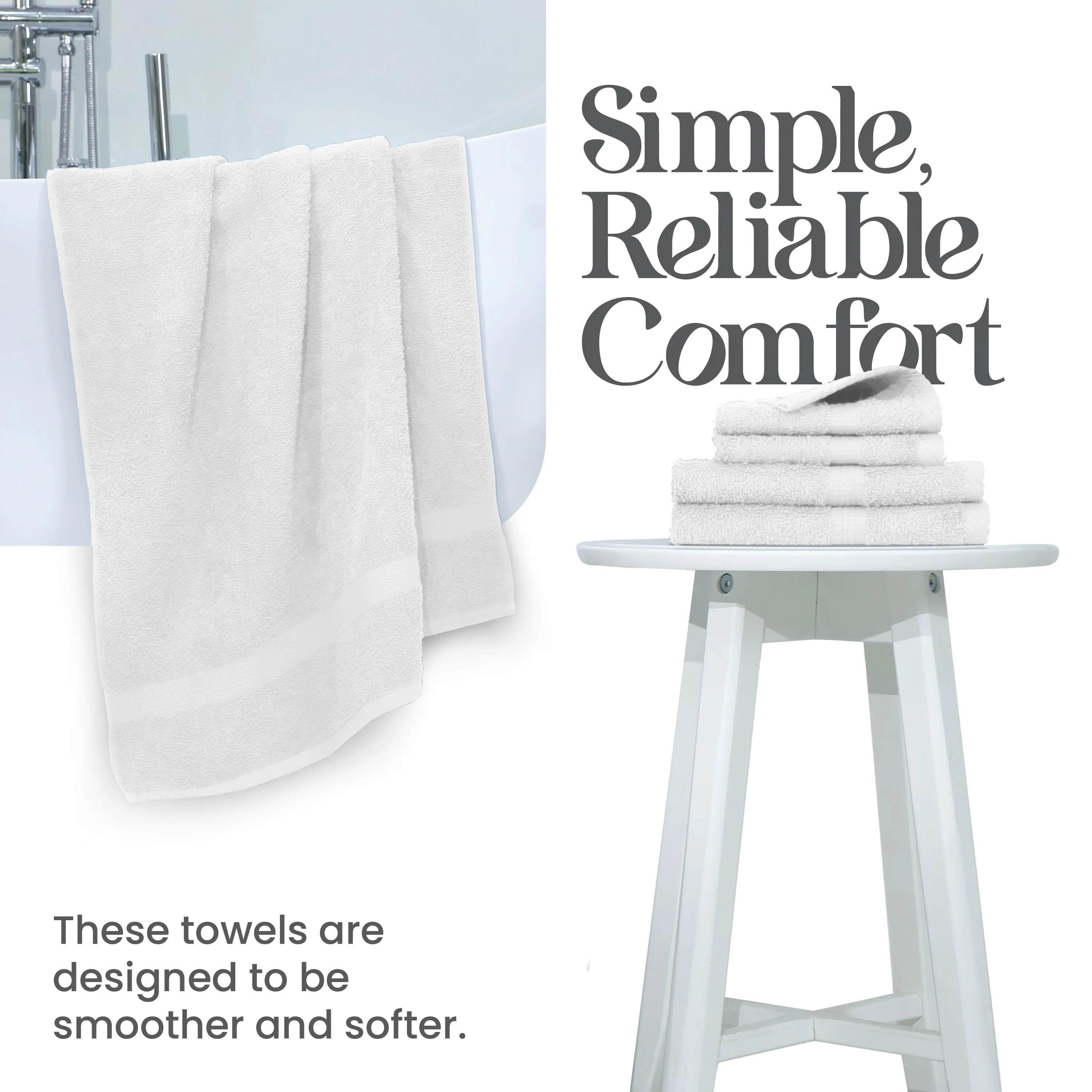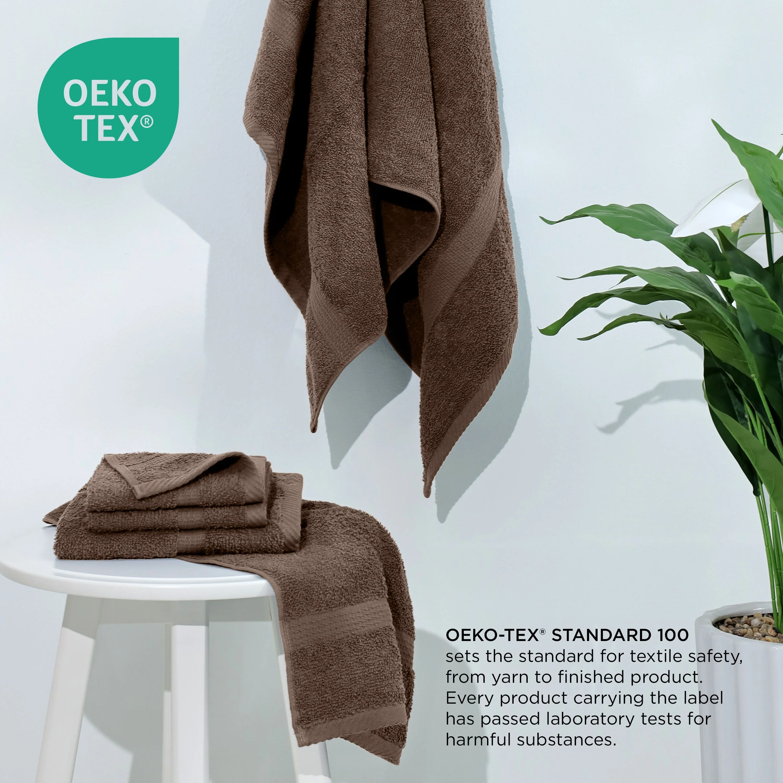 - 6-Piece set includes: (2) bath towels, (2) hand towels, and (2) wash cloths