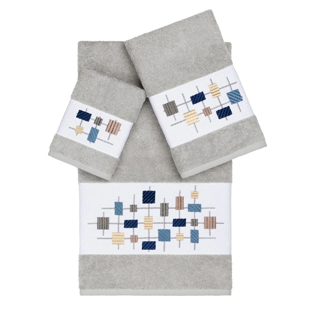Authentic Hotel and Spa Turkish Cotton Squares Embroidered Light Grey 3-piece Towel Set