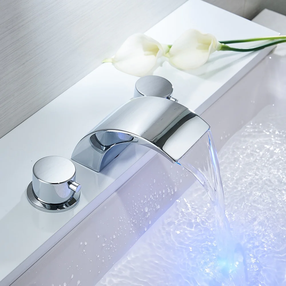 No matter how you look at it, this bathroom sink faucet is your best bet to impress yourself, your family and any guests that you have in your house! Brass faucet body ensures quality and longevity; 3-hole 8-16 inch installation,widespread faucet is no battery needed led light will show with water power led lights change according to water temperature automatically. Chrome finish is highly reflective for a mirror-like look that works with any decorating style. Easy to control: double lever design for effortless flow and temperature control.