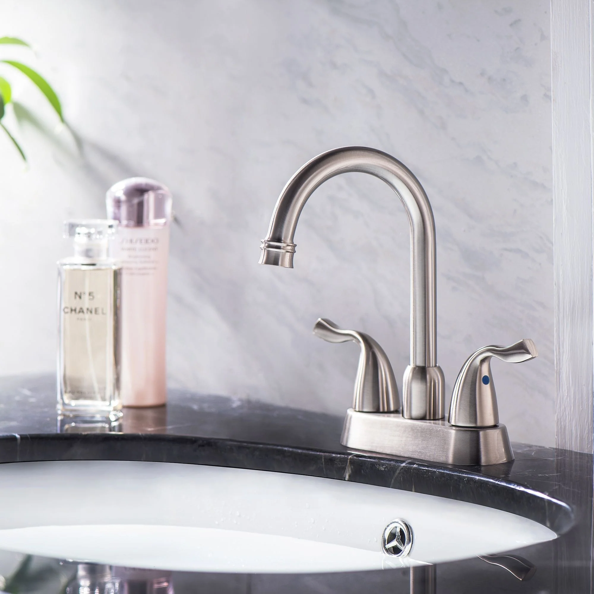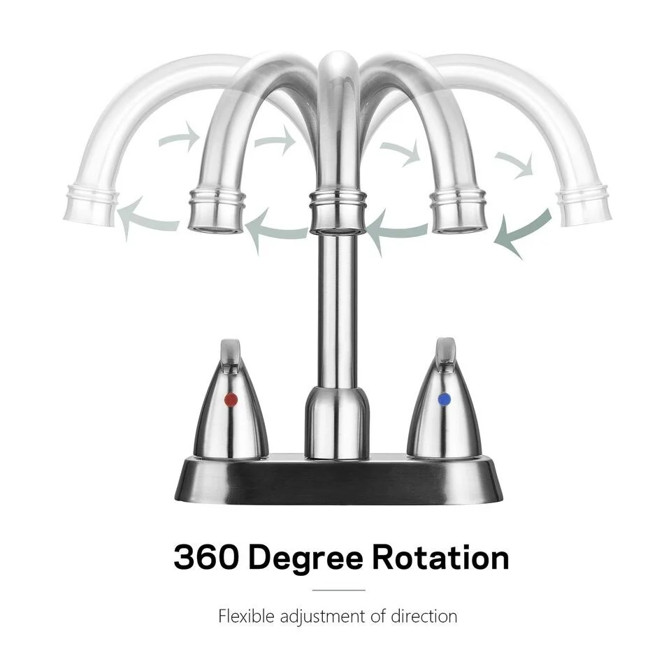 Upgrade your bathroom with the Kichae Bathroom Faucet - the perfect addition to any modern home! Crafted from durable solid brassmetal, this stunning commercial-style faucet is a must-have for any bathroom. With its modern and elegant metal lever handles, you can effortlessly control the flow and temperature of the water. Featuring an antique oil rubbed bronzed finish, this faucet resists corrosion and tarnishing through everyday use, ensuring it remains beautiful for years to come. The 360° swivel high arc spout makes your cleaning tasks much easier, while the ceramic disc valves ensure durable performance for life. The package includes a water supply hose, pop-up drain, deck, and faucet, making installation a breeze. Upgrade your bathroom sink with the Kichae Bathroom Faucet today and enjoy the perfect combination of style and functionality!