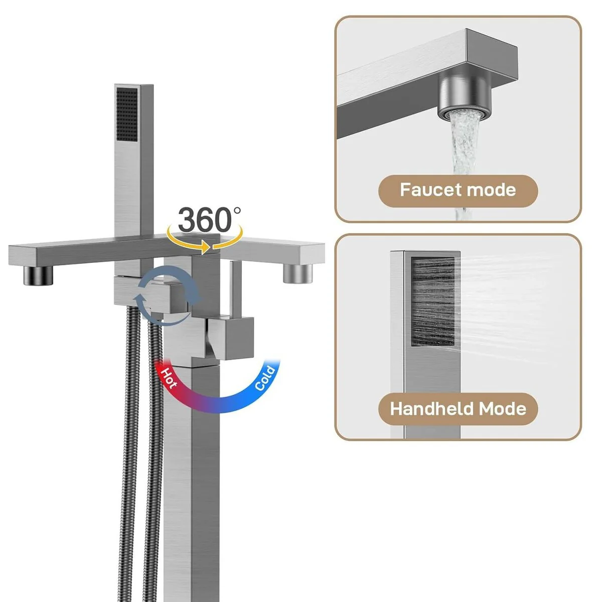 Elevate your bathroom with our premium quality freestanding bathtub faucet made of stainless steel. This modern and elegant faucet is designed for durability, stability, and versatility, offering a reliable and stylish addition to your bathroom decor.