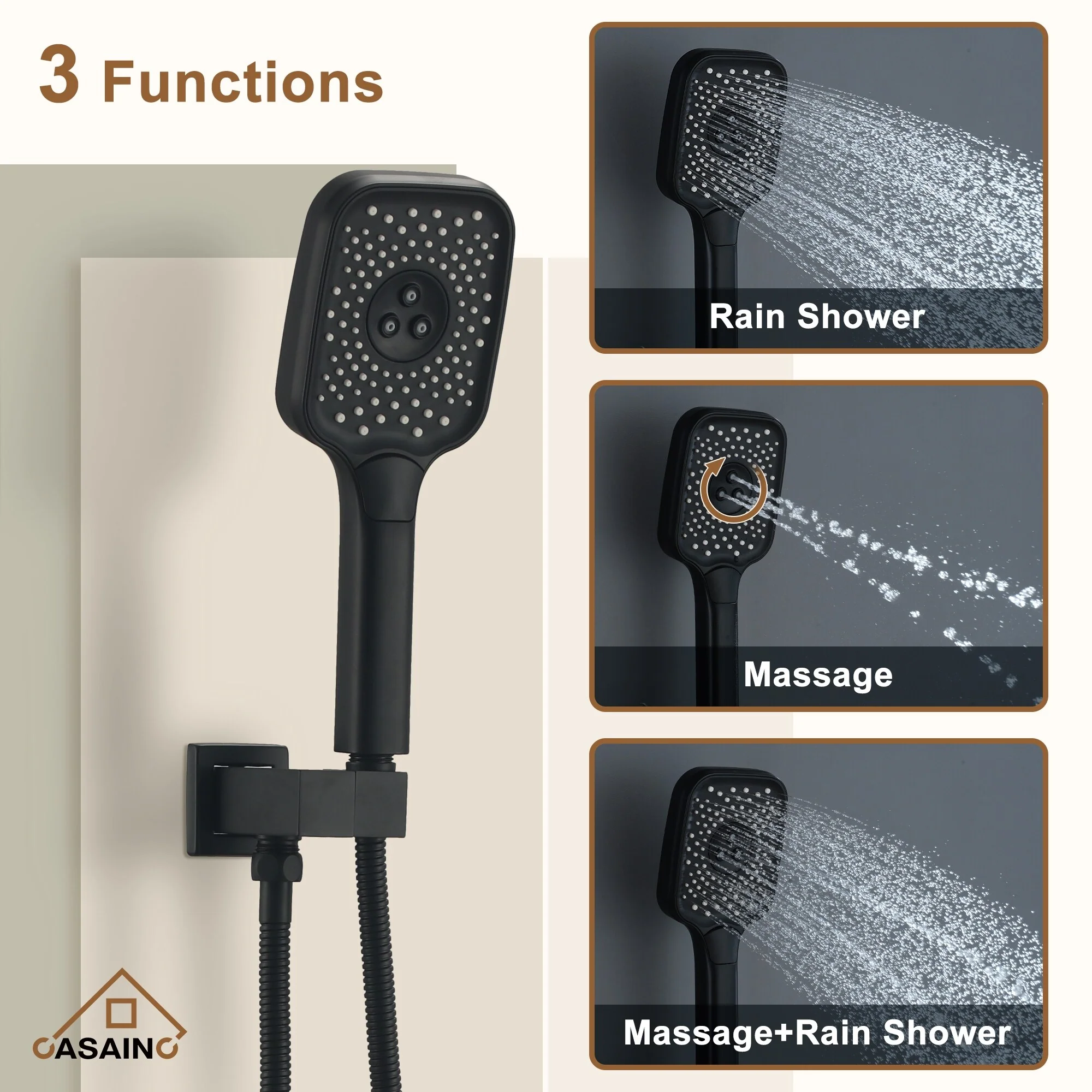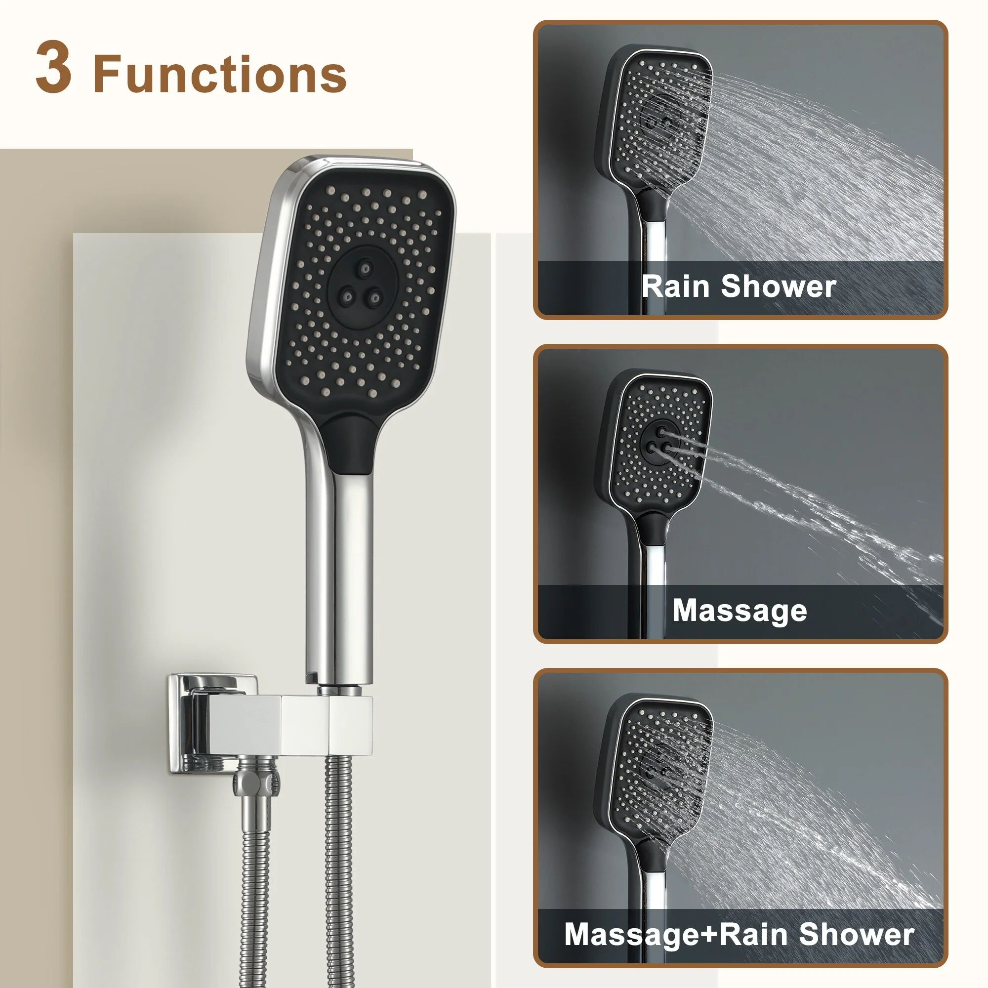 - Handheld shower can switch 3 functions through it's own button, including rain shower, massage, massage plus rain shower, 3 different shower mode to bring you a different experience