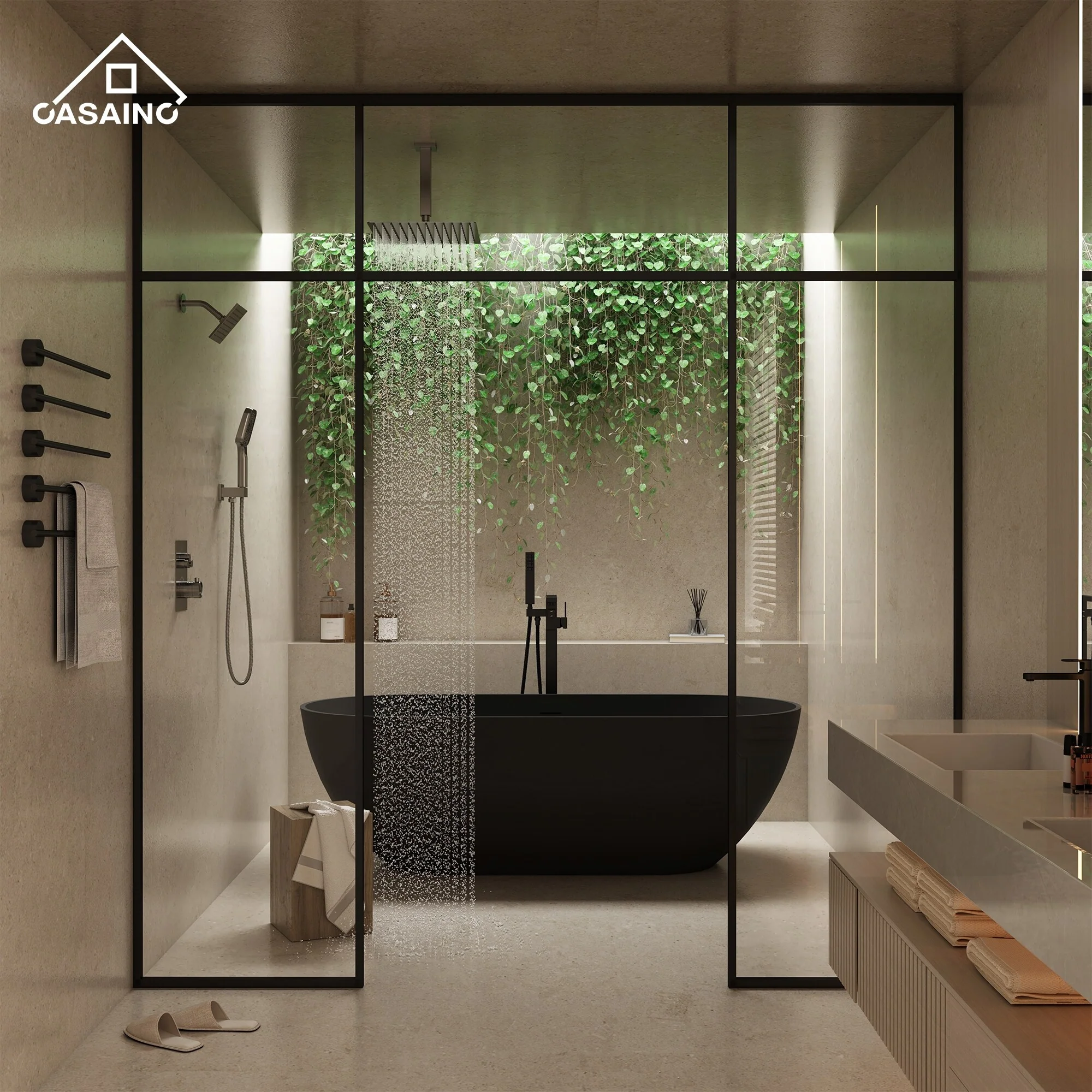 Equipped with rain shower, hand shower and 6 in. shower head, with novel button design, all buttons can be opened at the same time or separately, switch 3 functions through the button to give you a different shower experience. Simple and easy to clean, the anti-scald thermostatic valve controls the temperature and water flow very well, especially for children and the elderly. Provide you with a pleasant showering experience.