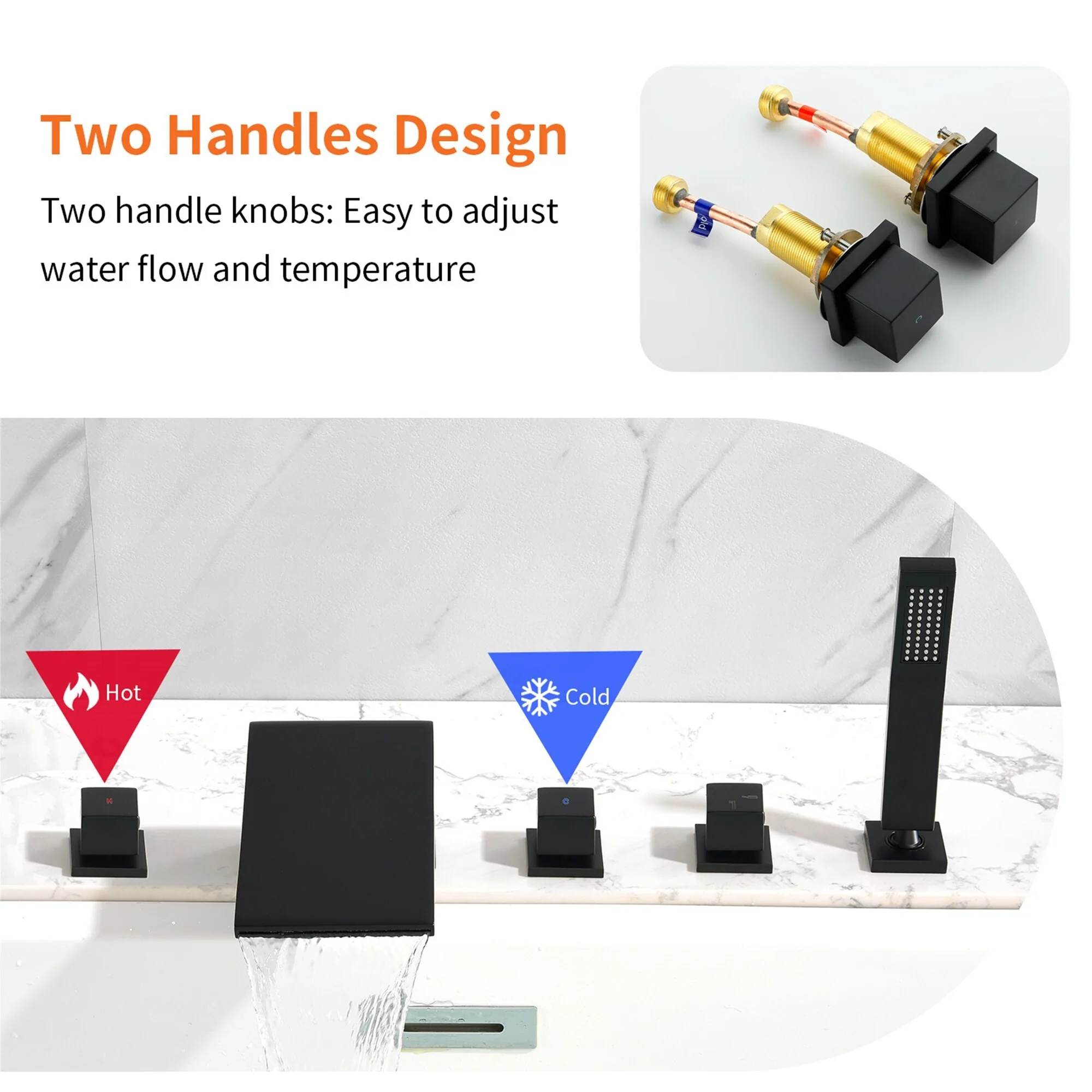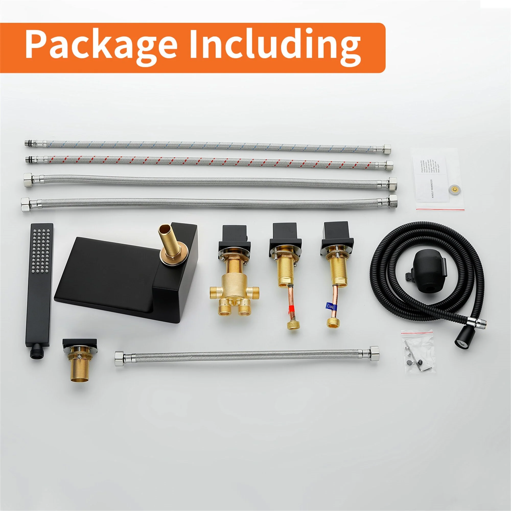 【Versatility bathtub faucet set】Tub shower faucet set has 2 modes for bathing: hand shower head, waterfall tub faucet deck mount, which could easily switch. 2-Function Ceramic Valve,a single handle allows you to quickly adjust the temperature and flow.