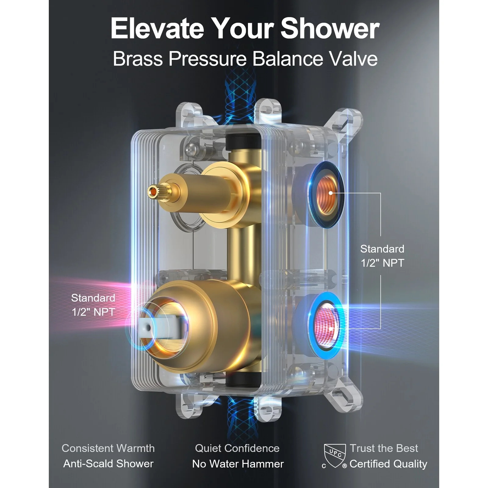 - No Water Hammer Noise and Anti-Scald Protection: Equipped with both check valves and a buffer device, as well as a pressure-balanced valve.